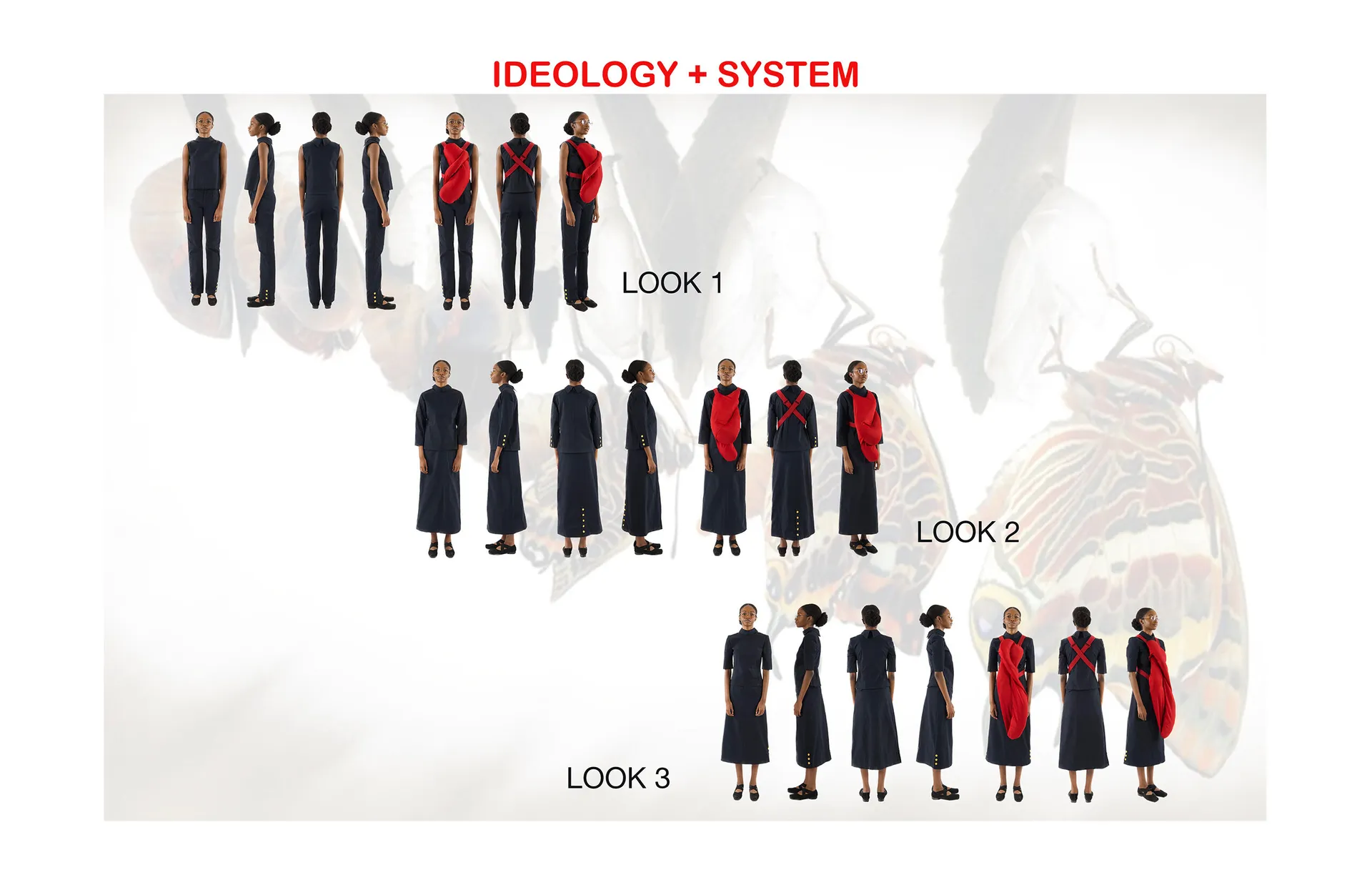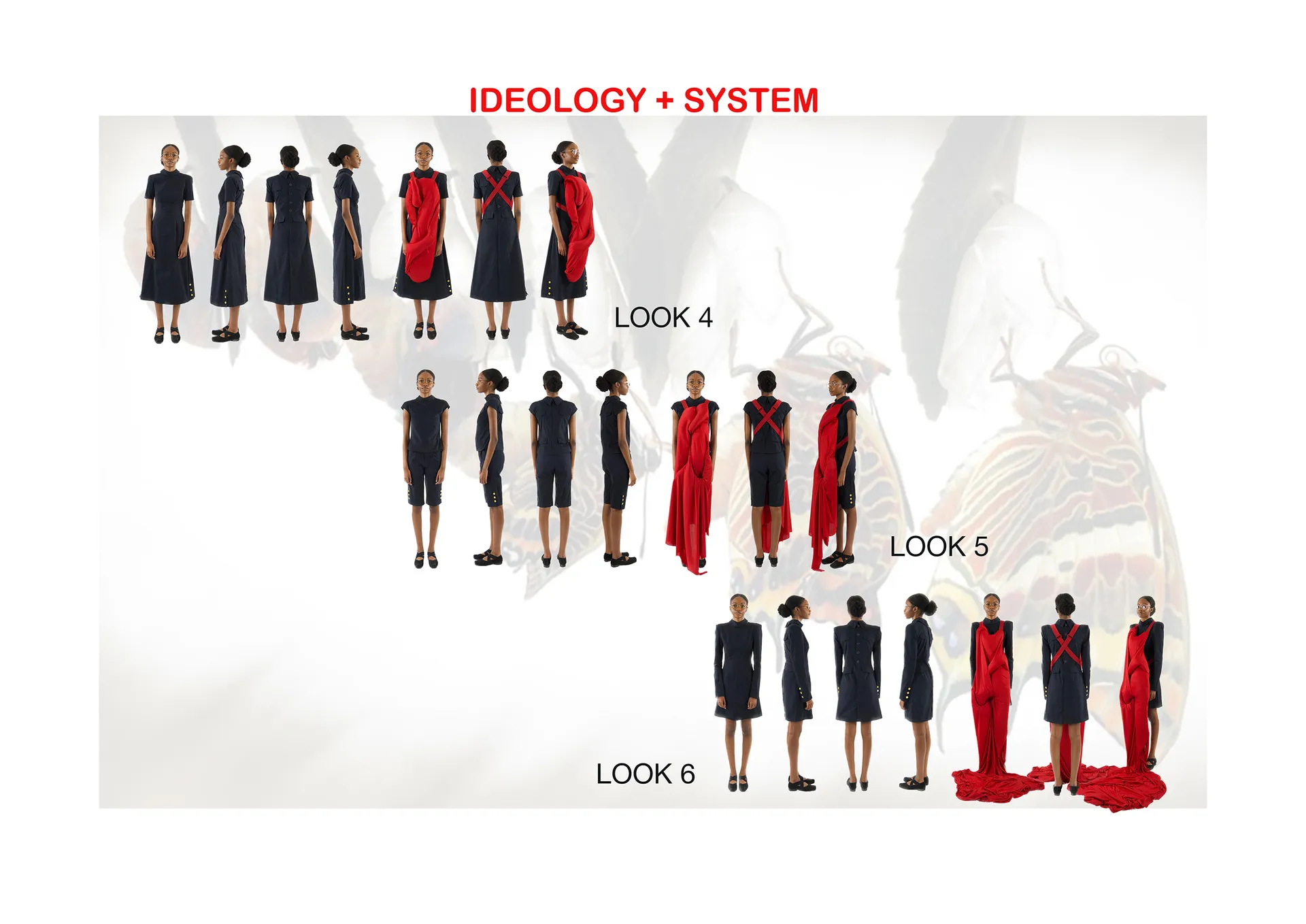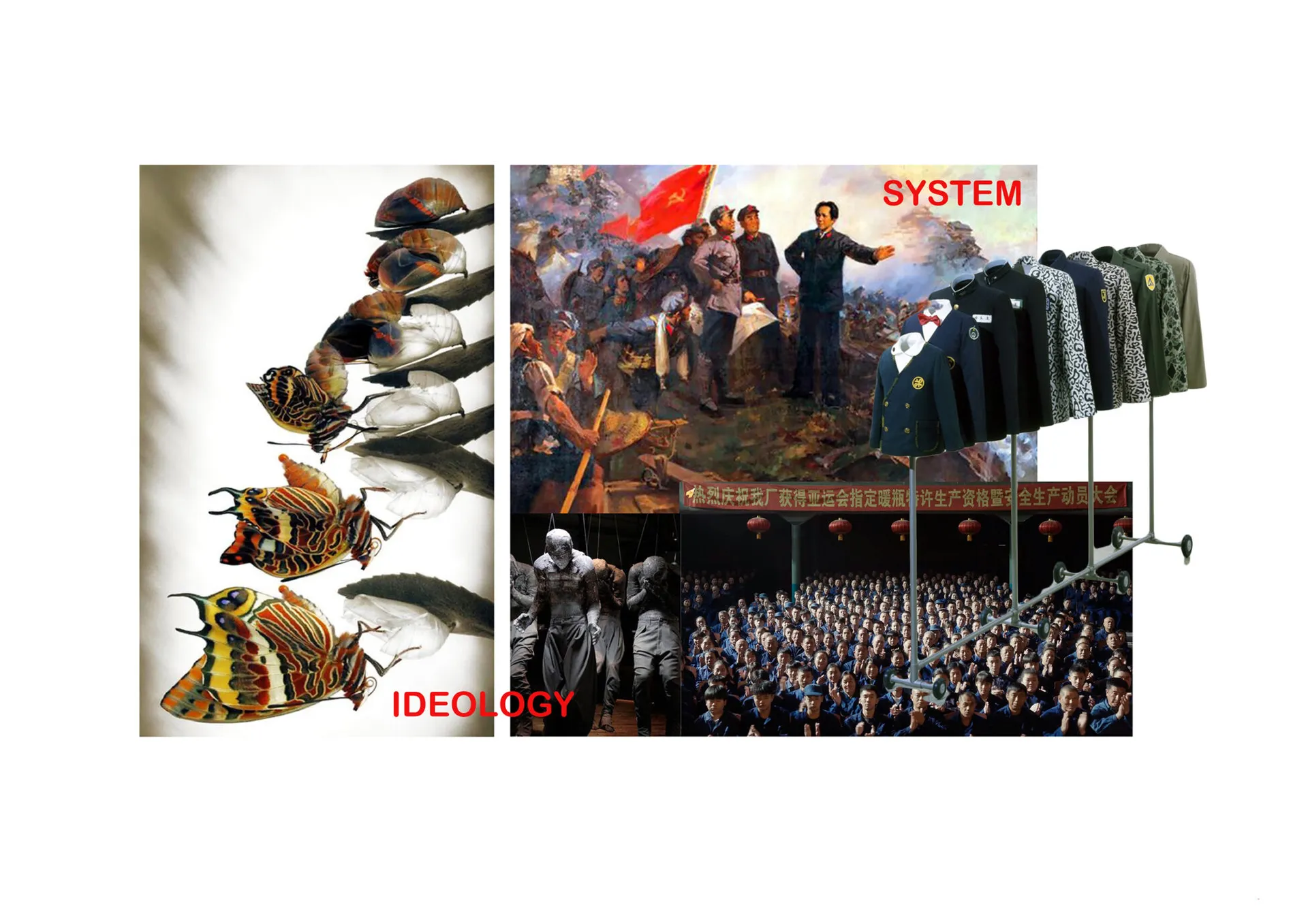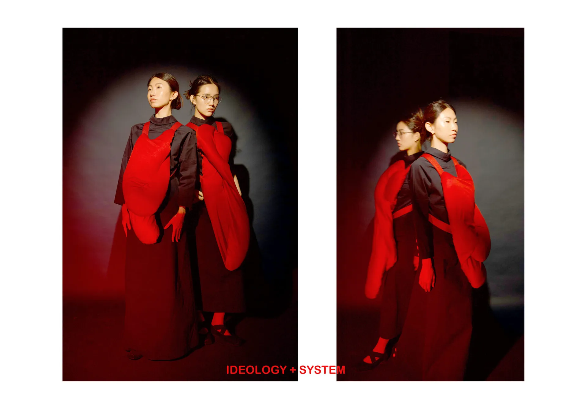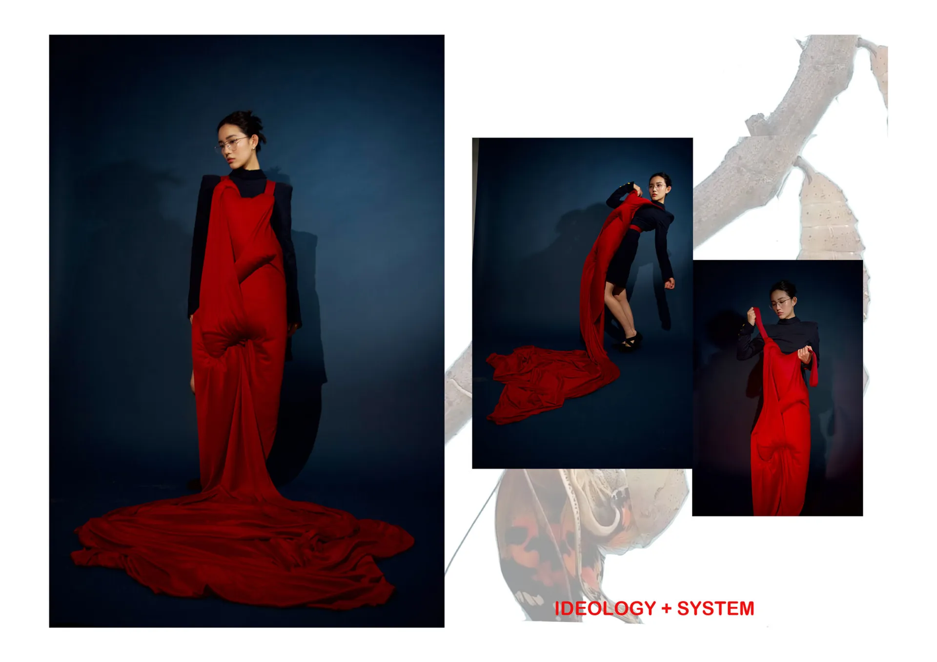 The inspiration for this collection comes from my thought while living in the epidemic environment in China. During my two-year break from school, I worked in public places. According to China epidemic law, as long as the epidemic occurs in the area where you work, nucleic acid testing must be done three times a week. In the beginning, we all completed the tasks according to the requirements. After half a year, my colleagues and I will use each other’s COVID-19 QR codes to help each other do nucleic acid tests. This made me think that everyone has their ideas. However we live in a system framework, and we must obey the system. These ego thoughts that have been suppressed all the time will trigger when cornered. Just like a butterfly shedding its shell, the pupa will become smaller due to water evaporation over time, and the butterfly will slowly emerge from the pupa to spread its wings and fly away.