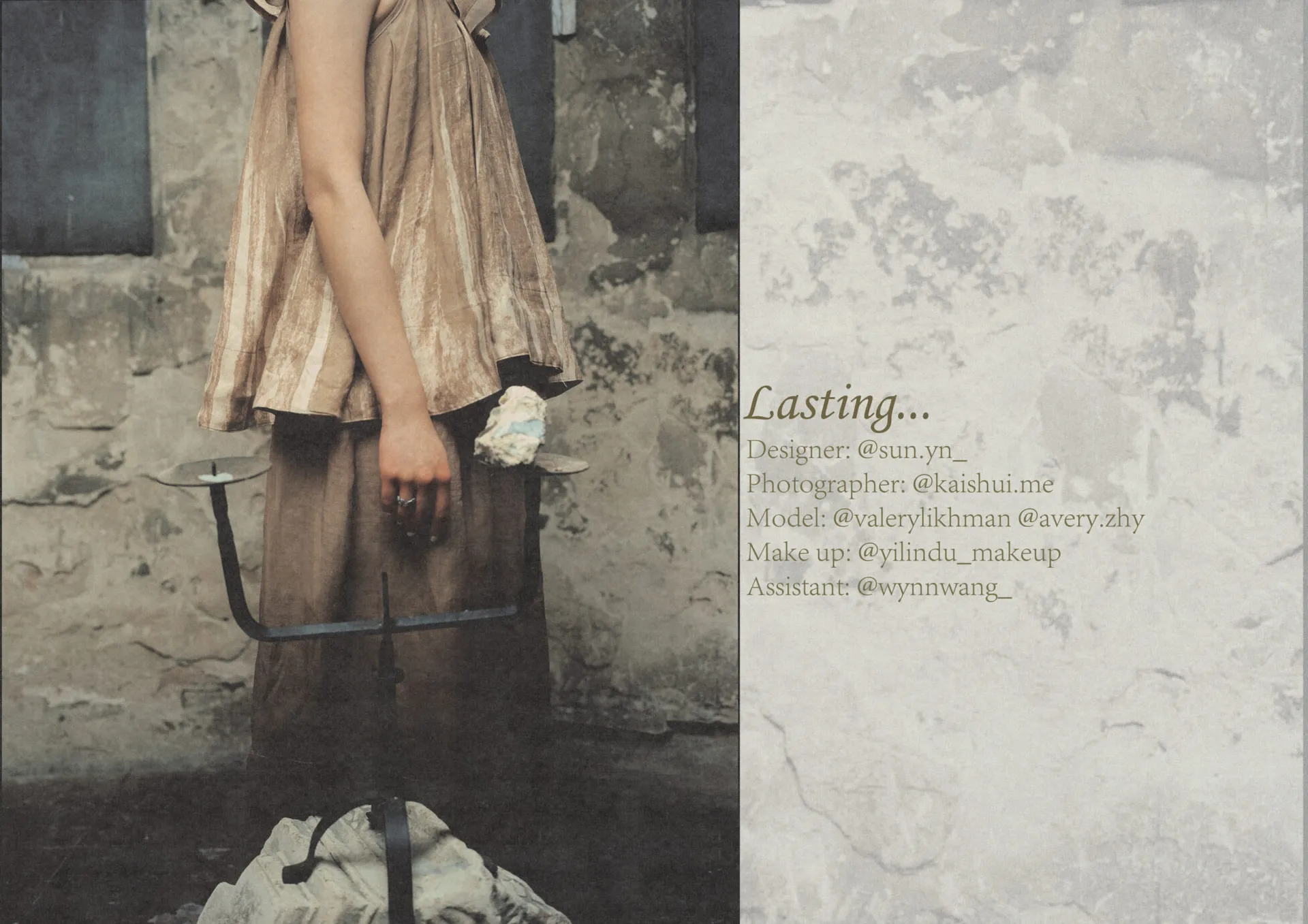The linen of the fabric conveys the breath of nature. The mottled prints carry vague memories. It likes a letter to a loved one, with poetic and convey subtle feelings of longing for the old days……