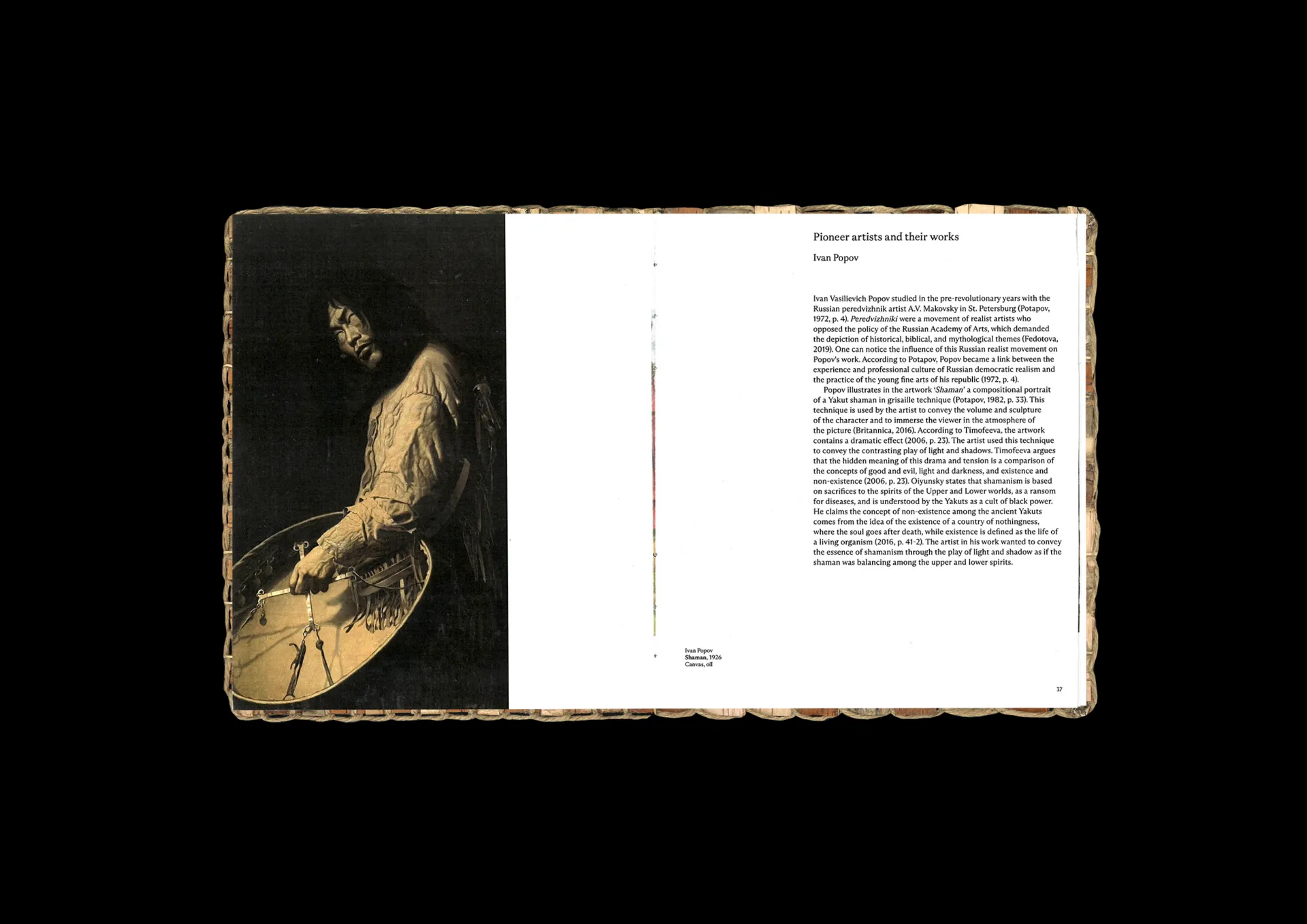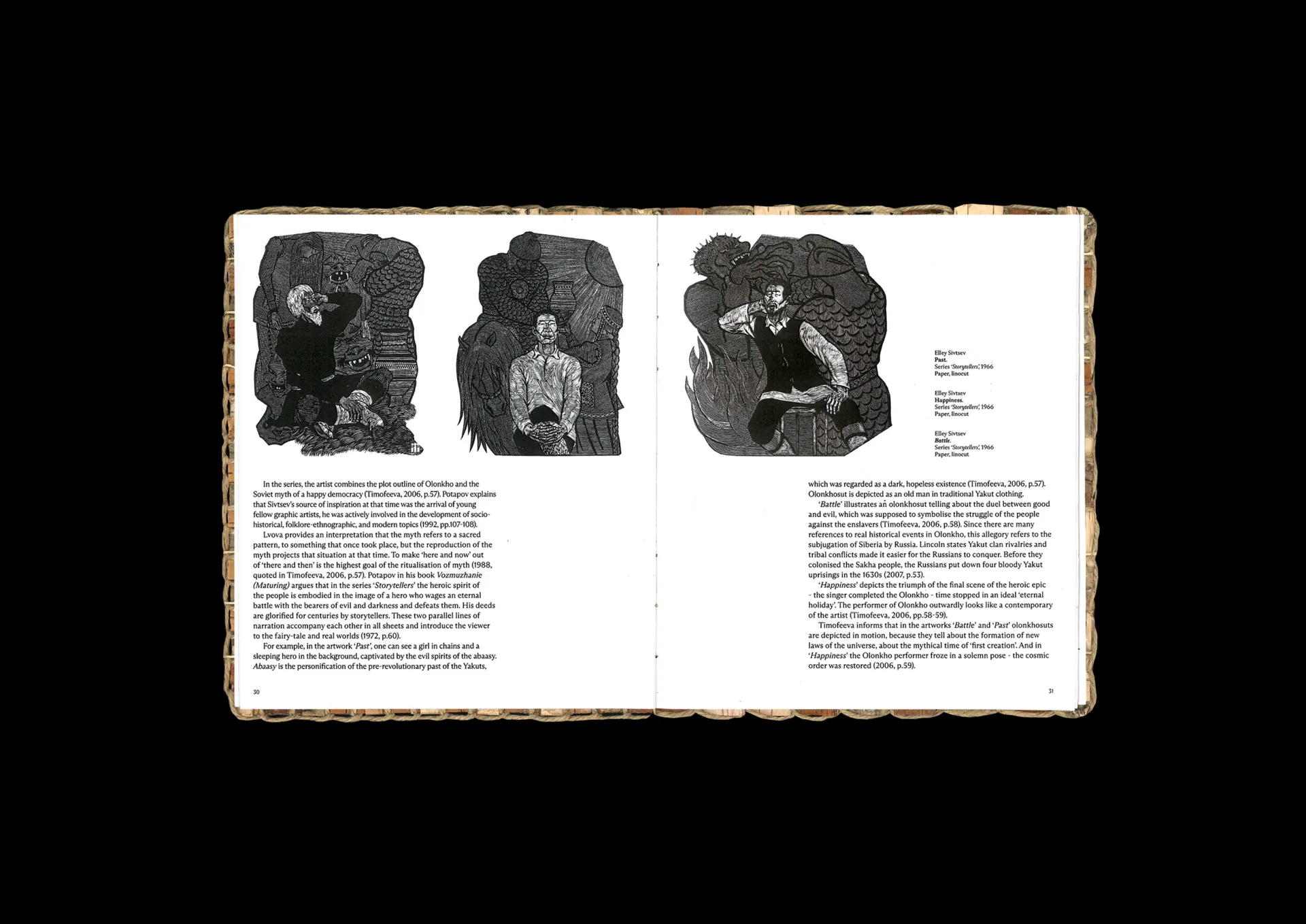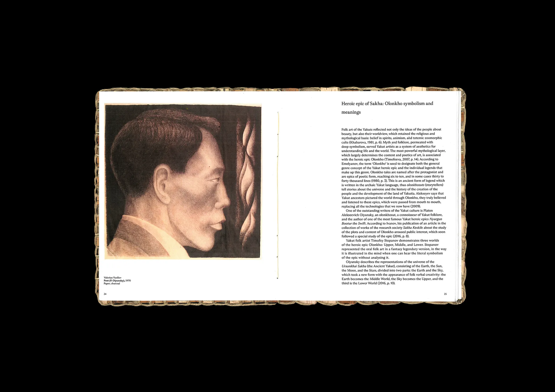 Despite the Russian conquest, Sakha’s national heritage was preserved through their deep appreciation for nature, the transfer of knowledge and skills across generations, and the preservation of history and traditions through oral folk art like Olonkho. The publication showcases Olonkho’s role in forming a unique national visual language and demonstrates the resilience of Yakut culture. This research contributes to a deeper understanding of the connection between colonisation and cultural preservation, providing valuable insights into how indigenous communities negotiate and navigate the consequences of colonial influence.