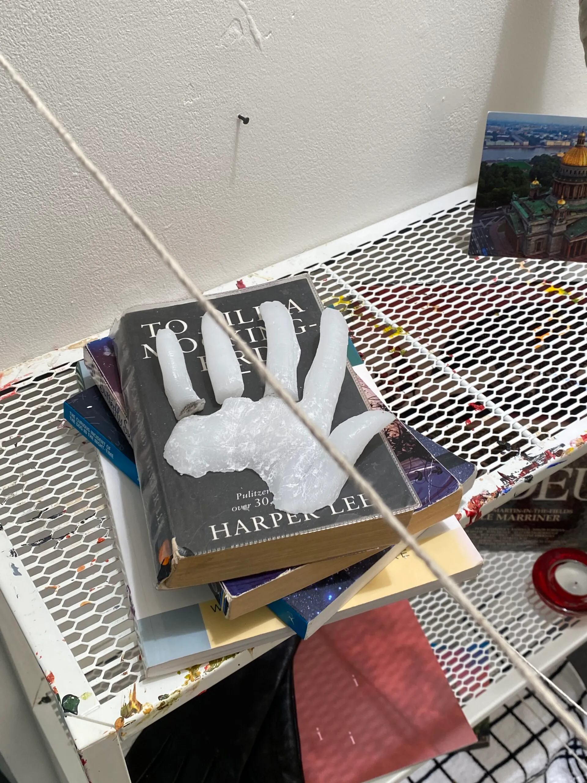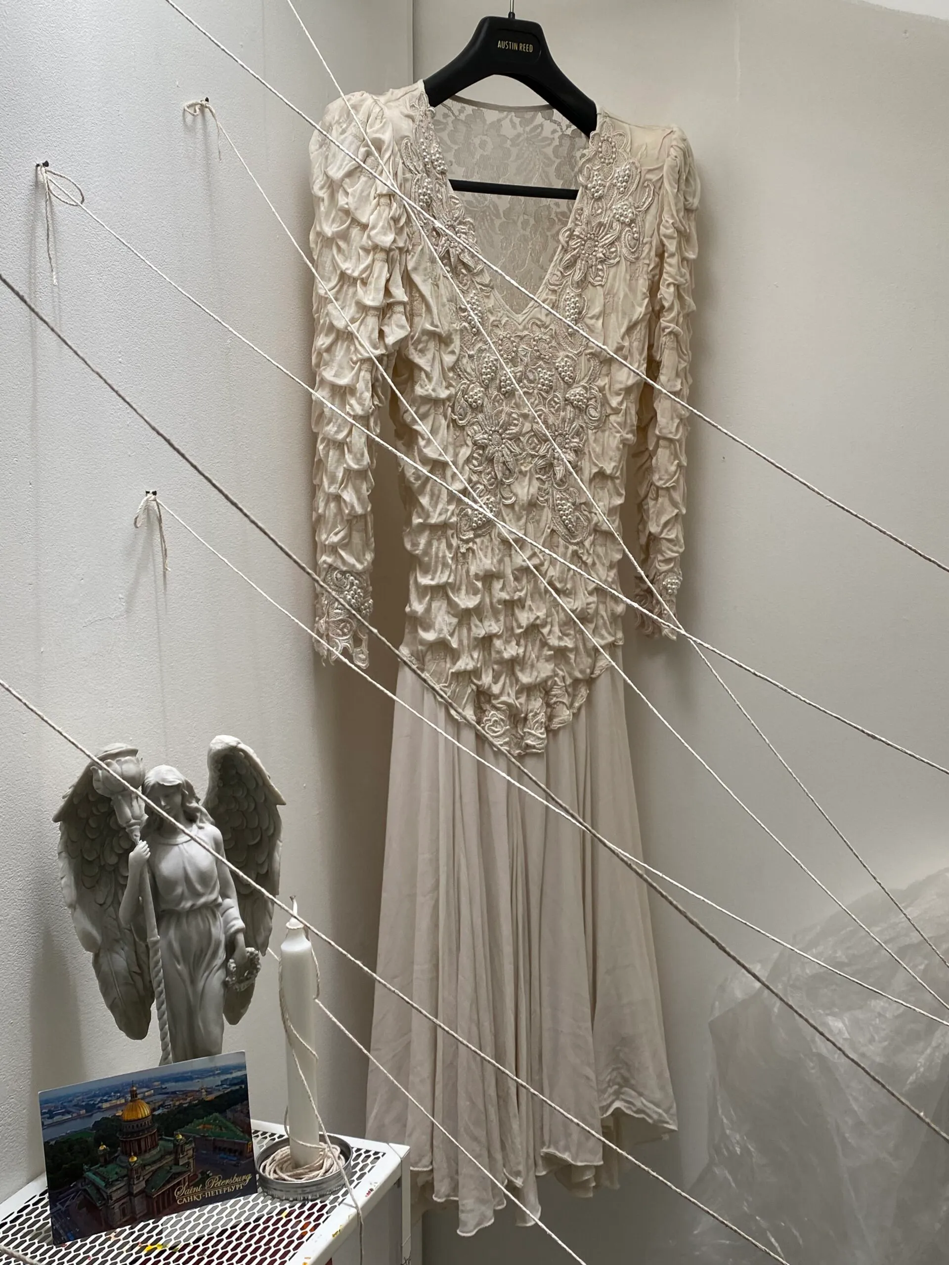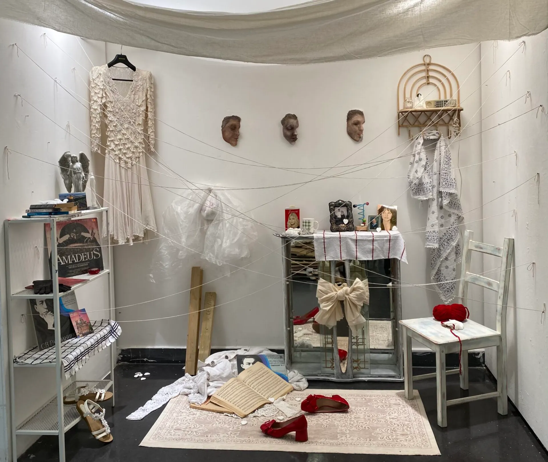 Alena German-Shakhly (b. 2002, St. Petersburg) is a London artist who focuses on familial relationships when making her work. She produces installations that reflect memories of her home and family, with close ties to textiles and pre-loved clothing. Whilst installation is her main focus at the moment, she also specialises in sculpture, drawing and photography, which are often used as elements in her current practice.