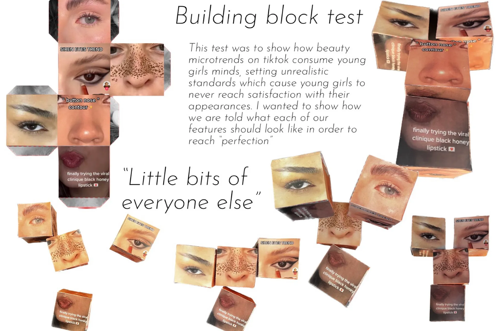 As much as I enjoyed researching this side of my project due to feeling passionate about the environment, I struggled with feeling like I had to solve a problem, so instead I moved on to looking at titktok aesthetics and ‘cores’ and why our generation has developed the need to hyper-compartmentalise ourselves and latch on to these personas which only exist online. While I do believe that in recent years our generation has such a great variety of styles to experiment with, I also believe that these aesthetics can be so hyper-specific that no one really relates to them, so latching on to these personas becomes harmful as it erases true individual styles and personalities. I also found the idea of exposing what we show online versus what is behind the scenes most fascinating which is what eventually led to my final film idea, with the white screen reflecting what is shown on our phones/tiktok and then the end reveal being my actual bedroom and genuine self showing just how easy it is to deceive people behind a screen.