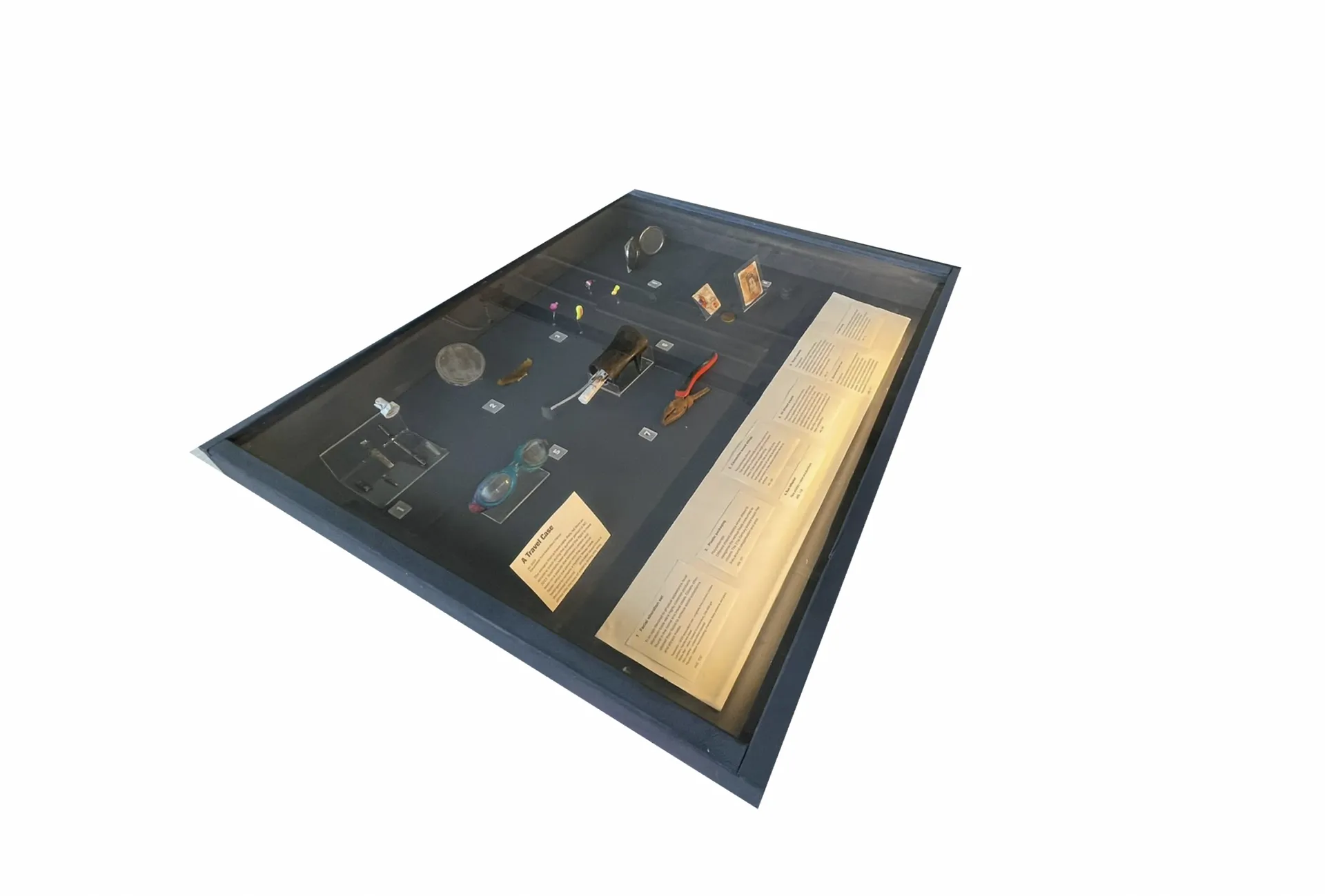 I have designed a museum cabinet set in the year 3023, which encases artefacts from 2023. The objects were excavated by future archaeologists from the French mountain, Mont Blanc, where the plastics were preserved in a cool and dark climate. Many of our belongings from today would have degraded in a 1000 years’ time. Therefore, these found artefacts provide the archaeologists with a rare insight into how the citizens of 2023 belonged to the environment around them. Yet many of the objects are misinterpreted due to the archaeologist’s own preconceptions of the past.
