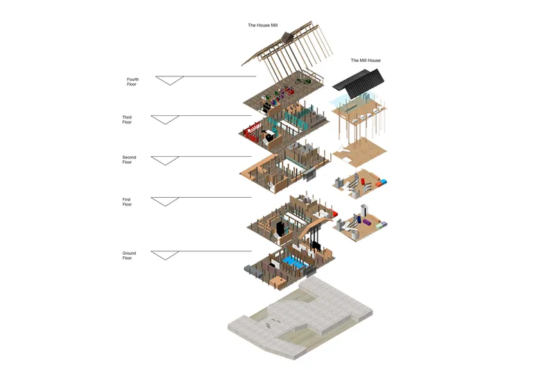 The mill is an old redudant mill situated in Bromley-By-Bow. It was orginally used to make gin and wheat for the town. It has been disused for years. The area is surrounded by the local community, a lot of schools, restaurants. Due to the local community and schools around the area, it can provide entertainment and learning opportunities for the students. The proposal seeks to make people aware of how clothes are made and change where they go. This can be available to people of all ages, this will allow people to gather the knowledge required to change peoples’ minds.