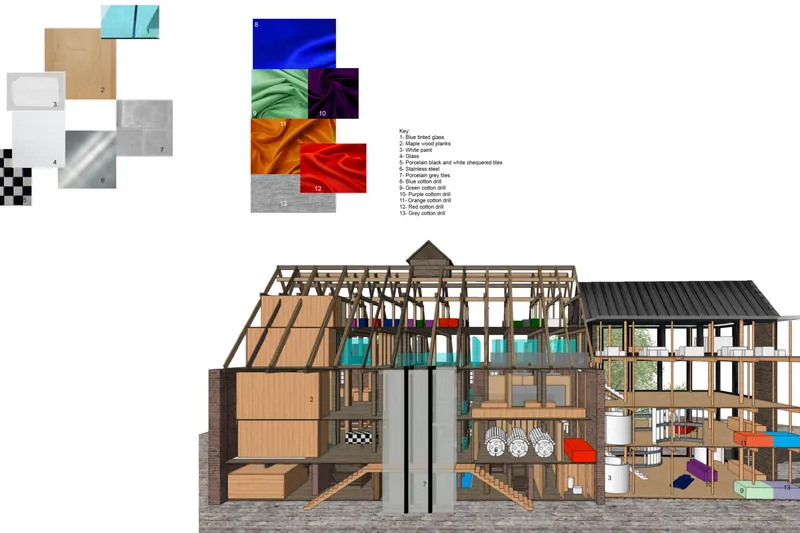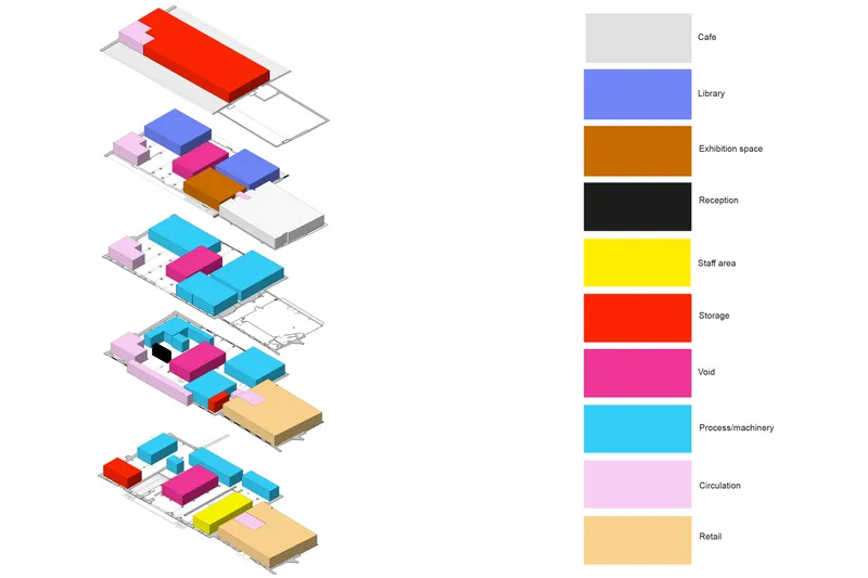 This Future of the Fashion will make people aware of the process behind upcycling and they can create their own clothes. Also, using clothes second hand which can be unpicked and put back together in another way. This has become a multi-functional building with an intellectual programme to educate people, bringing more visitors to the town. This can set a model for how future textiles factories can be created.