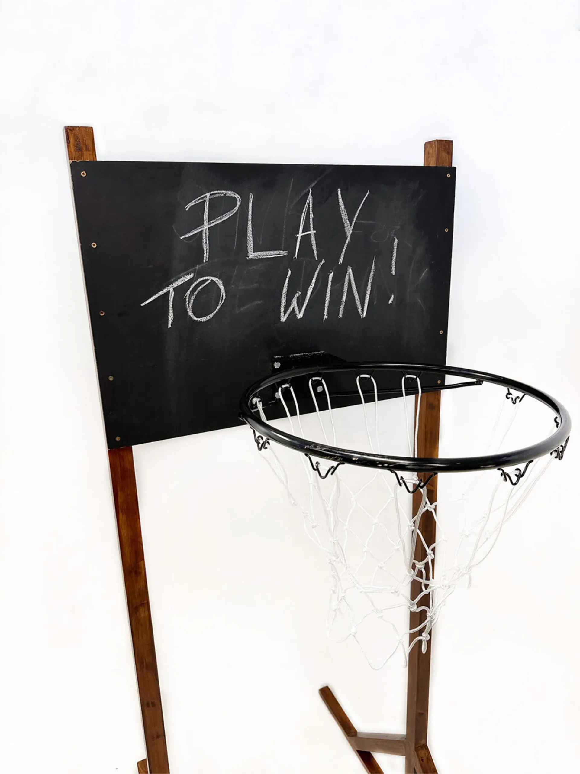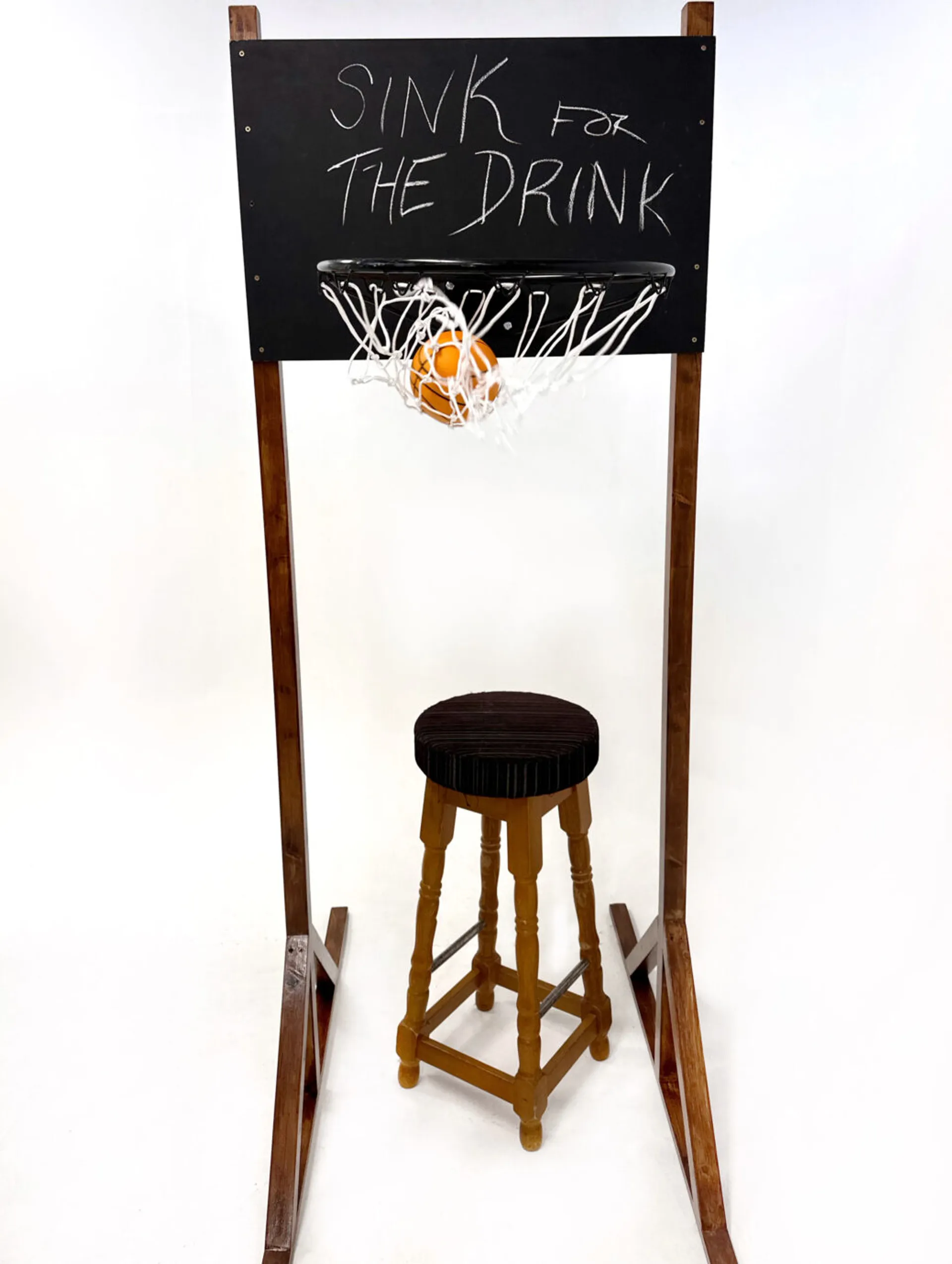 A basketball hoop designed to be placed in front of a bar with a barstool beneath. It encourages people waiting in a queue to be served to throw a ball into the hoop to win the prime place at the bar, and the honour of skipping the queue.