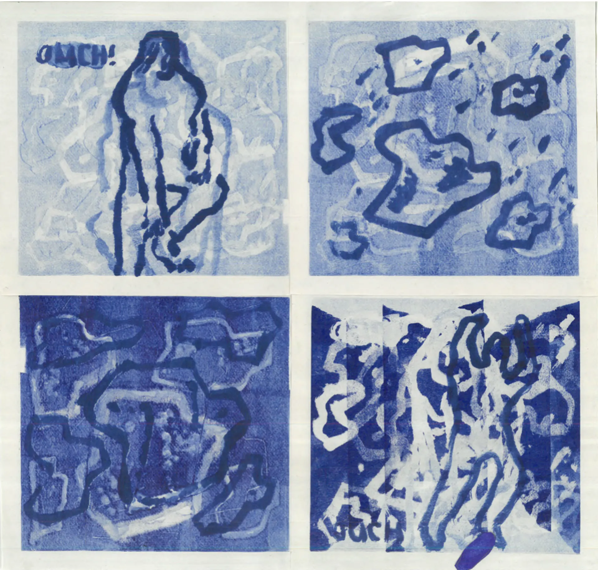I like to work with strong emotions, and I would like to have an emotional connection with the audience. Most of my work is hand-drawn and traditionally printed, such as monotypes.
