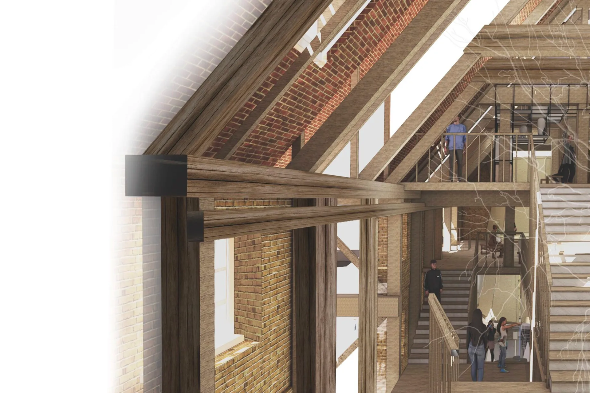 The existing building The House Mill is the eighteenth century tidal mill, it has been vacant for a long time. The timber structure suffered damage from the effects of the tidal river. Around the building are several schools and studios related to performances. I focus on how the local industries’ problems can be improved through the reuse of The House Mill to form a circular economy.