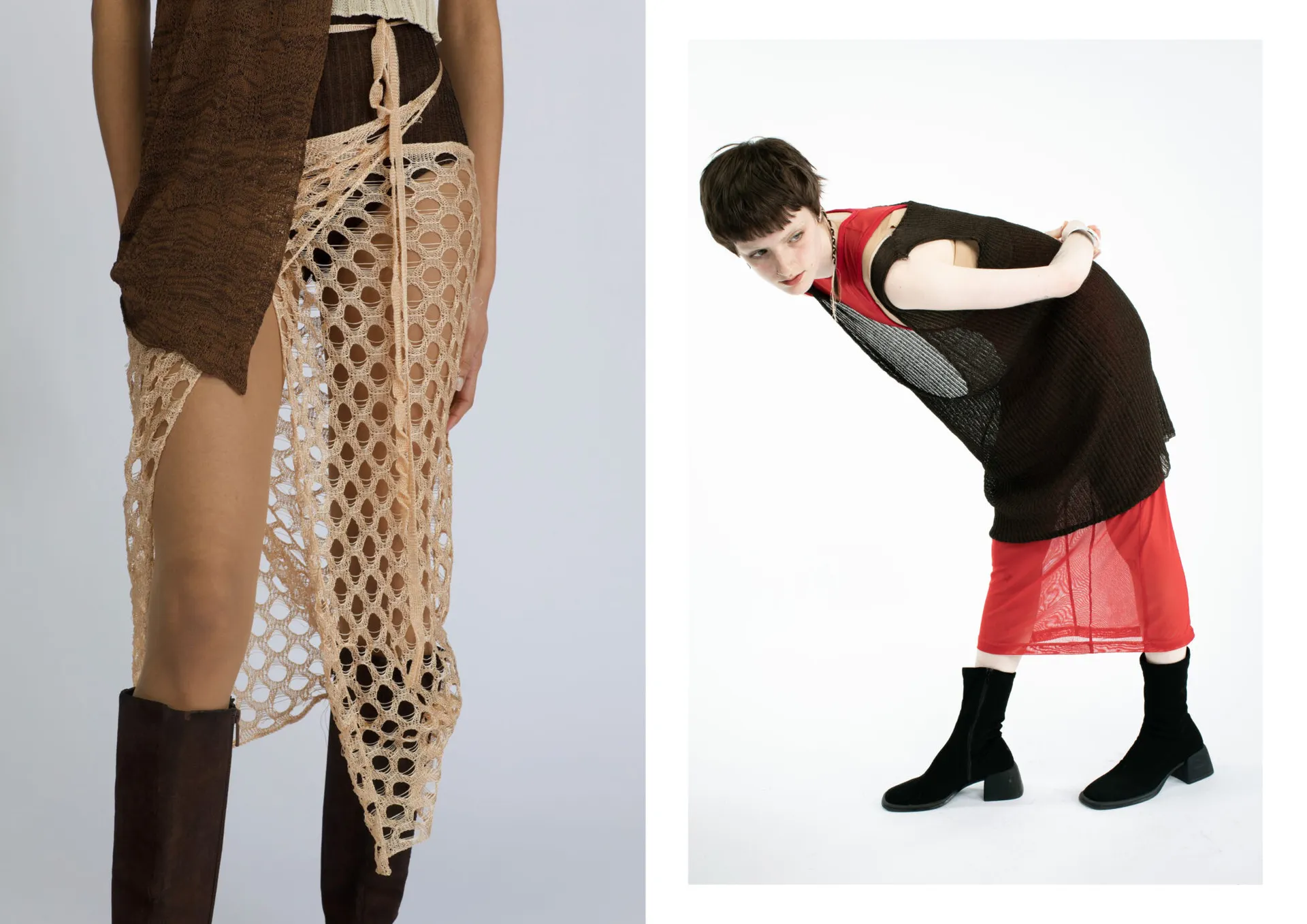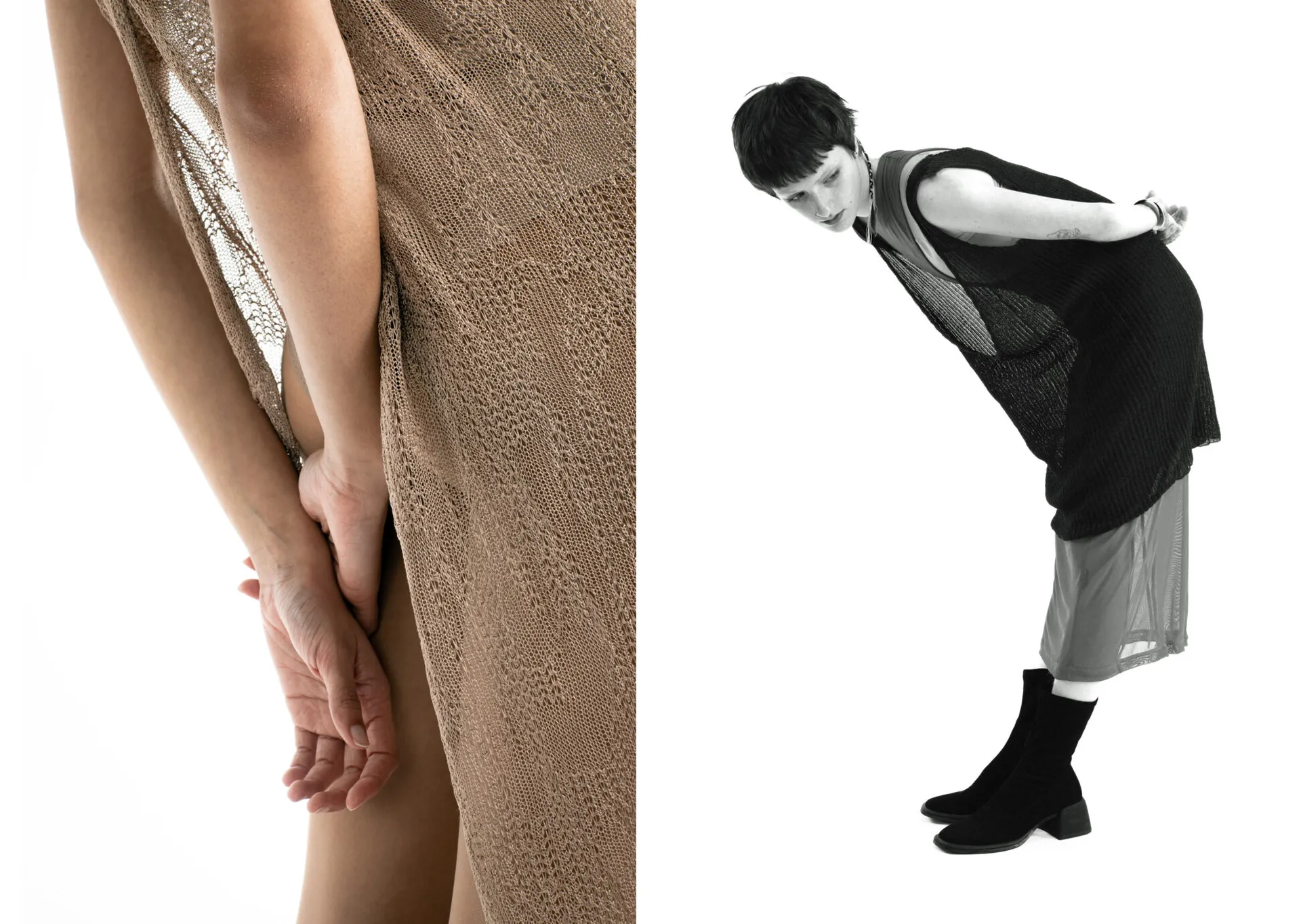 Dulcie Dobson is a fashion design graduate specialising in Knitwear. They experiment with intricate techniques, fine yarns and felting to produce modular, genderless garments.
