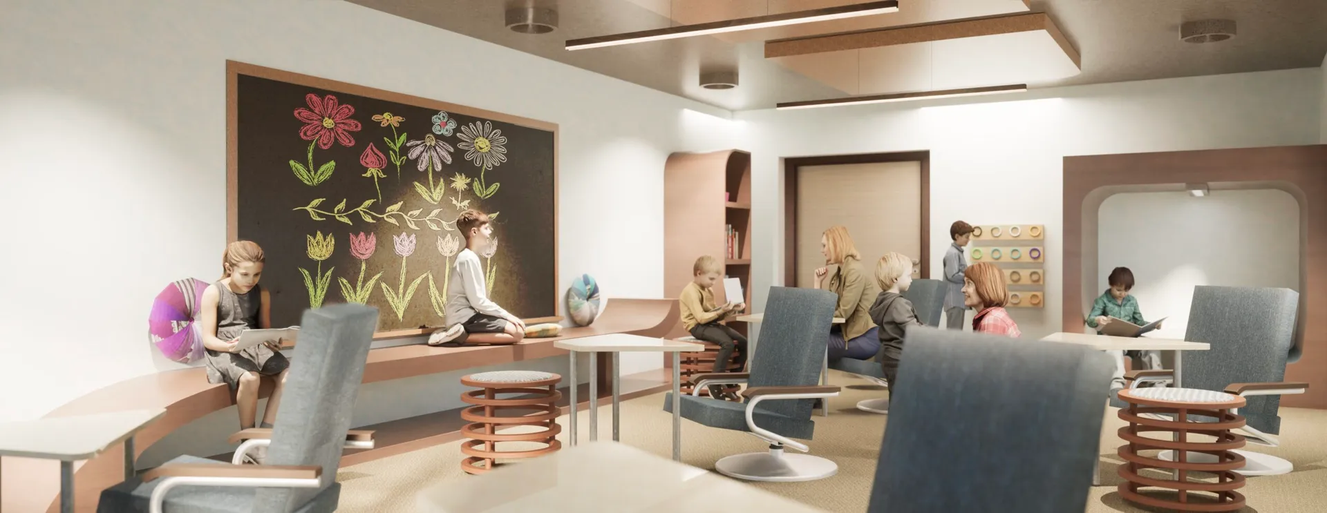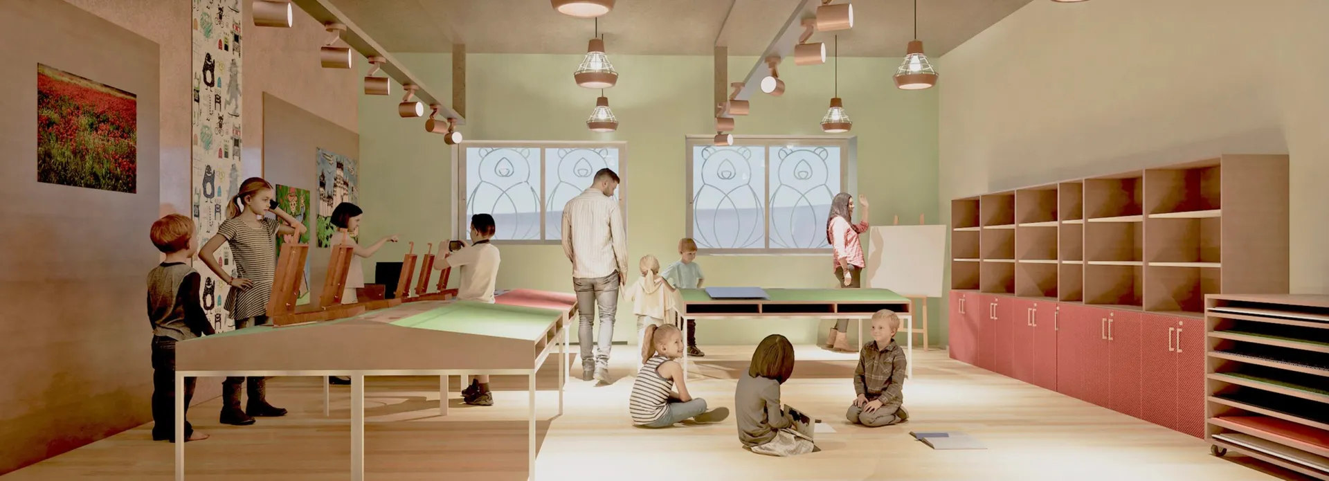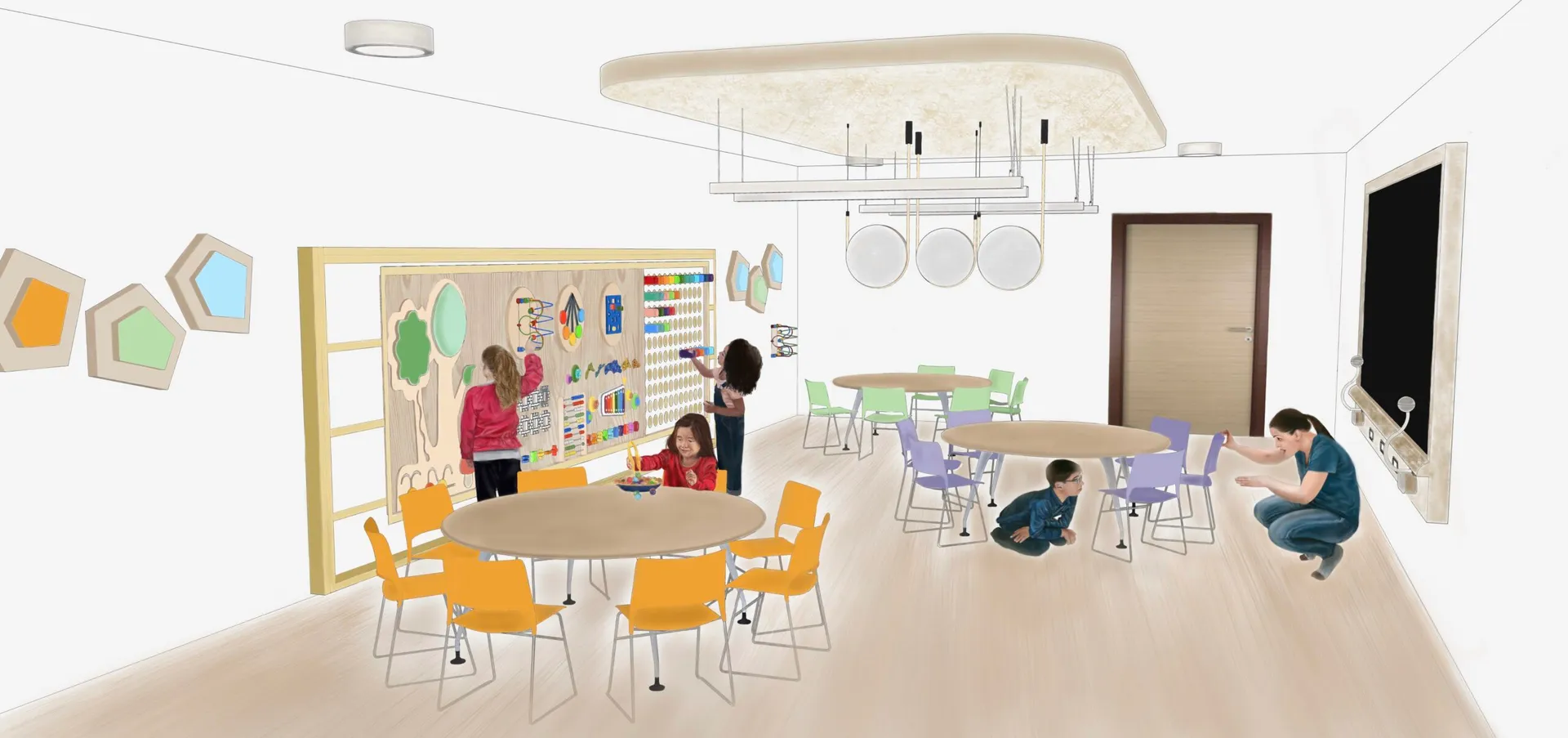 The main objective of this project is to improve the understanding of the experiences of individuals with Autism Spectrum Disorder (ASD) and to identify common challenges, issues, and examples of best practices. The design aims to create an environment tailored to the needs of individuals with autism, providing them with a comfortable space for self-expression and a sense of belonging. This promotes a more accessible involvement in educational activities, ensuring that their disability does not hinder their progress in a detrimental manner. Within this initiative, I seamlessly integrated architecture with the distinct requirements of individuals with Autism Spectrum Disorder (ASD), igniting a remarkable interchange of interdisciplinary insights.