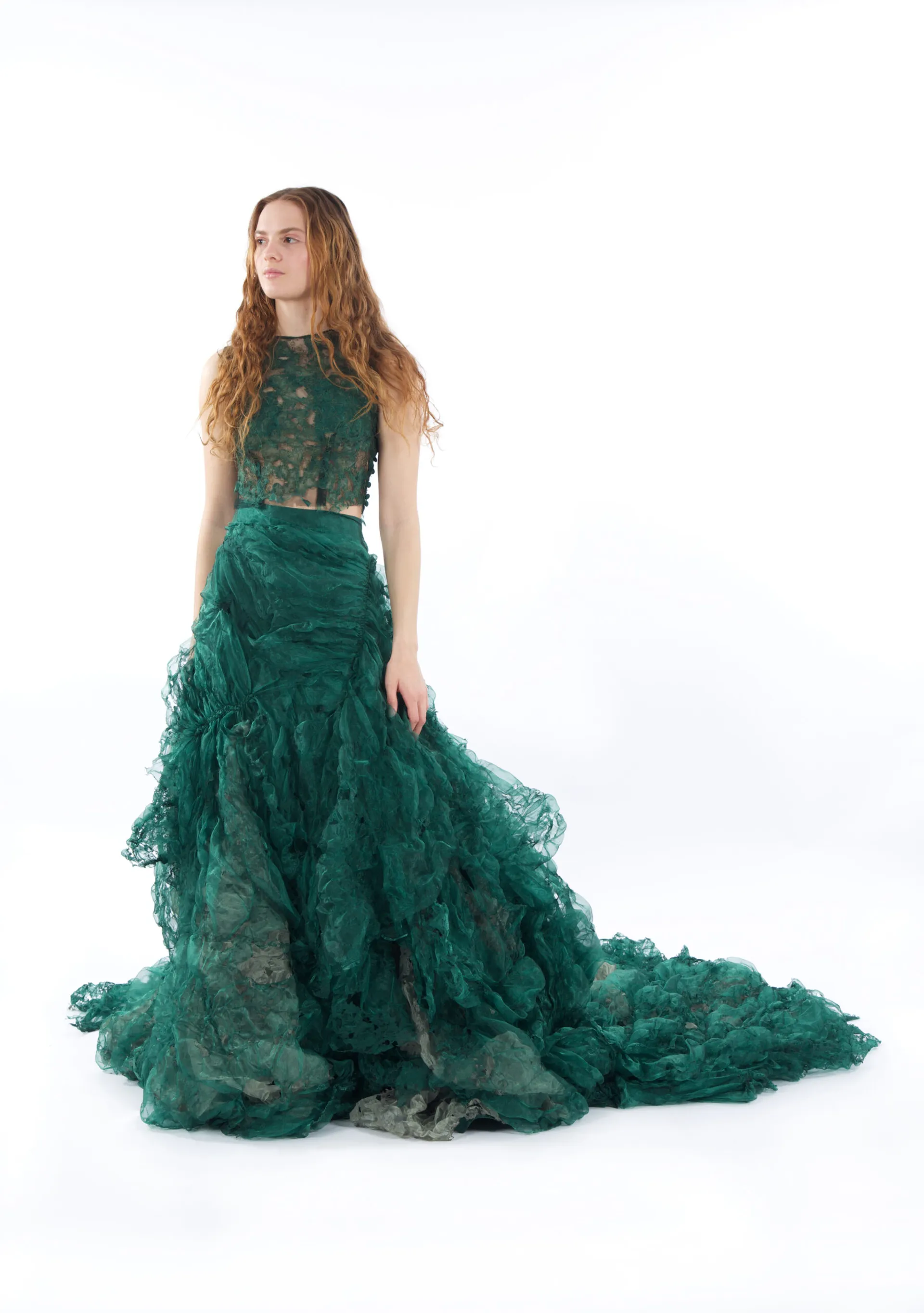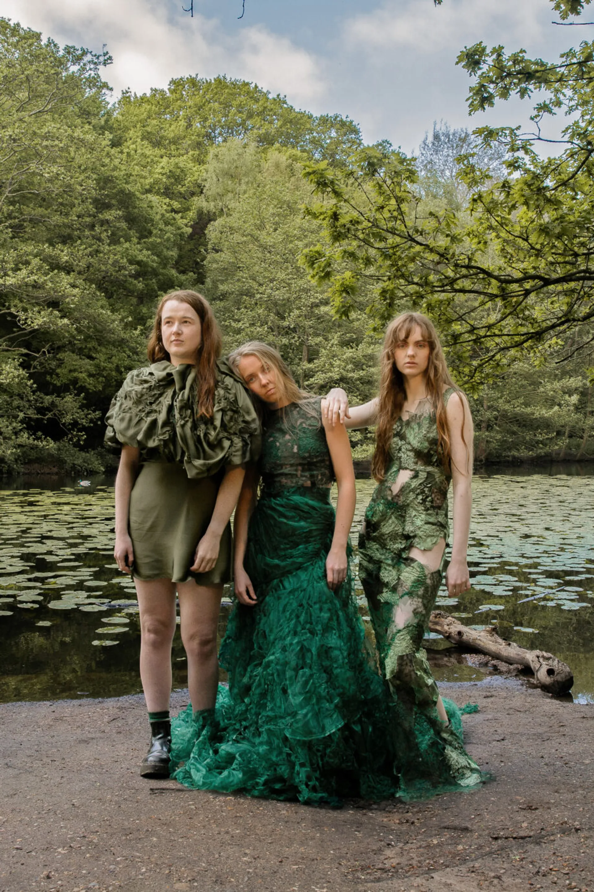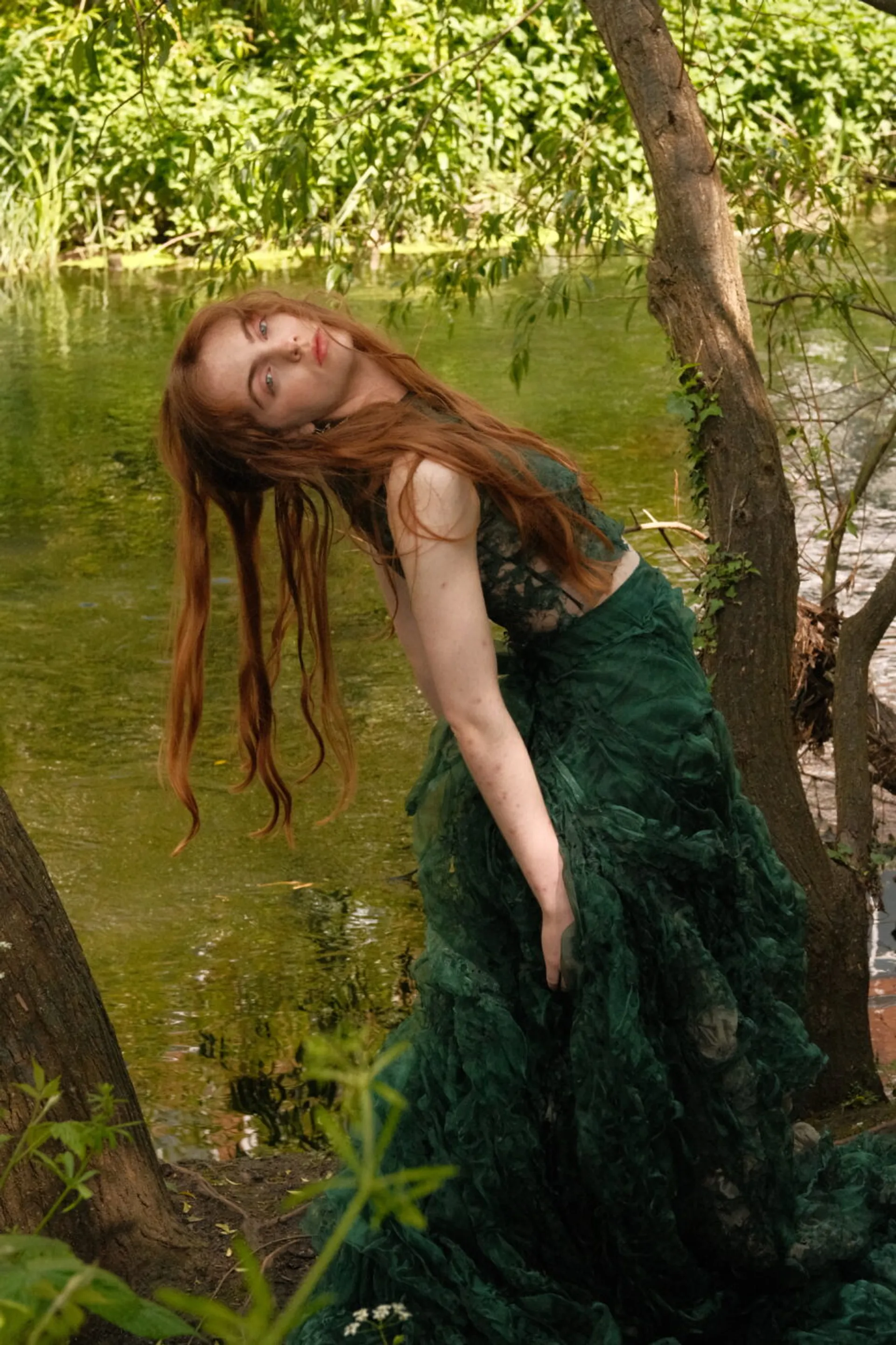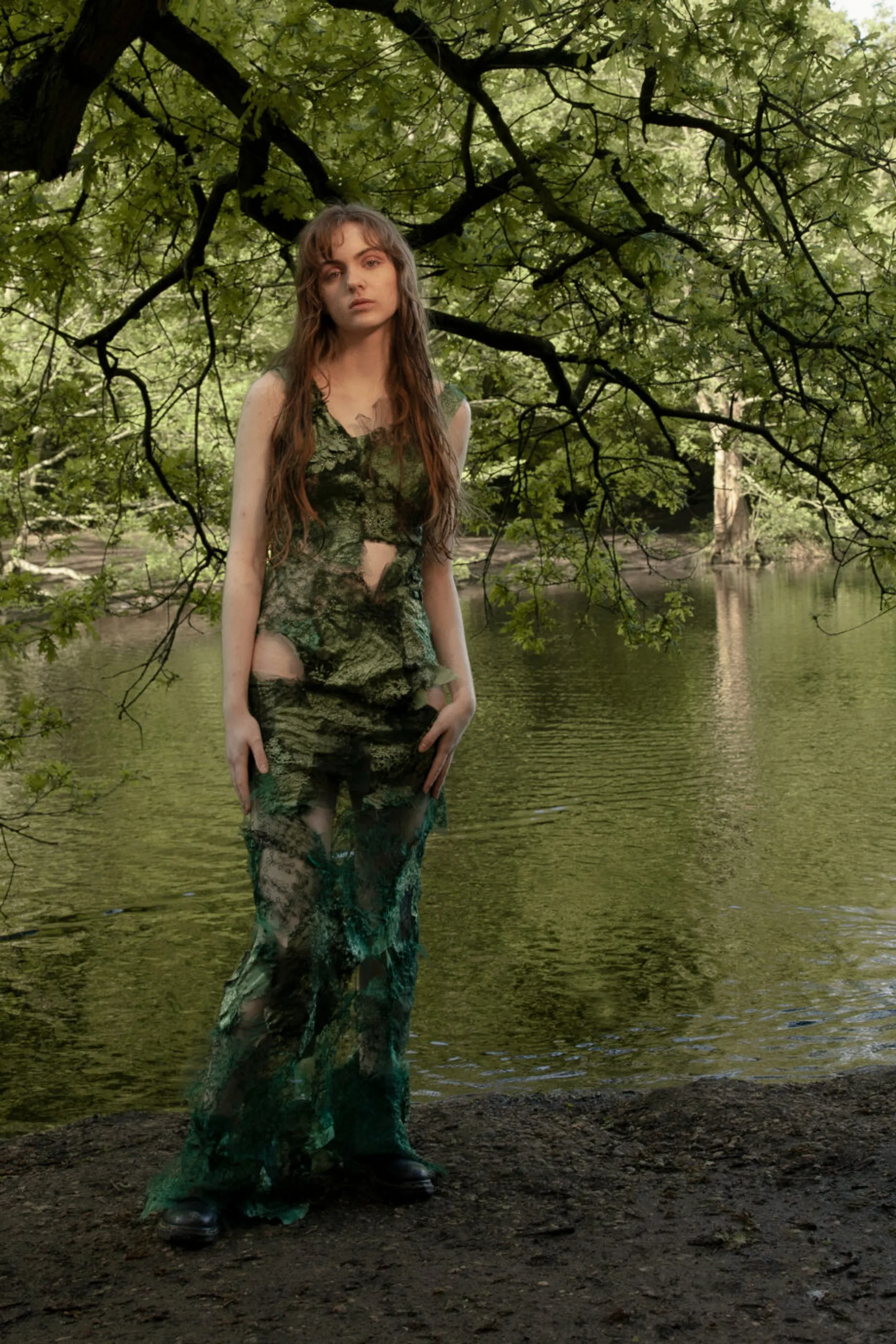 A project exploring various textile and surface manipulation techniques which can be used for bespoke couture garments inspired by the ‘Ophelia’ painting by John Everett Millais in 1982. Inspired by the environment surrounding the Hogsmill River, I experimented with upcycling and soluble mediums which mirror elements of nature. This project captured various stages of Ophelia’s last moments.