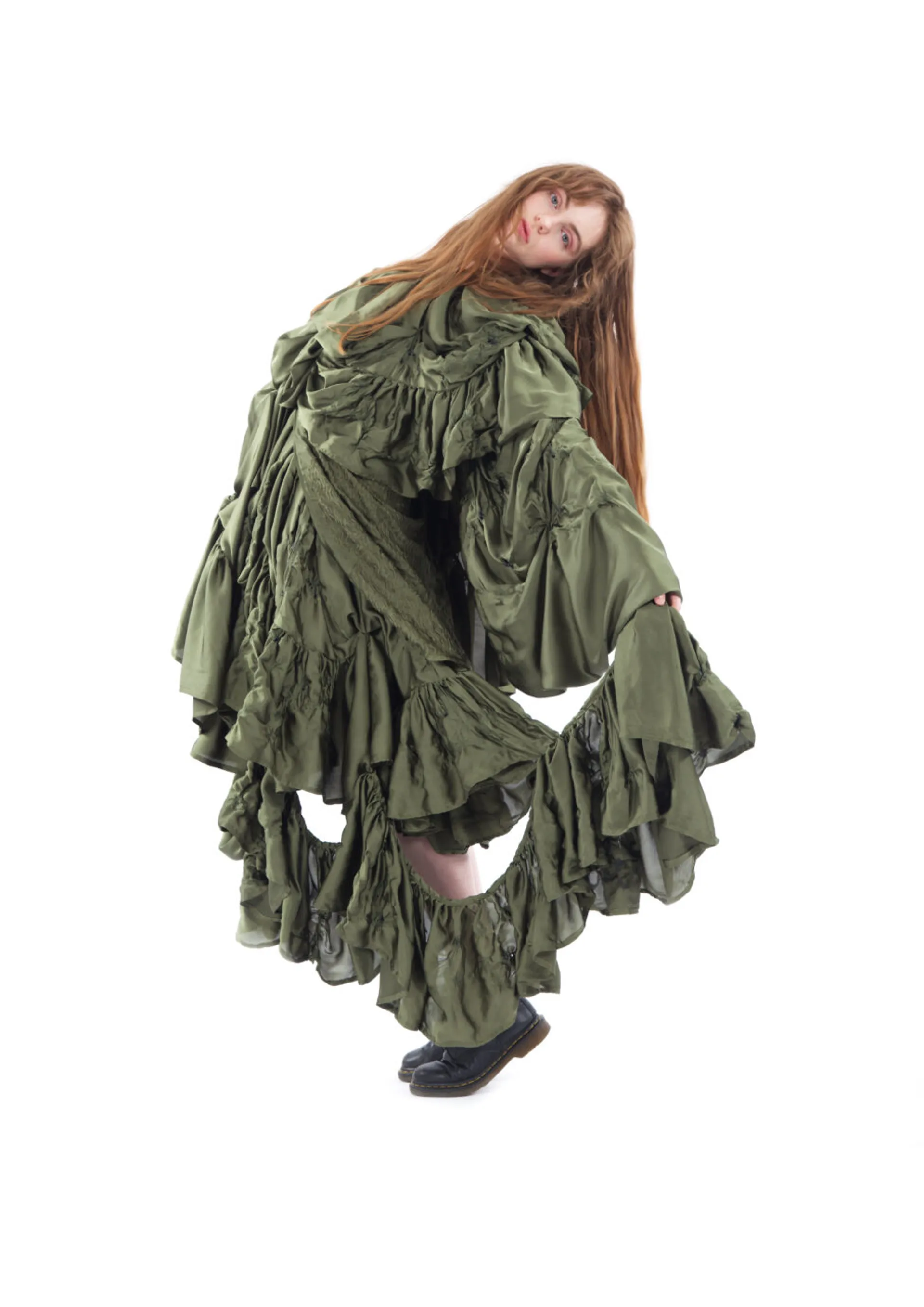 My character Opheliana wearing 6 bespoke garments featuring upcycling along with textile and surface manipulation techniques.