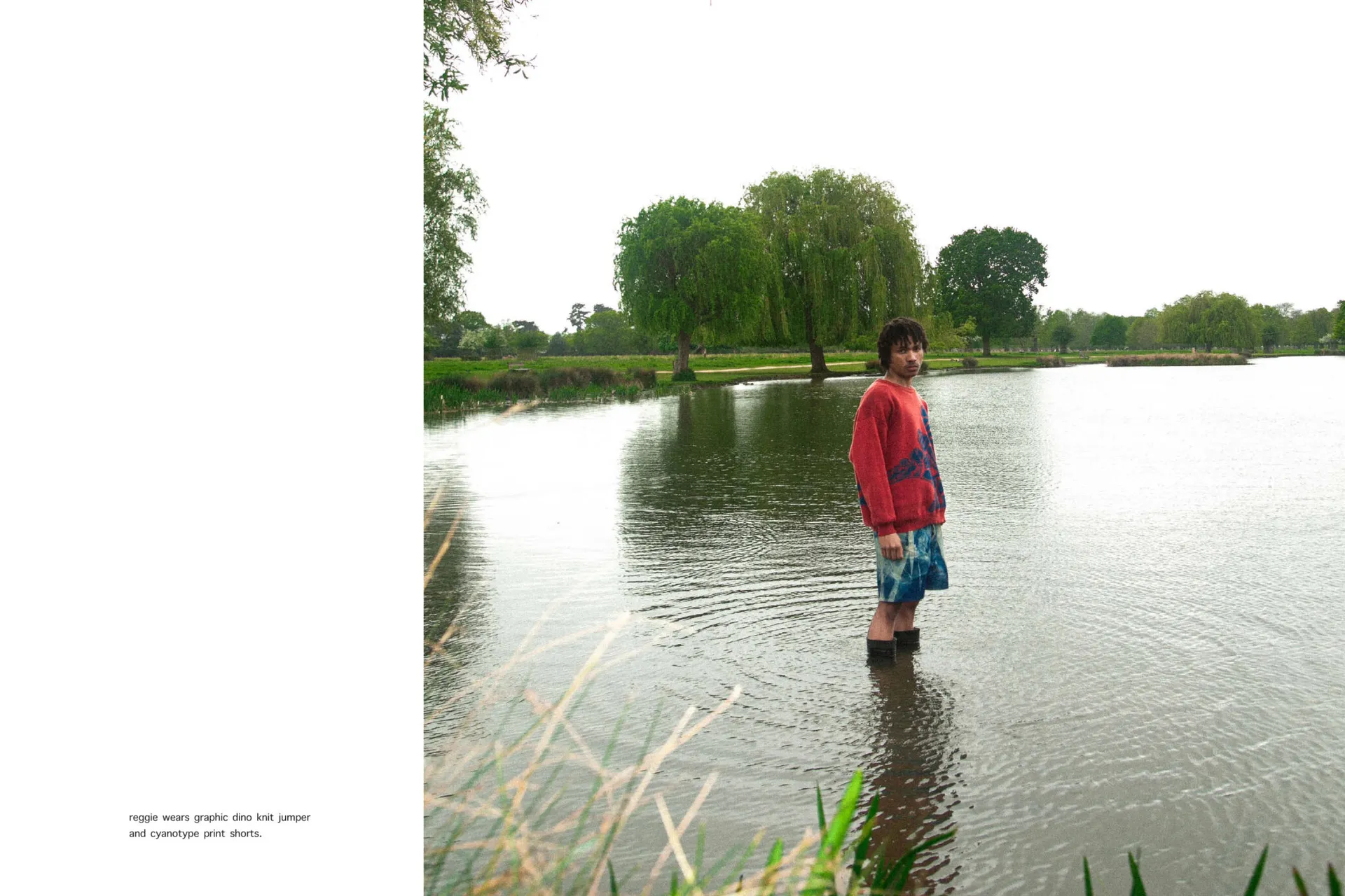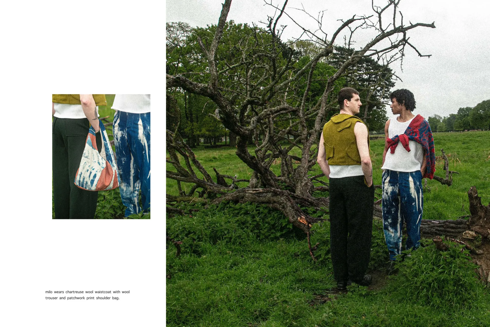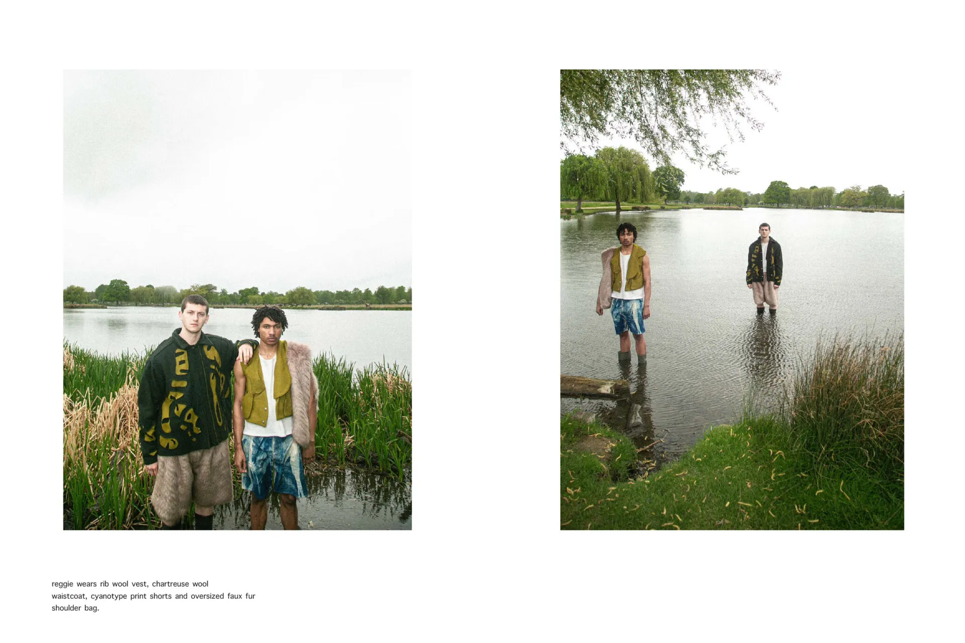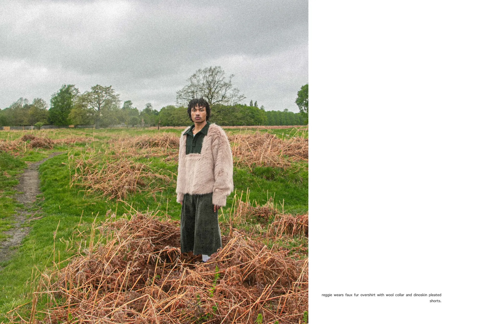 My menswear ready-to-wear collection is routed in my childhood love of dinosaurs, researching into biological imagery and the palaeontologists that discovered the fossils, I gained extensive visual and silhouette inspiration to put into this collection. With a focus on fabrication and colour I used methods such as cyanotype to create organic prints on my garments, while the placement and concept was considered, the final result was inevitably unknown until the very end. Taking visuals from fossil excavation I developed my own layering and cut out designs, which are a key feature within my collection. Using a mix of classic fabrics, including, wools and cottons as well as, less traditional menswear fabrics such as faux fur, creates a textured and animated feel to the collection.