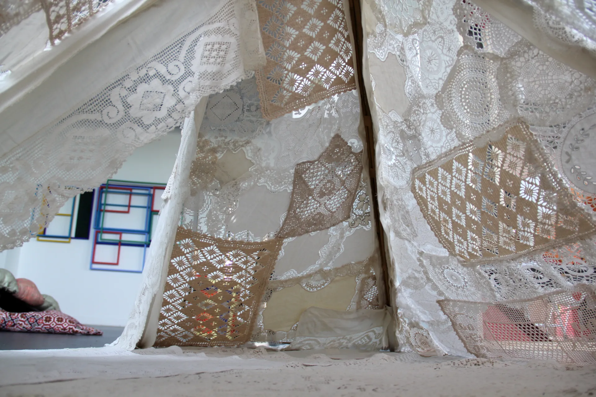 ‘Good Limbo’ is a hideaway and a place of sanctity for those seeking a comforting maternal refuge, to soothe the experience of separation from ourselves or from each other. This space of softness intends to evoke a safe sense of both the maturity and wisdom that comes with age and the innate curiosity and naivety possessed in childhood. You are invited to ponder the various selves you have been in the past and the relationship your current self has to them now, encouraging a co-regulative relationship between these parts within oneself.