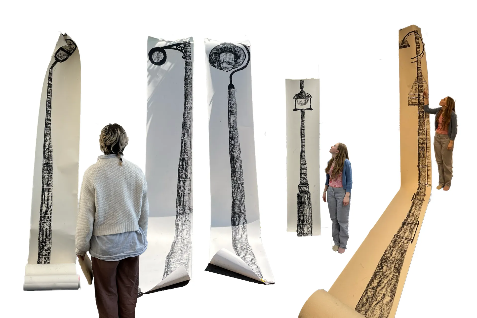 Lamp posts give shade. They lean over us and also provide light. They communicate through their wires, buzzing and blinking below our feet. They are normally just grey or black, but at night they glow. Yellow, orange, gold and silver. Tall and dark, but protective and guiding. They too will last for a while, but perhaps their impermanence can also be valued: they are constantly improving.