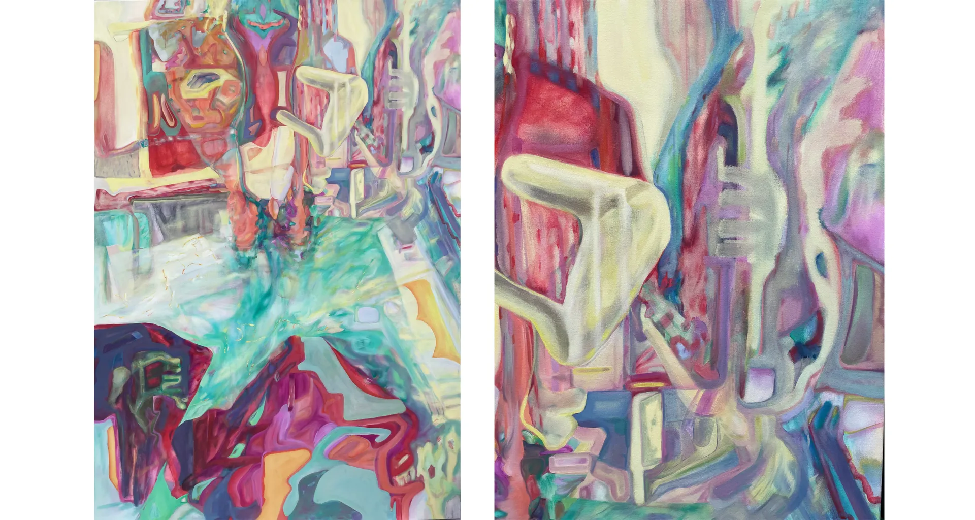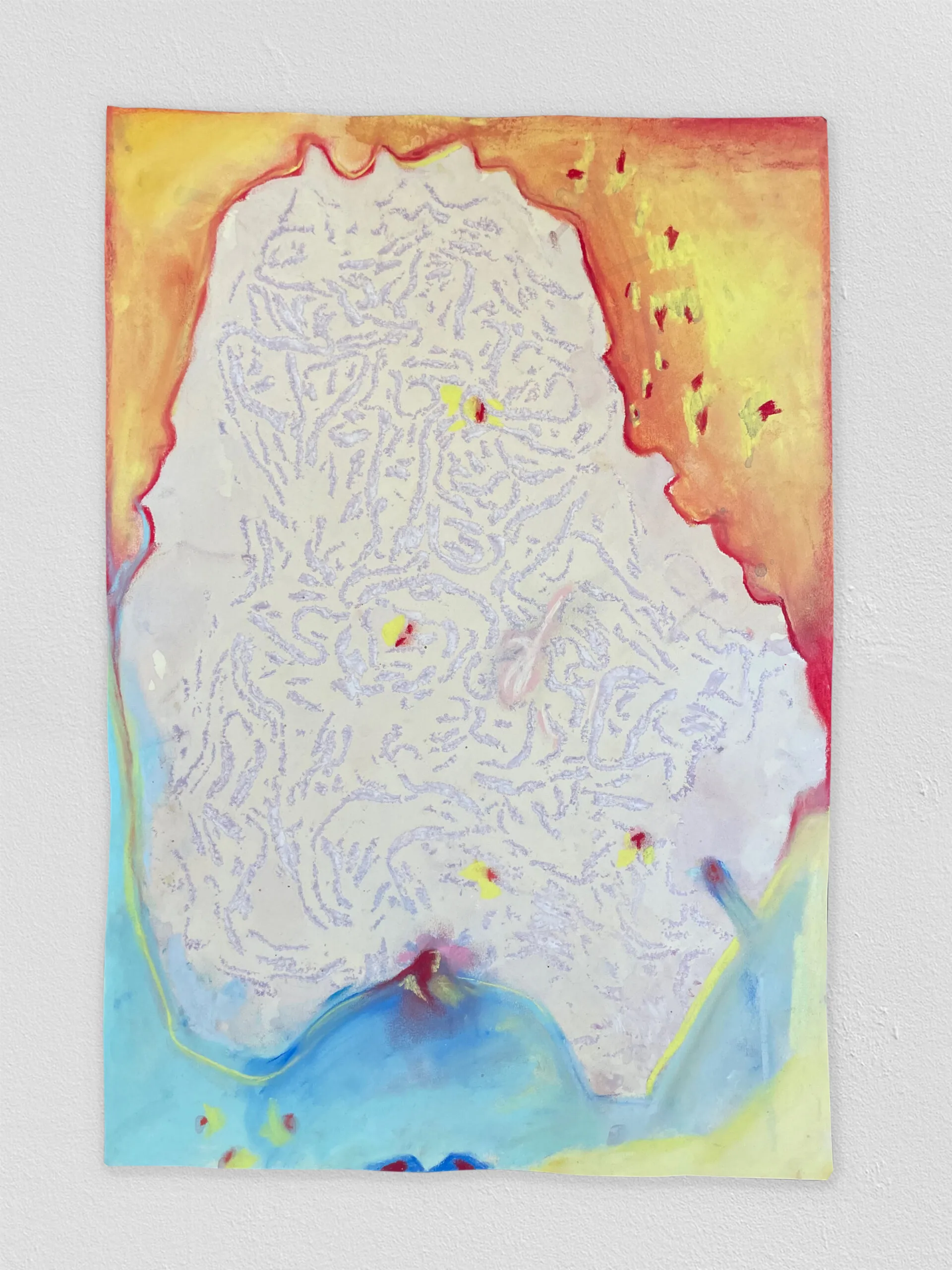 Playfully reacting to environmental tensions alongside a compression of documented memories, I recognise how my bodily functions have a grasp on my painting practice and toy with strategies of humour and gesture. Contradictions are at the centre of all my works adjacent to the theme of timelessness.