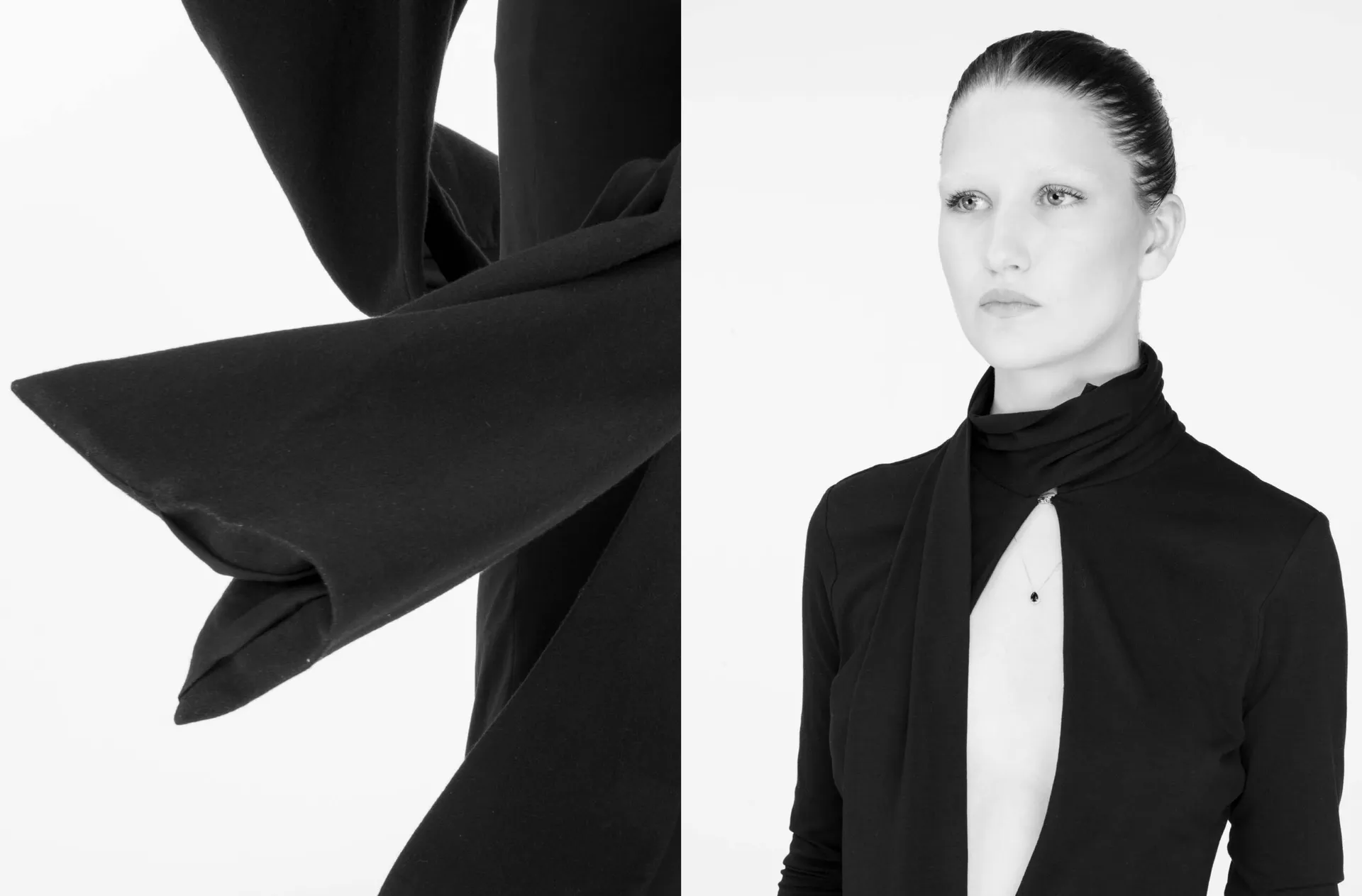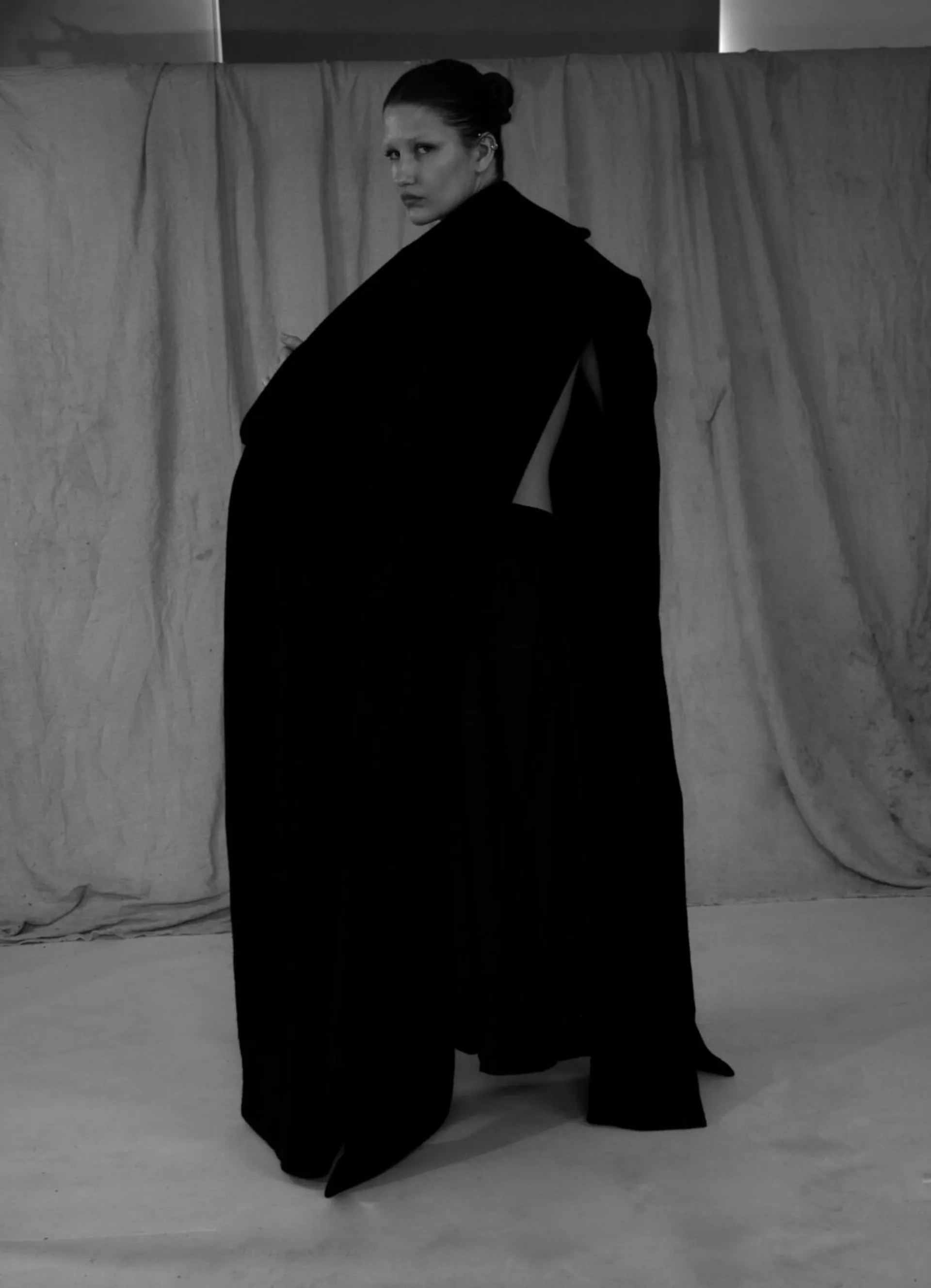 By combining and contrasting soft wools, and stretch jerseys with structured drills,THE ABSTRACTION OF A MODERNIST experiments with the idea of sculptural silhouette in all forms, and how one is able to achieve the idea of ‘sculptural’ dress through fabric choices.