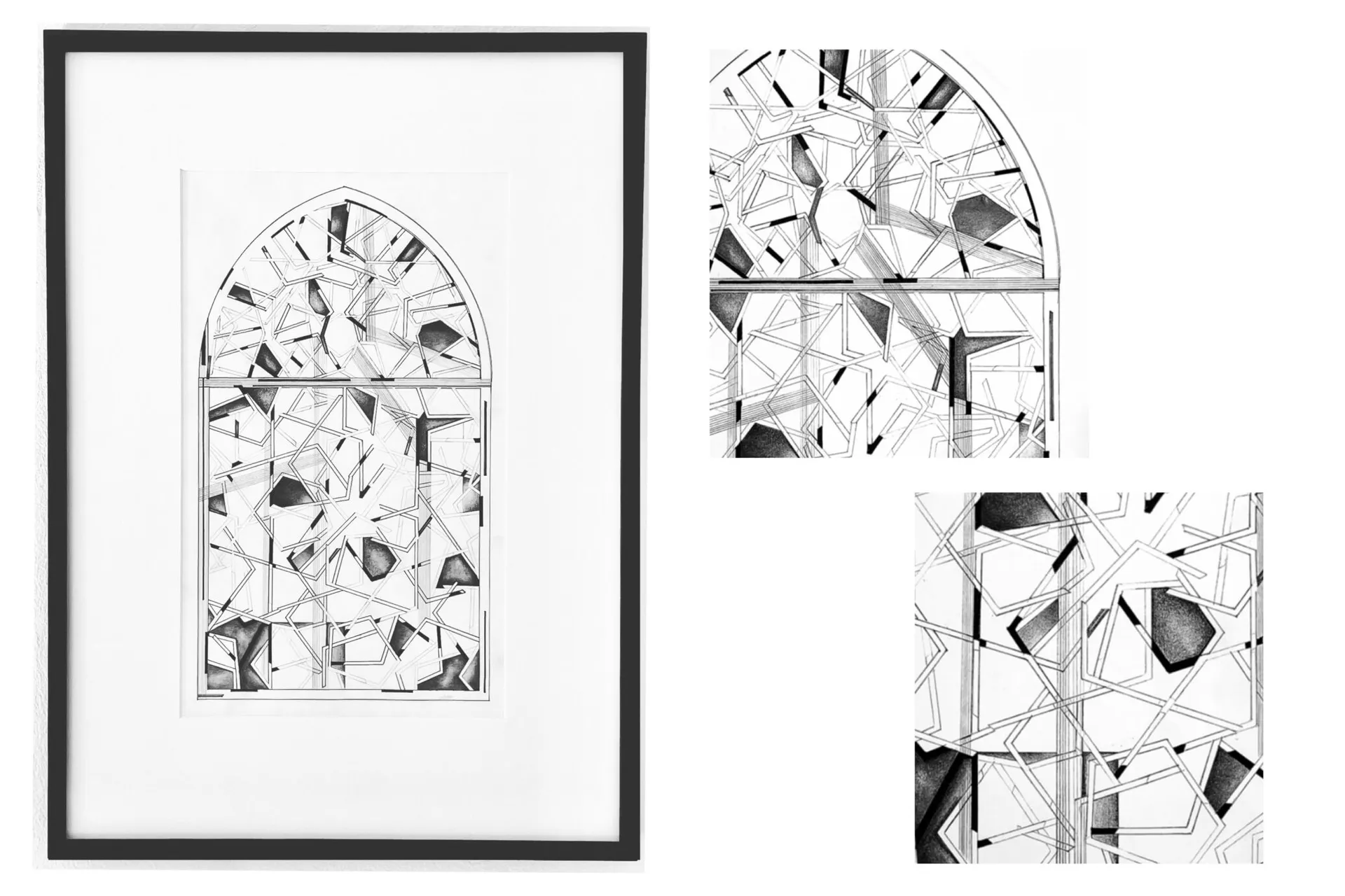 Abdullah’s art practice involves “Veil language”. It conveys a particular set of idea or stories implicitly. With increasing censorship and suppression of ideas, sometimes creatives find it difficult to express themselves. He focuses on abstraction of patterns, allowing him to delve into themes of spirituality, cultural identity, and impact of trauma. Being a part of Ahmadiyya Muslim community by birth. He is influenced by the history of persecution and the events that have collectively shaped their identity.