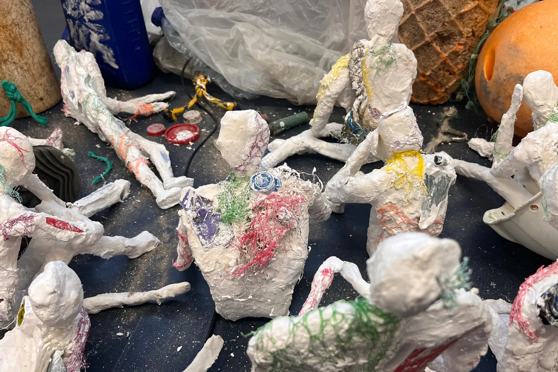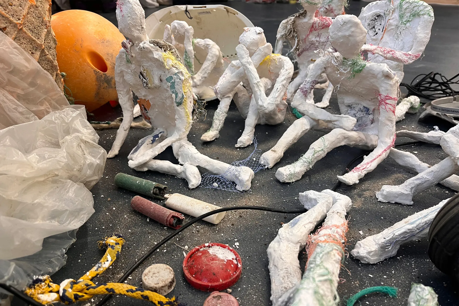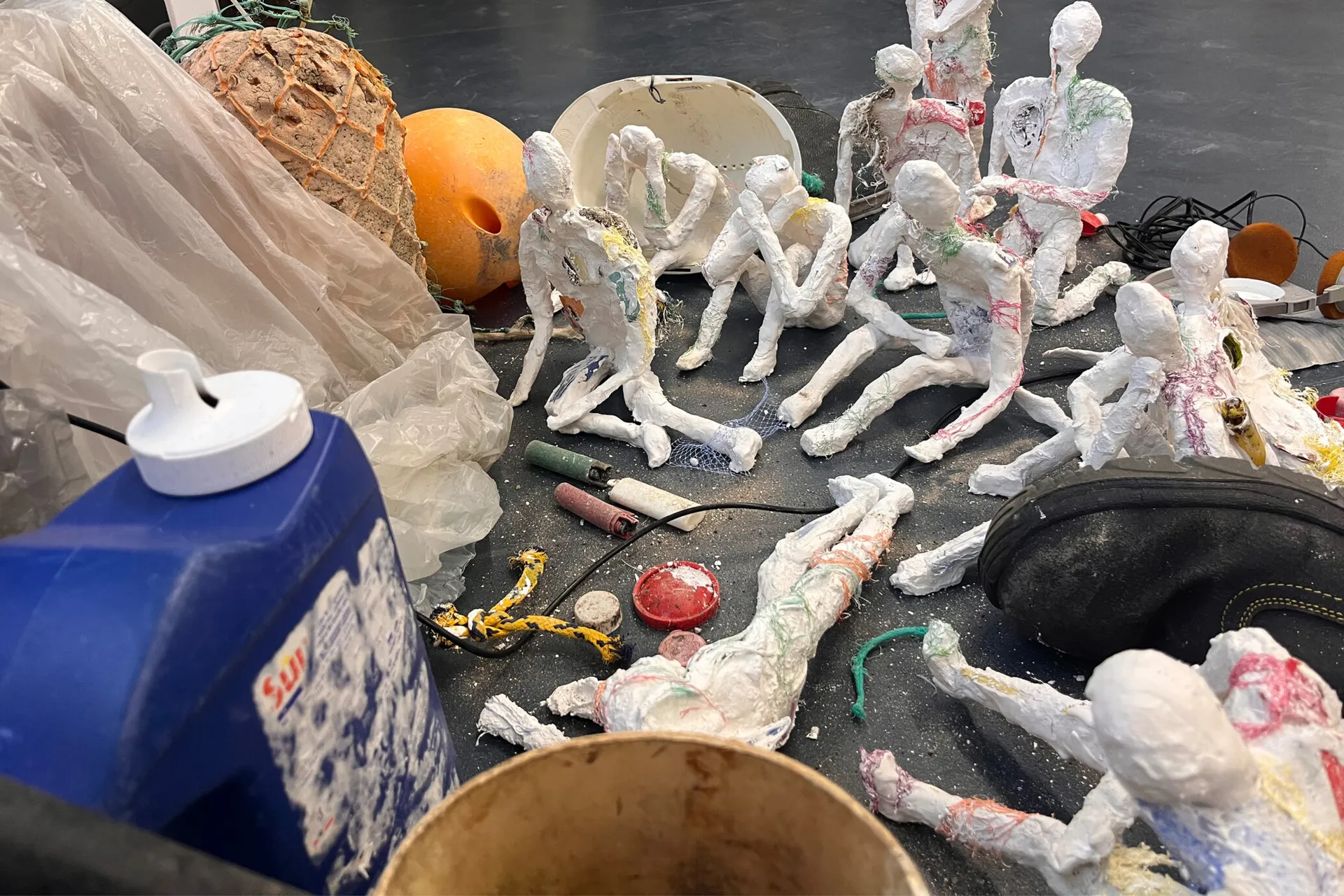 This 2 component Installation documents a slow personal return back to a site of importance to the lone traveller shown in the film. The landscape is starting to degrade, coupled only with the relentless soundscape of the crashing waves. Meanwhile 13 corrupted figures can do nothing but watch heads in hands from their post-apocalyptic landscape. The viewer is invited to join them to watch this pilgrimage.
