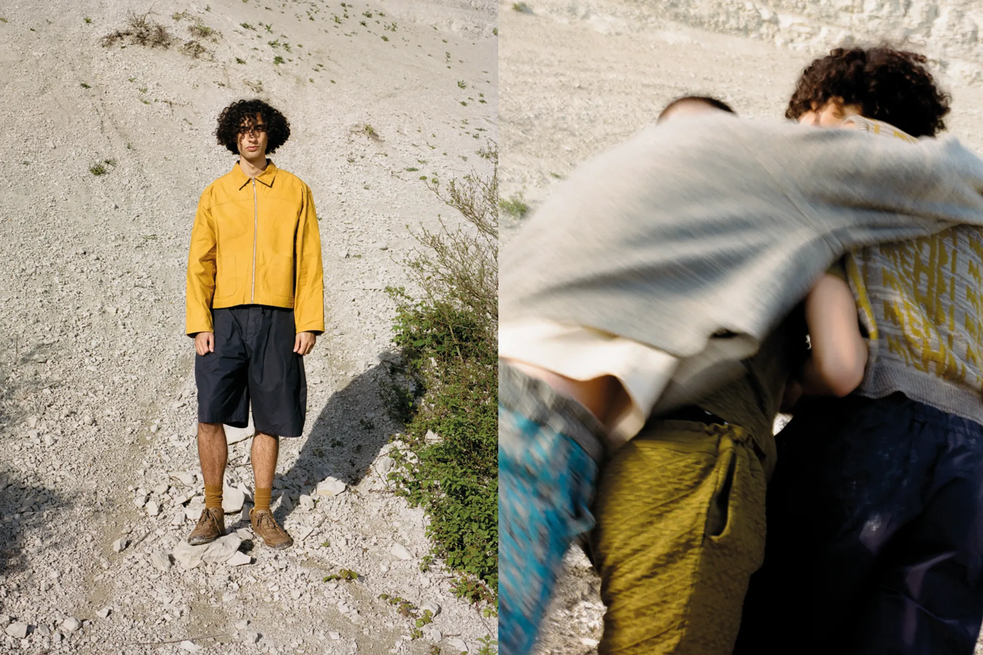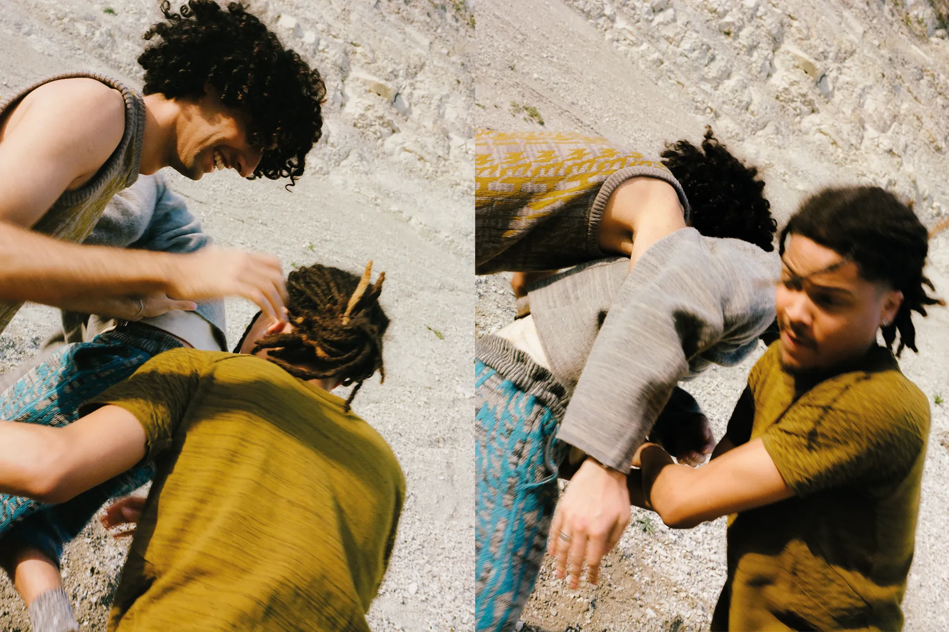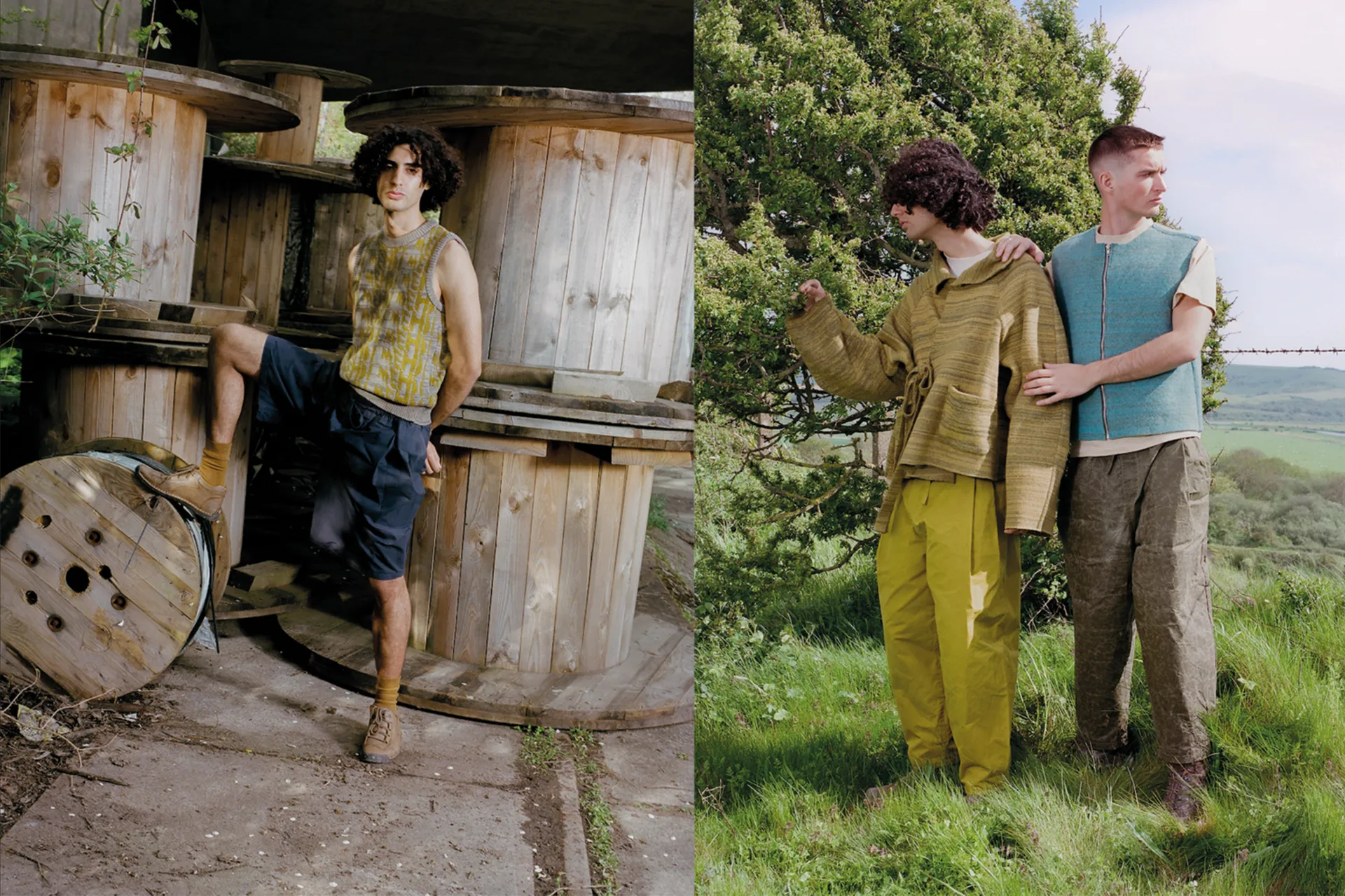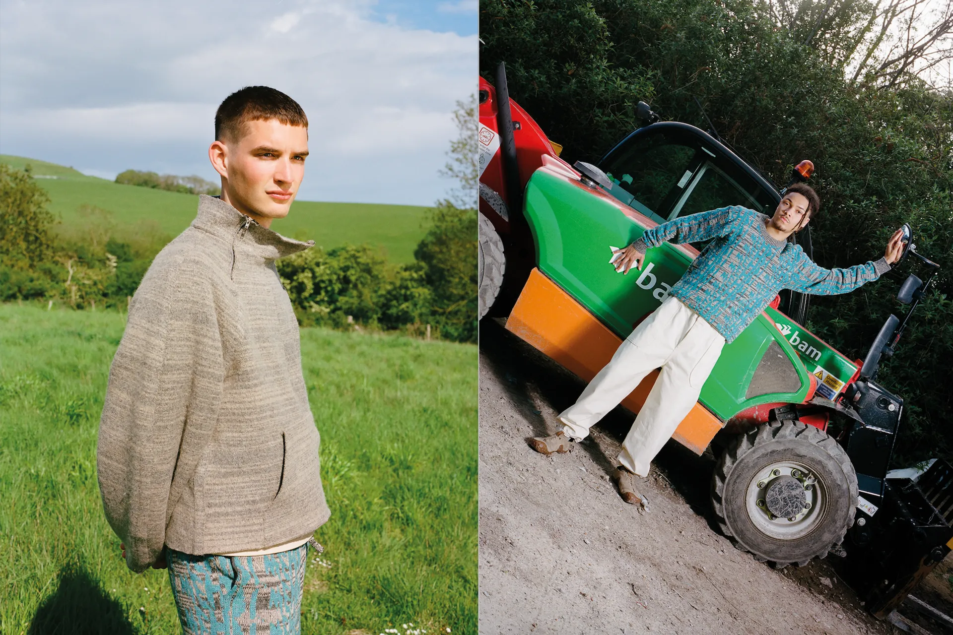 Mehdi draws its inspiration from a tapestry of family and heritage, fusing culture and appreciation of centuries of craftsmanship. Inspired by my family living in the British countryside embracing a semi self-sufficient lifestyle. They cultivated their own gardens, harvested homegrown food, made their own clothes and upholstered their furniture. Guided by my grandmother, a botanical artist and grandfather, a builder, they created a self-contained world of their own. My own mainly British and Iraqi heritage plays a significant role embracing both cultural influences, resulting in knitwear designs that pay homage to SWANA artists, clothing, architectural beauty, and music. The materials in this collection hold immense importance as they embody a return to its origins, using British made oilskin and waxed cotton, naturally dyed t-shirting, canvas and British spun lambswool.