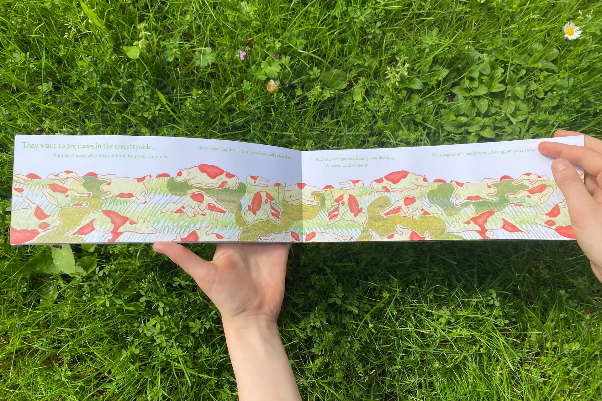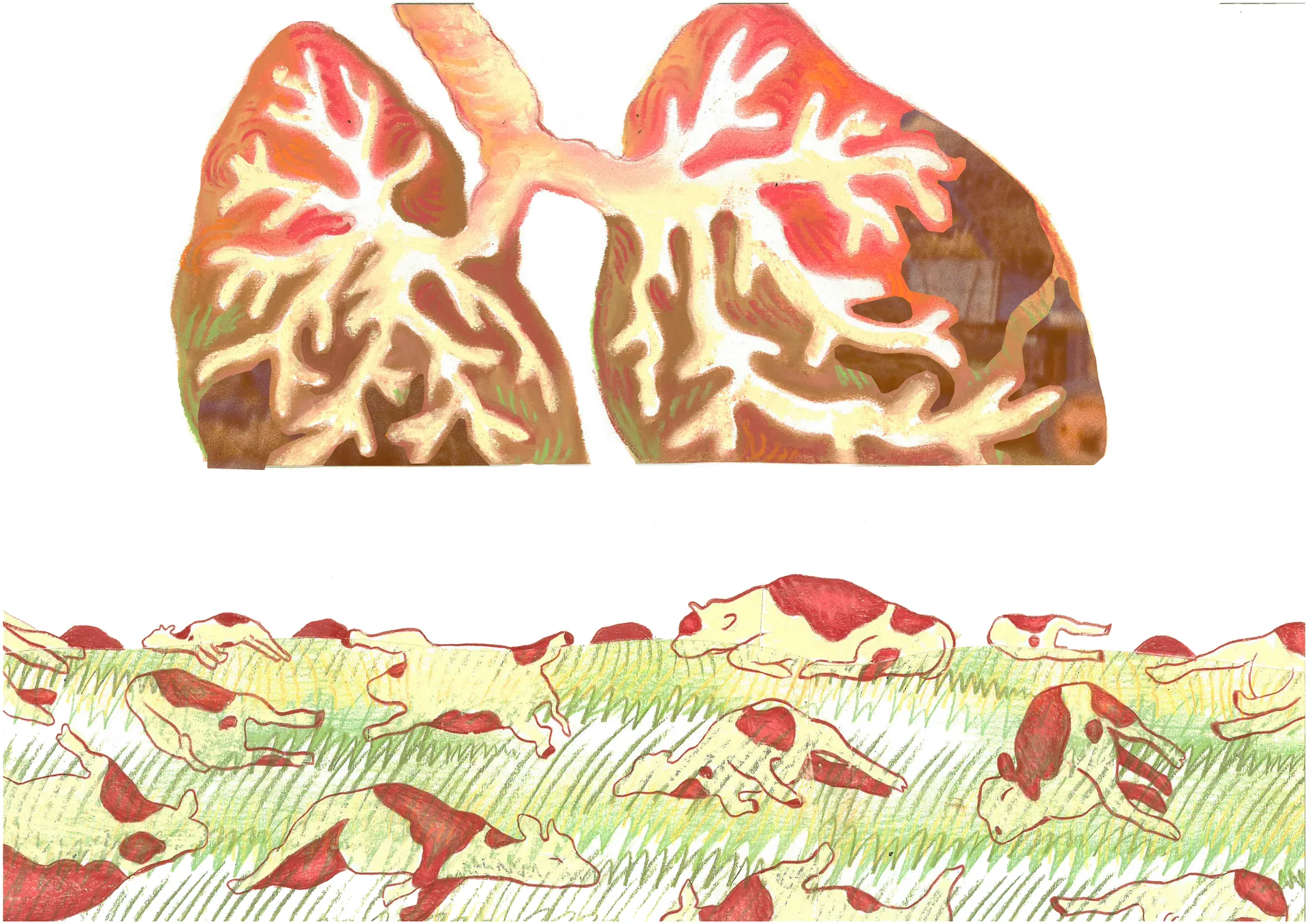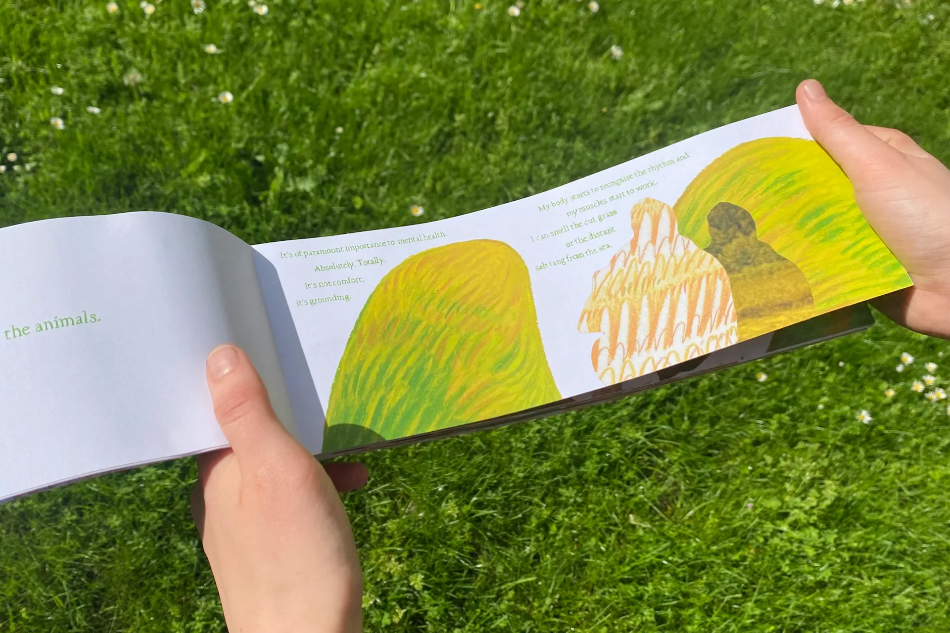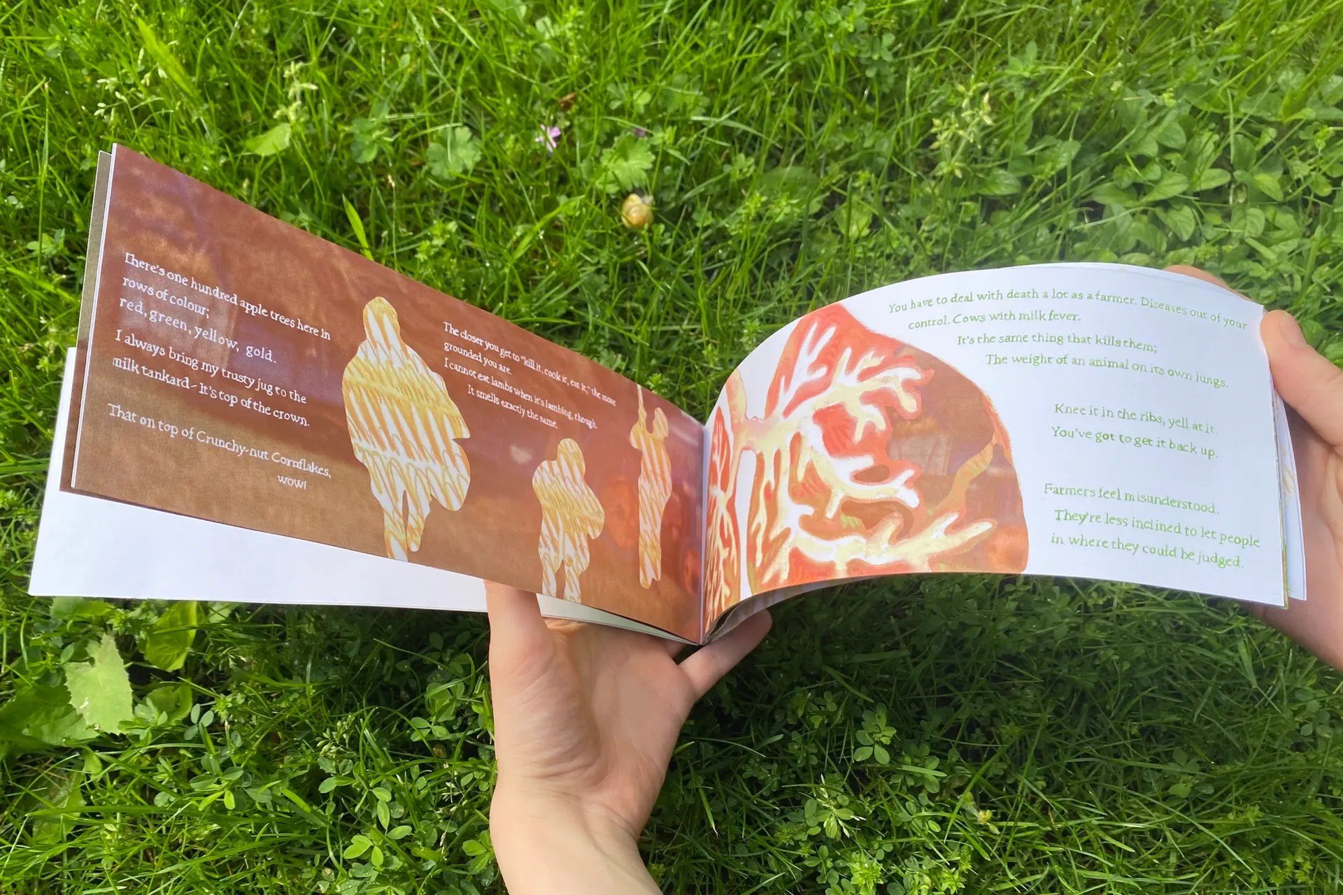 ‘I Think I Could Turn and Live with the Animals’ is an illustrated publication responding to the problems with our romanticised view of the British countryside by shedding light on the realities of rural living. I aim to demonstrate how real grounded-ness can come from developing a new, better informed relationship with the land, rooted more in truth than fantasy. Through my FMP, I explored depictions of the land and agriculture within British folk culture, looking particularly at landscape motifs in Folk horror film, historical agricultural folk art and interviewing those working closely with the land, whom we may call “rural folk culture” of 2023.