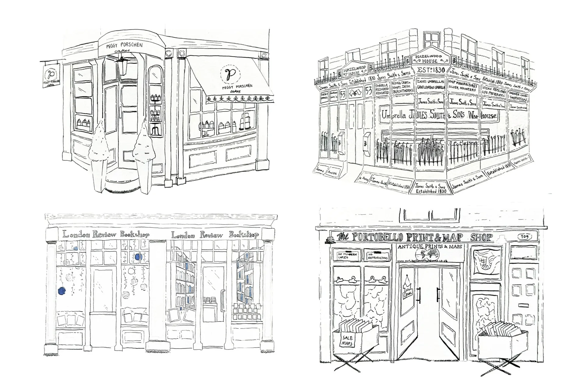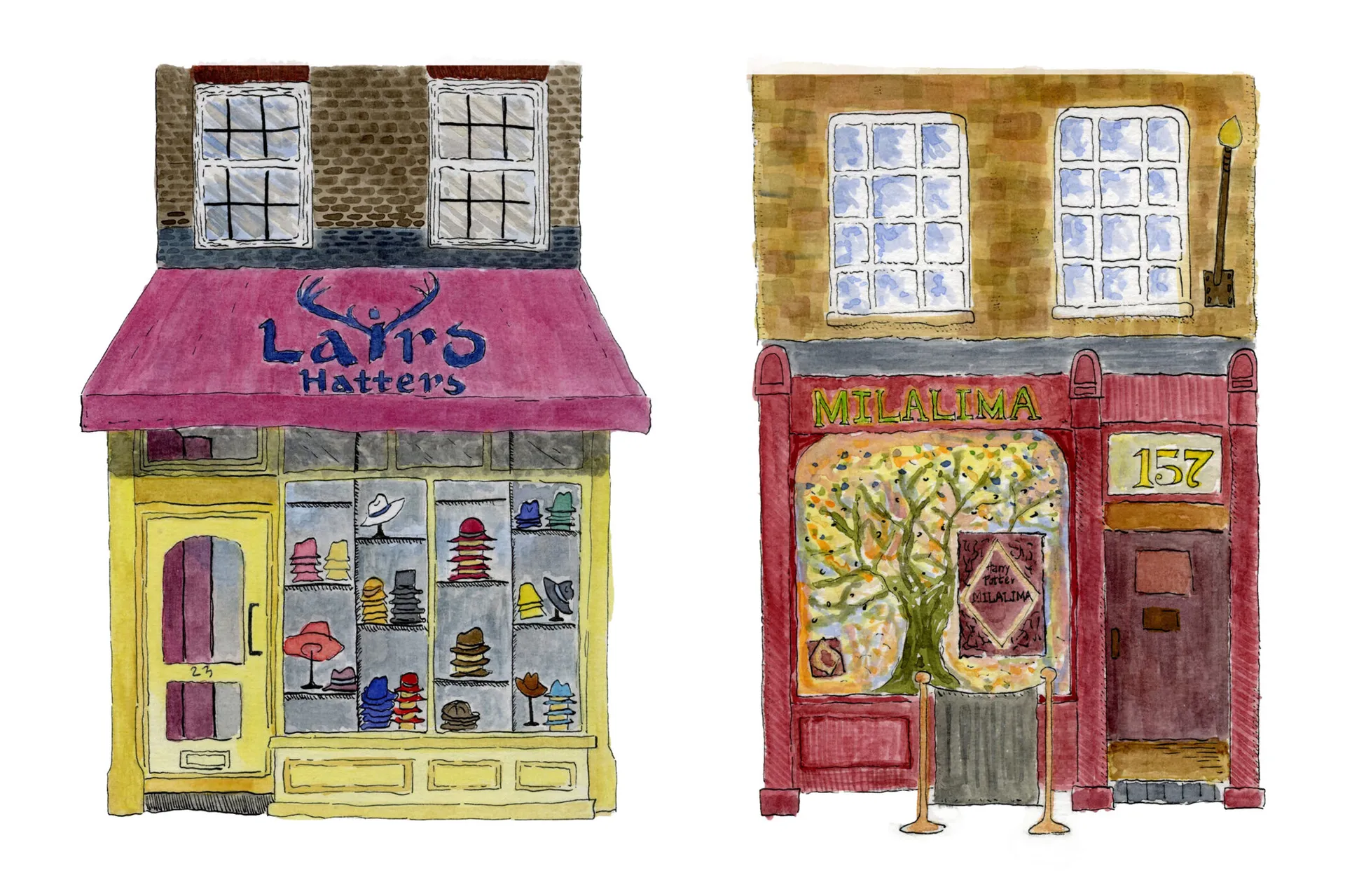 “Adorable London Shops” is a collection of books that showcases amazing shopfronts. With her paintings, she takes us on an exciting journey, allowing us to take a closer look at her artwork. You’ll probably discover a bunch of shops you’ll want to visit in person after seeing them.