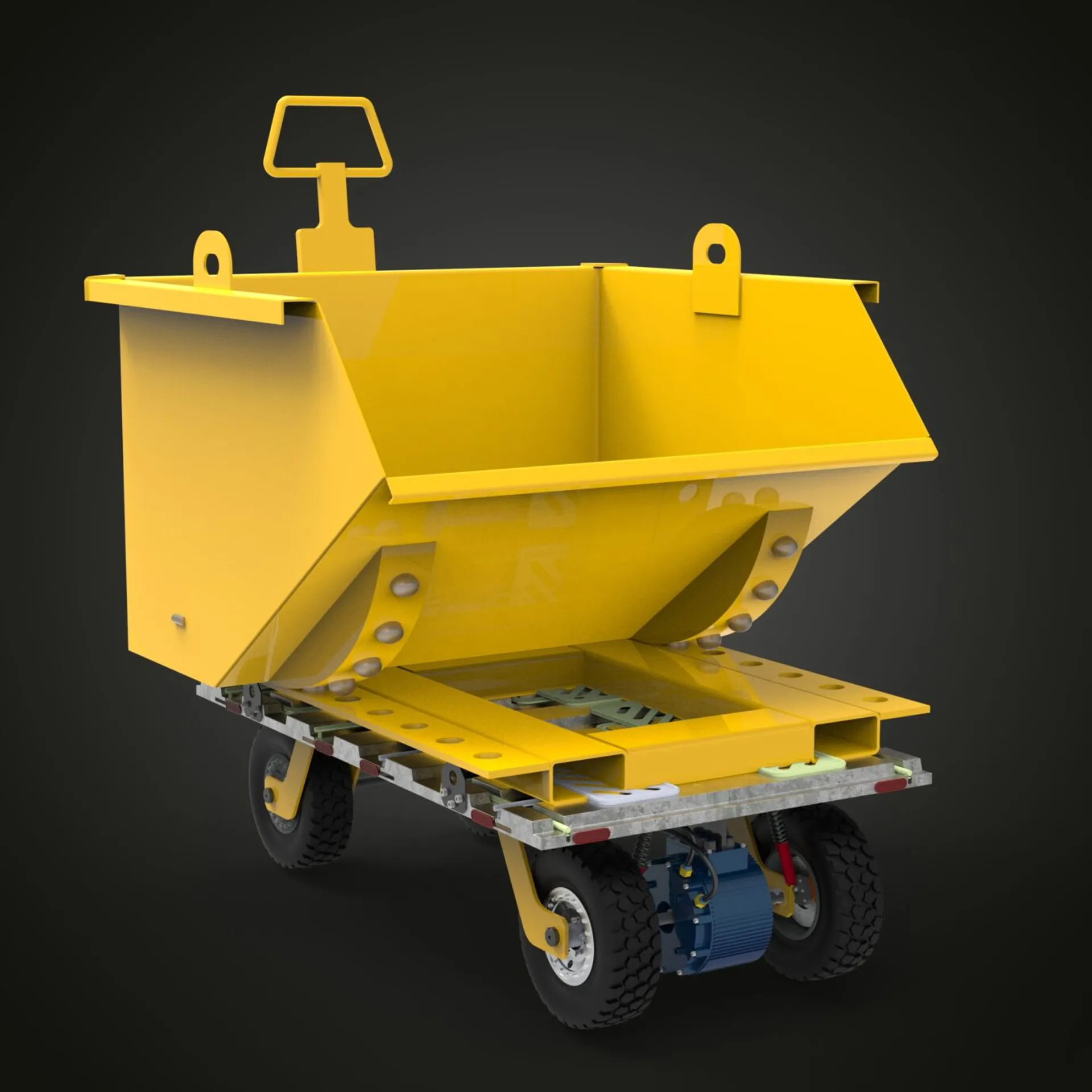 The ‘Load-Runner’ is powered by a battery and motor that can be recharged like modern electric cars. It can be controlled with a remote, eliminating the need for manual pushing and pulling. The large wheels with heavy-duty all-terrain tires allow the trolley to move through rough terrain with ease. The sides of the trolley can be folded to create a flatbed for moving pallets of bricks, cement, and plasterboards. A self-dumping hopper can be placed and bolted onto the trolley for jobs involving excavation or transportation of loose mixed cement.