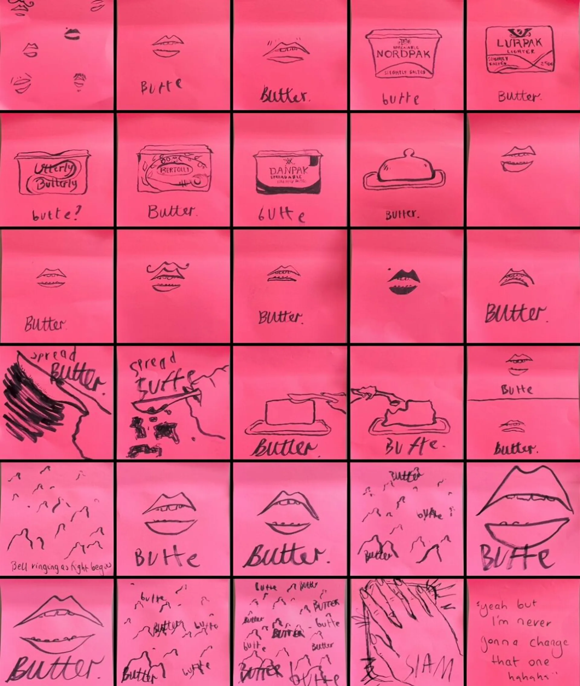 Final film synopsis – “My Granny never had a Yorkshire accent. When I was younger, she used to correct the way I would say “butter” to received pronunciation. My animation addresses the connotations of butter brands (such as Lurpak) and their association to social class, although at the end of the day, butter is still butter, despite it’s brand or the way it is pronounced.”