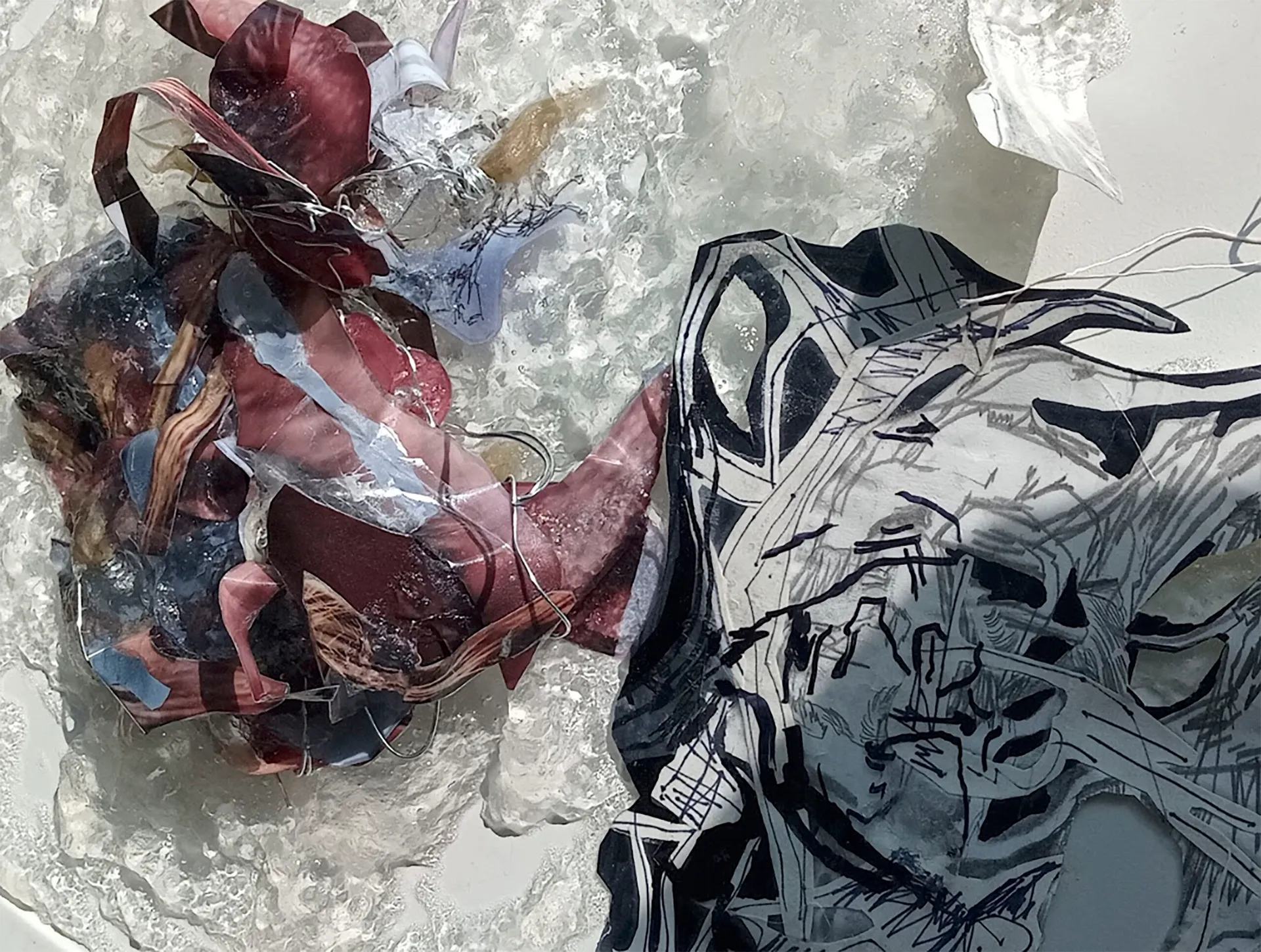 example poor vision and muscle weakness. I made speculative works, imagining technology as a physical barrier to our connection with nature. A kind of ‘technological film’ over the body, a seal that restricts our engagement with the natural world. To make this ‘film over the body’ I experimented using glitches, cropping ,heavy editing and saturation in my video work I also experimented with wax, honey ,plastic, blurring effects and clear jelly as I imagined this ‘film’ to be plasticky and elastic, like a strange digital recreation of the skin.
