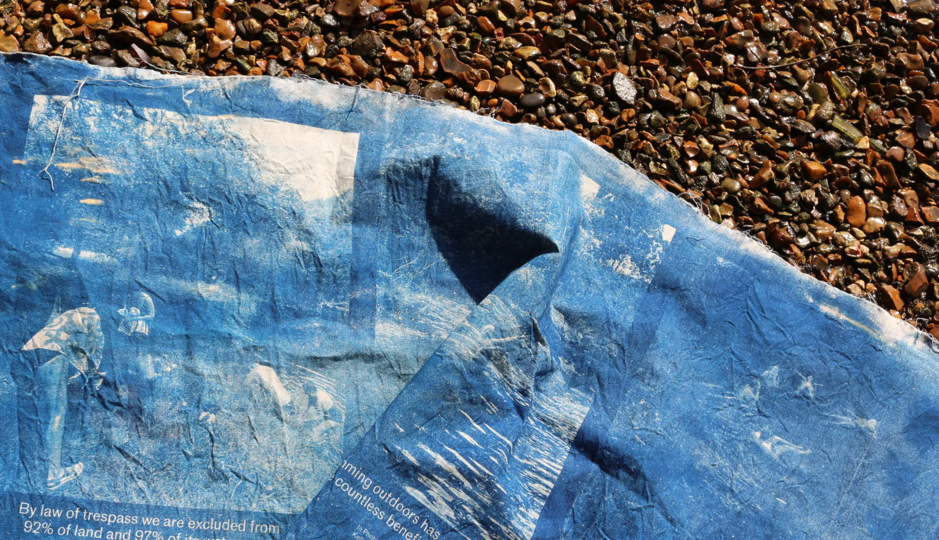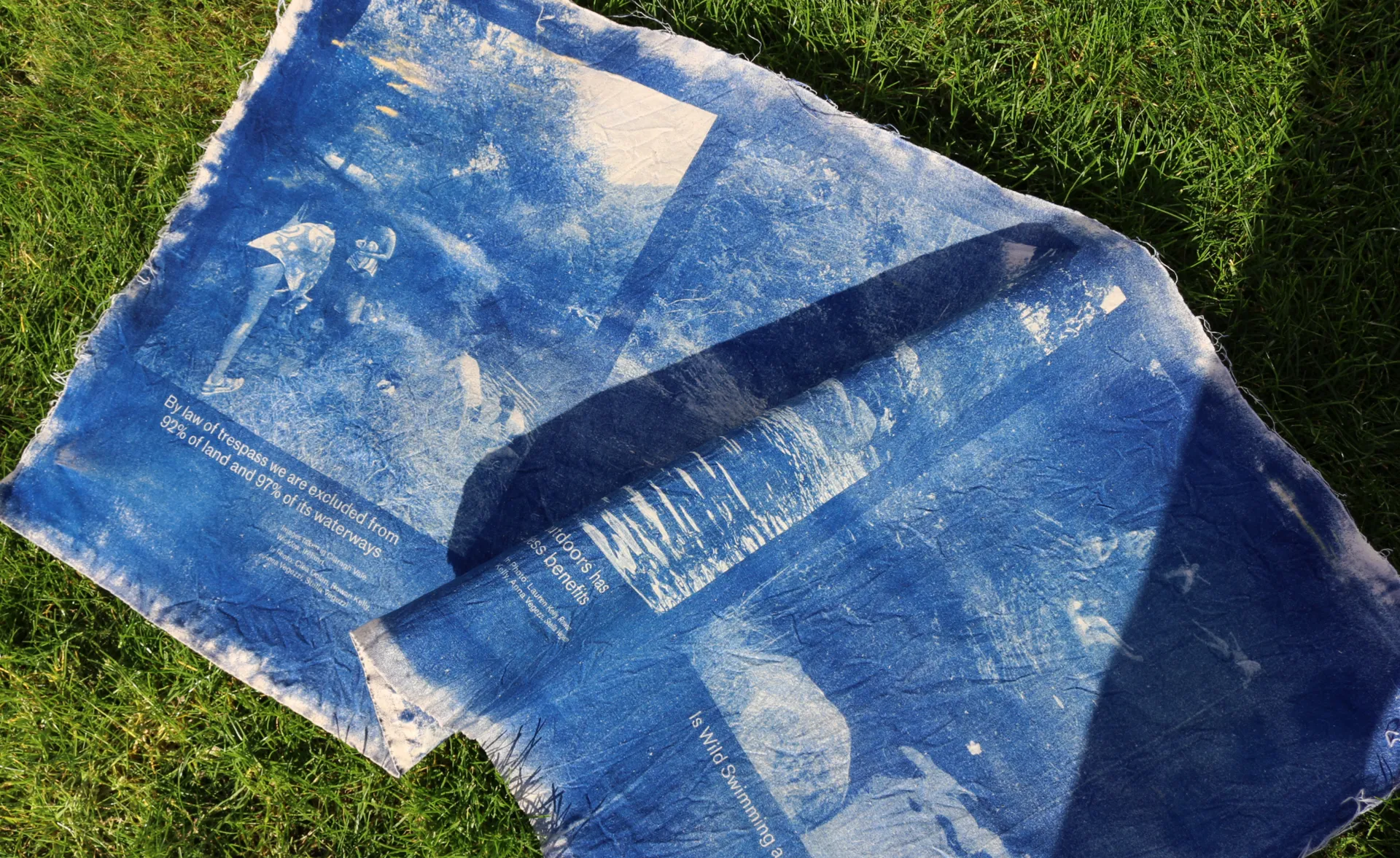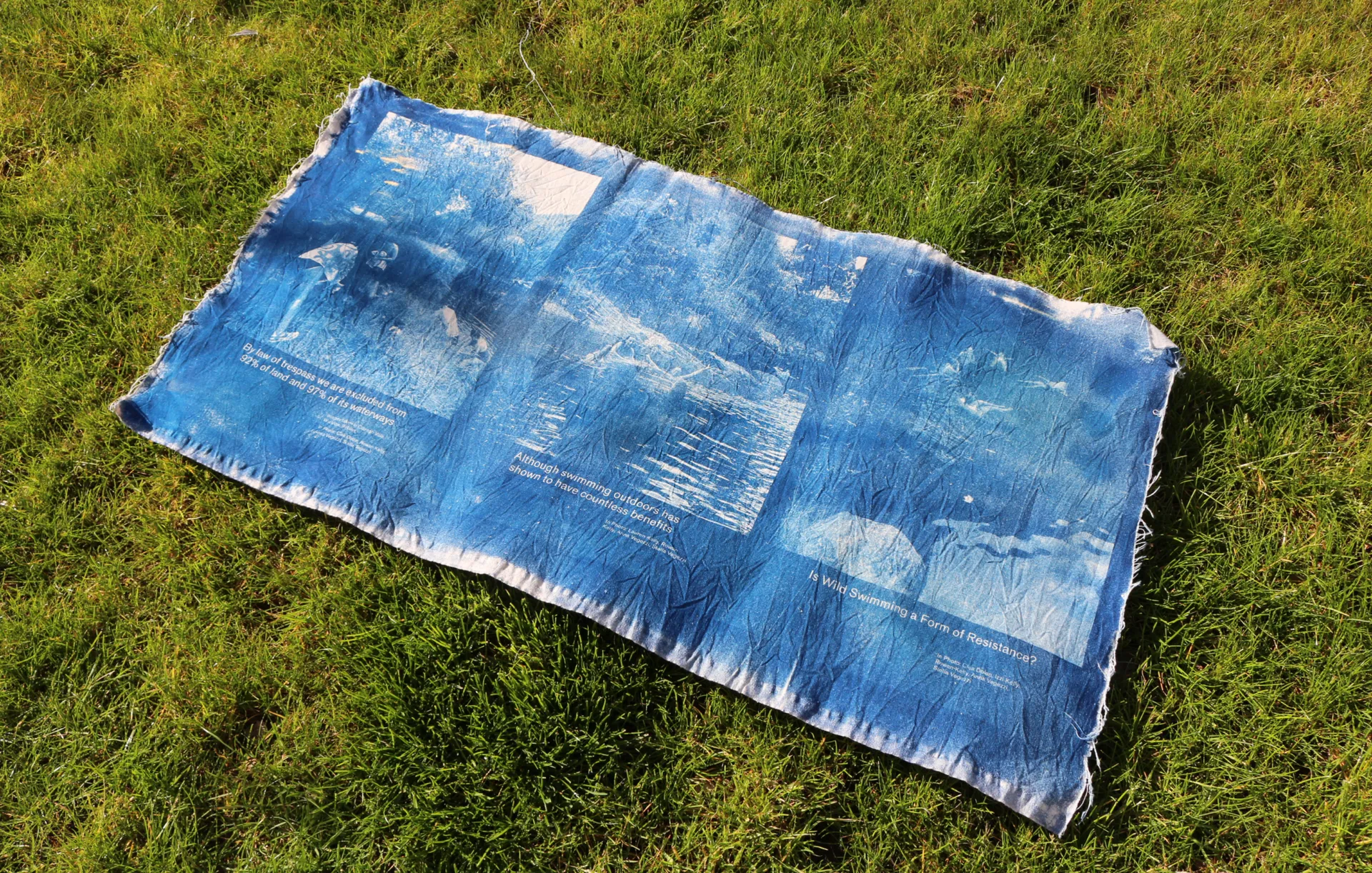 With this cyanotype I wanted capture the freedom and joy of swimming outside, while contrasting with statistics showing the reality of accessibility to waterways in the UK.