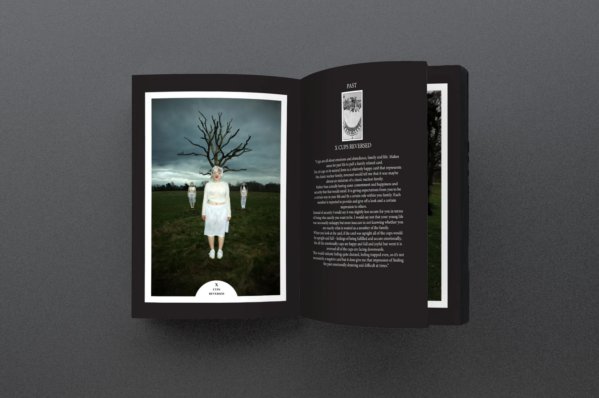 The Oracle explores the world of tarot cards, visually exploring the emotions conjured through the tarot readings I participated in. The project shows six theatrical responses to the six cards dealt to me during the outcome of these readings. Focusing my photography on the impact tarot cards have on my life, I reflect upon my experiences with six emotive self-portraits. The viewer is taken on a visual journey, guided by strong symbolism reflecting the guidance I received from my tarot reader. The series is an introspective study into my deep routed fears and anxieties, offering the viewer a glimpse inside my mind.