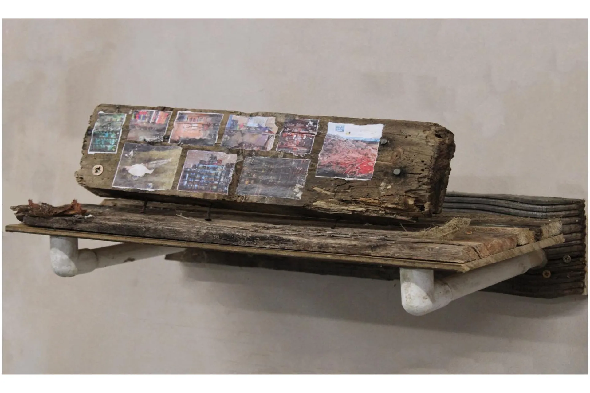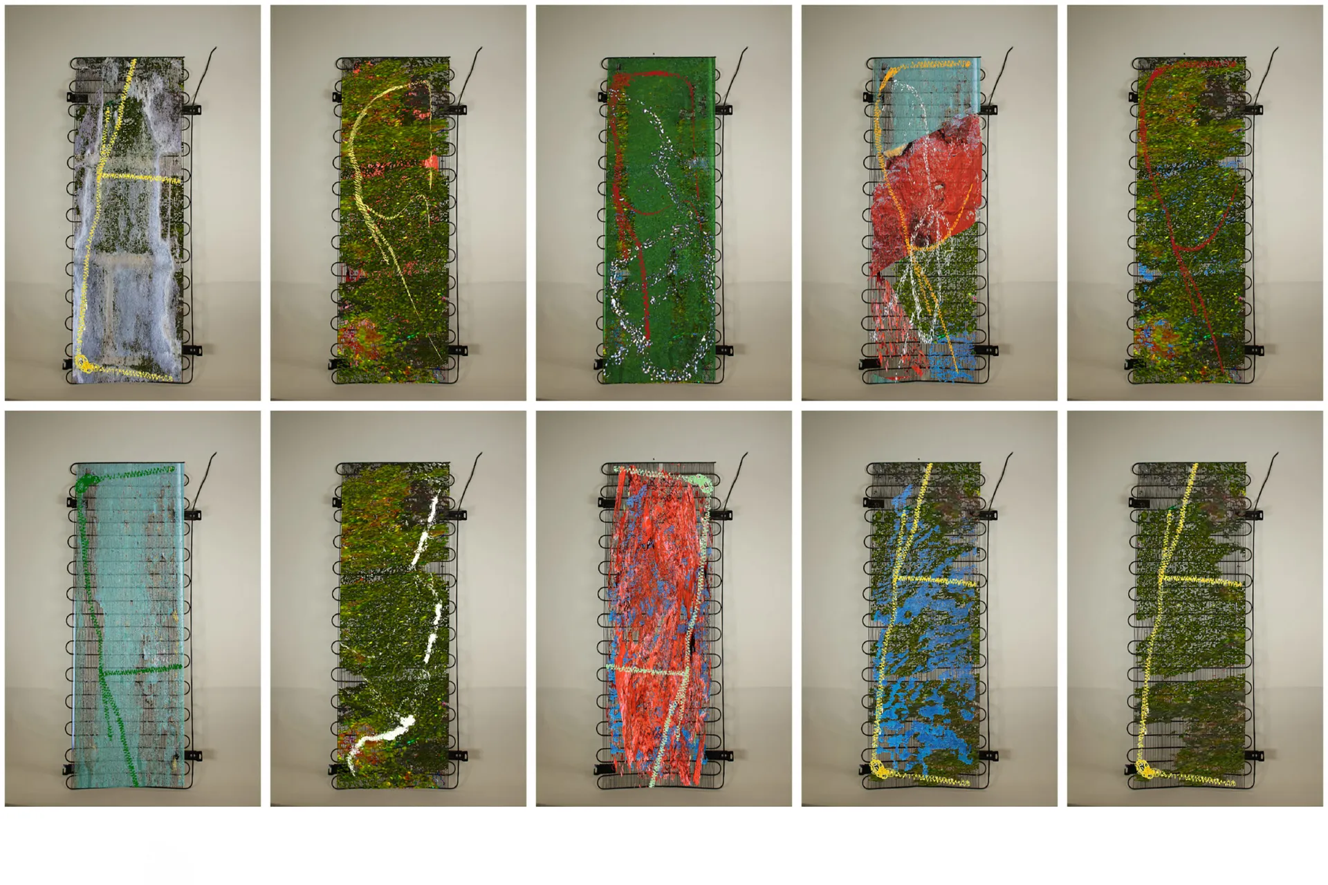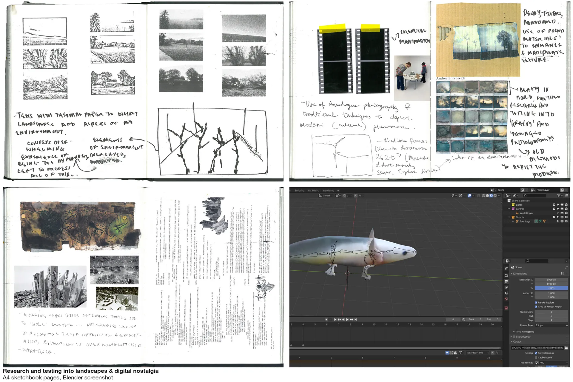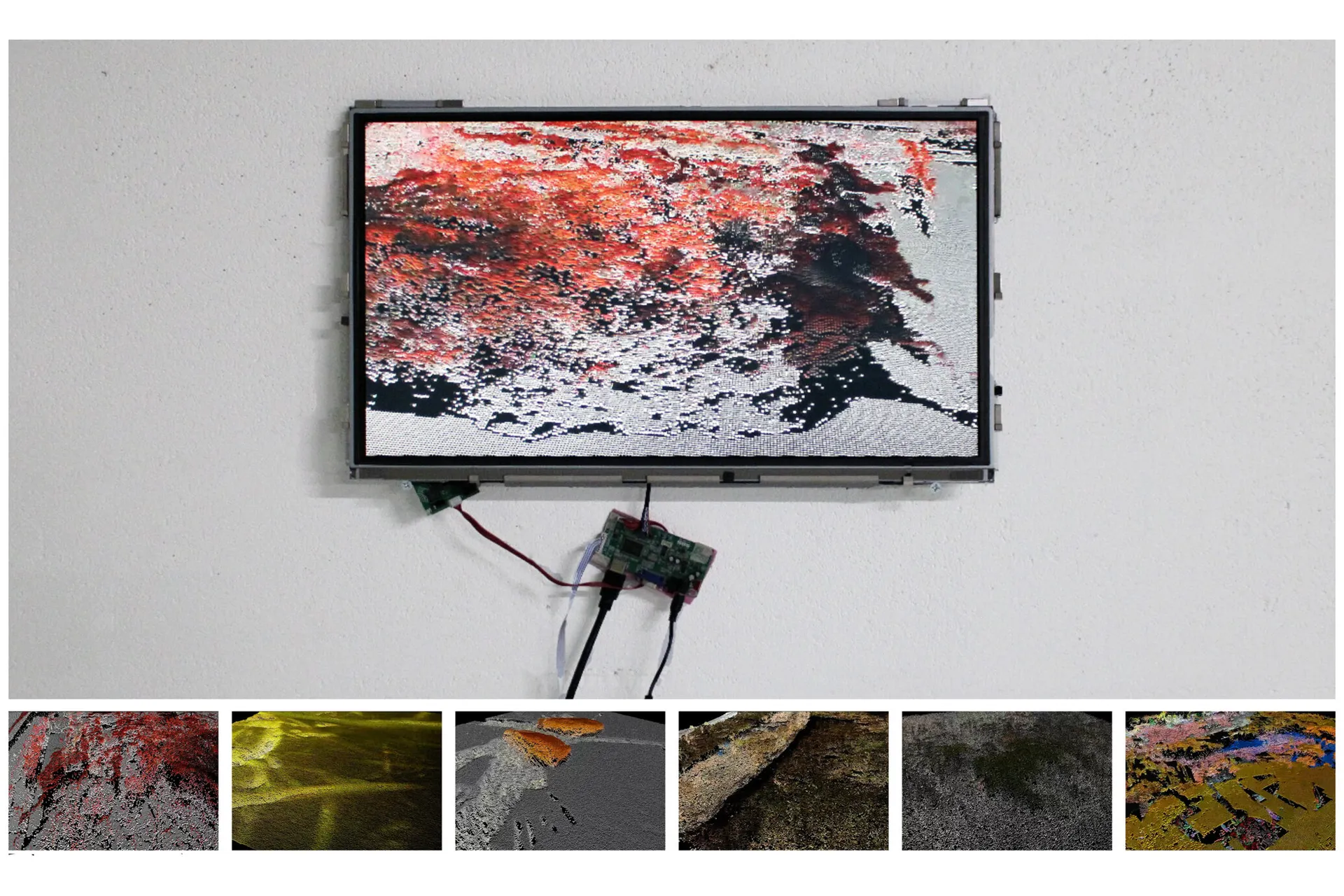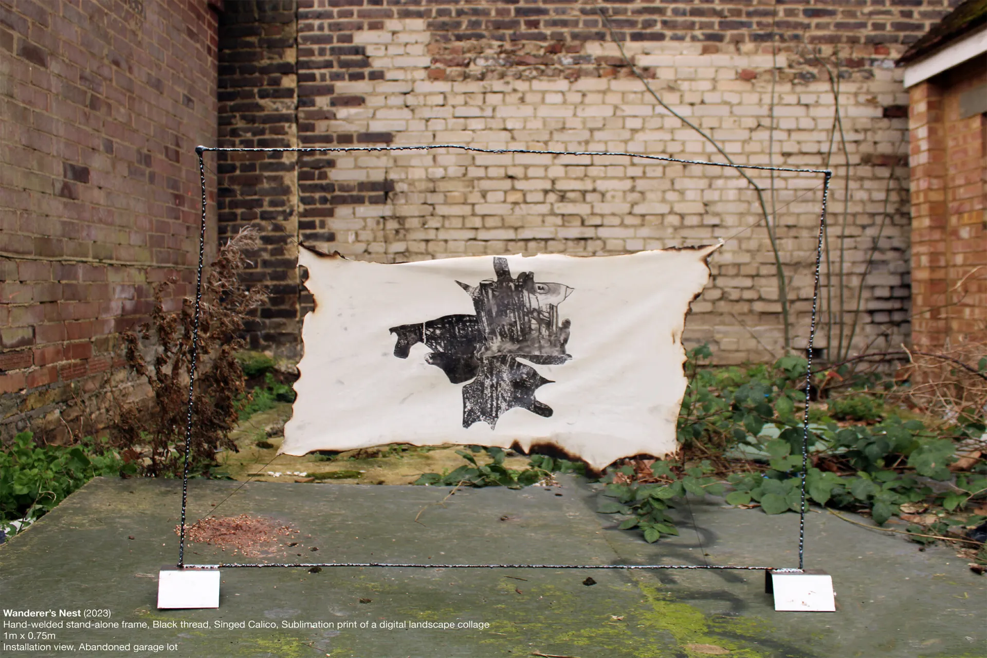 My creative process revolves around scavenging as well as recording and recreating my immediate environment, whether that be a physical or digital one. The concept of creating something new from what has been abandoned and is already there drives me to make garments from discarded fabrics, sculpture out of rubble from skips, disused phones and monitors as screens, found fusing and wiring for installation, dismantled cupboards as canvases etc. I am interested in the dichotomy between the indifferent strictness of technology and the freedom and randomness of nature, and how the two interact with each other. Recently I created a 90cm x 60cm laser engraving on MDF of the landscape of 2b2t’s ‘spawn region’, the centre of Minecraft’s oldest anarchy server. Installed onto two pieces of plywood and accompanied by a 10 minute looping soundscape made from layered and mixed found audio acquired during ethnographic research into alienation online. My work blurs the line between natural material exploration, and accelerationist hyper digital work, by combining the two I like to explore how they interact, and what the future holds for our love of tech, and our yearning to return to a more primitive, nature-centric way of living.