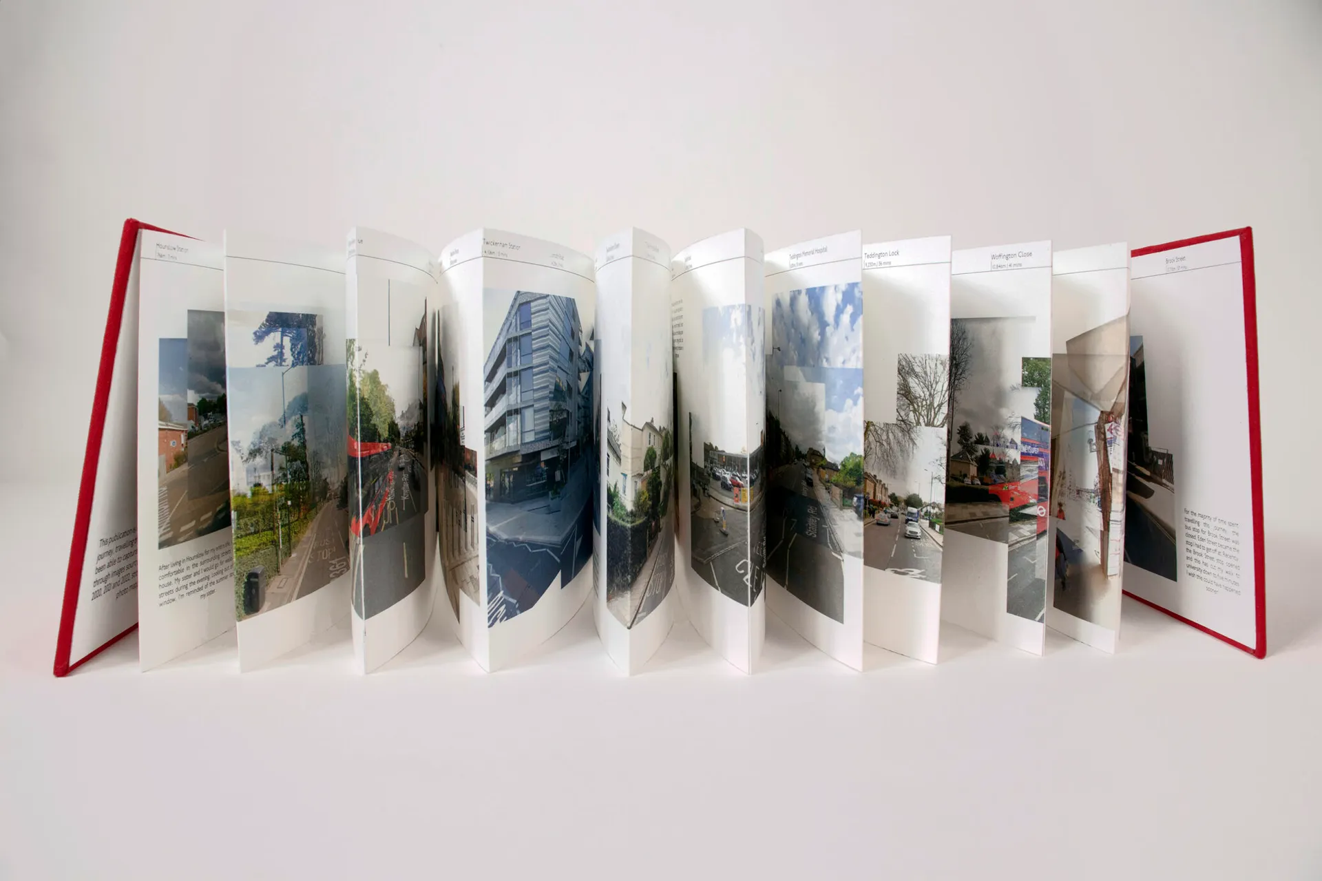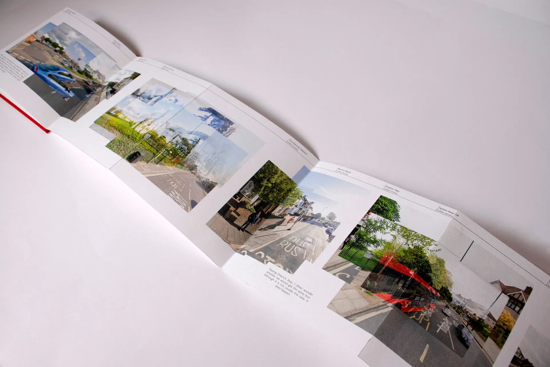 I used the same San serif typeface as Transport for London, called Johnson. Presented in a concertina book, to represent my long journey, I reduced the images from 42 stops to 16 of the most engaging images within a simple and clean layout.