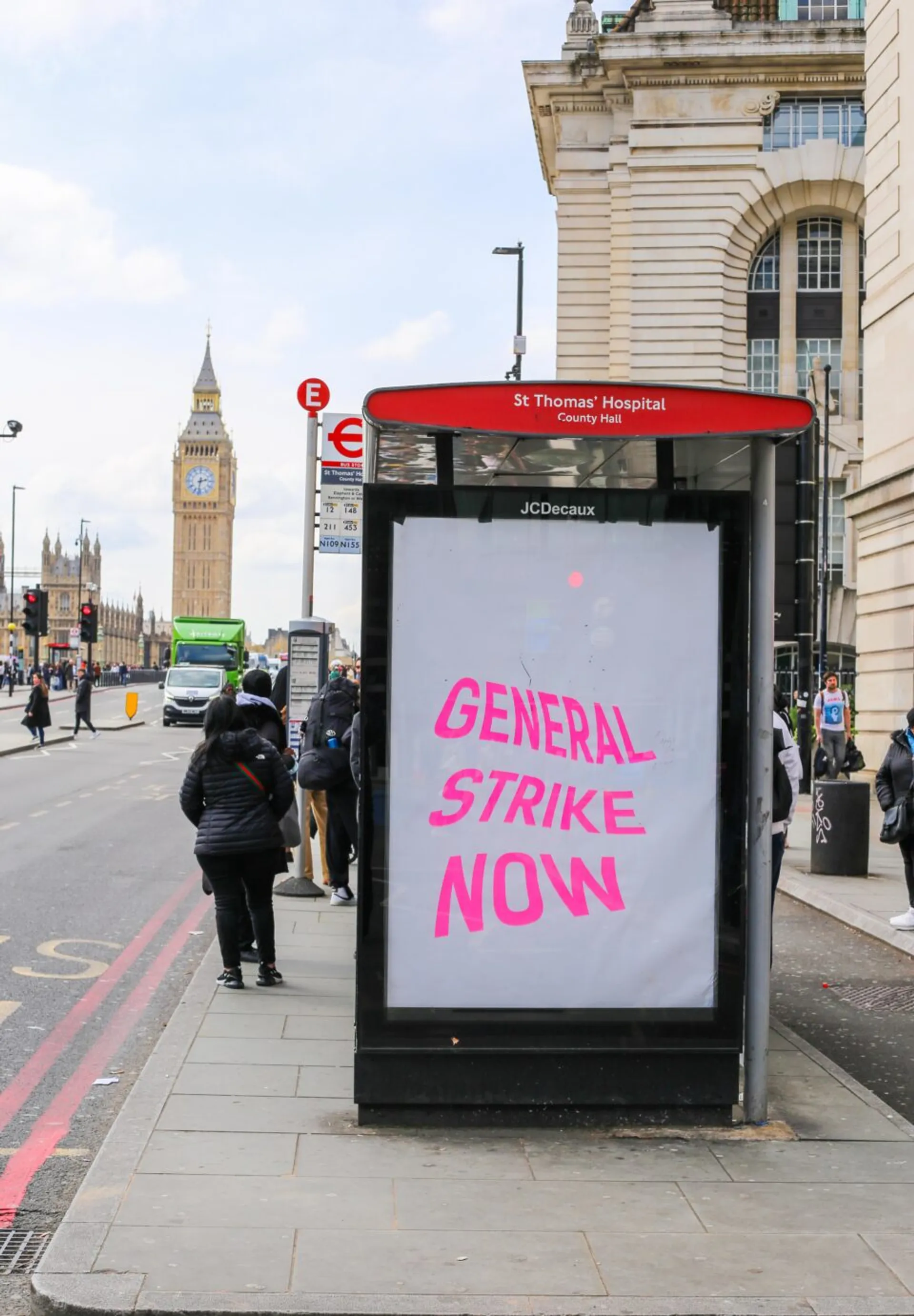 The project is intended to inspire others to subvert private ad space in public spaces, whilst highlighting the need for strikes & the legality of a general strike.