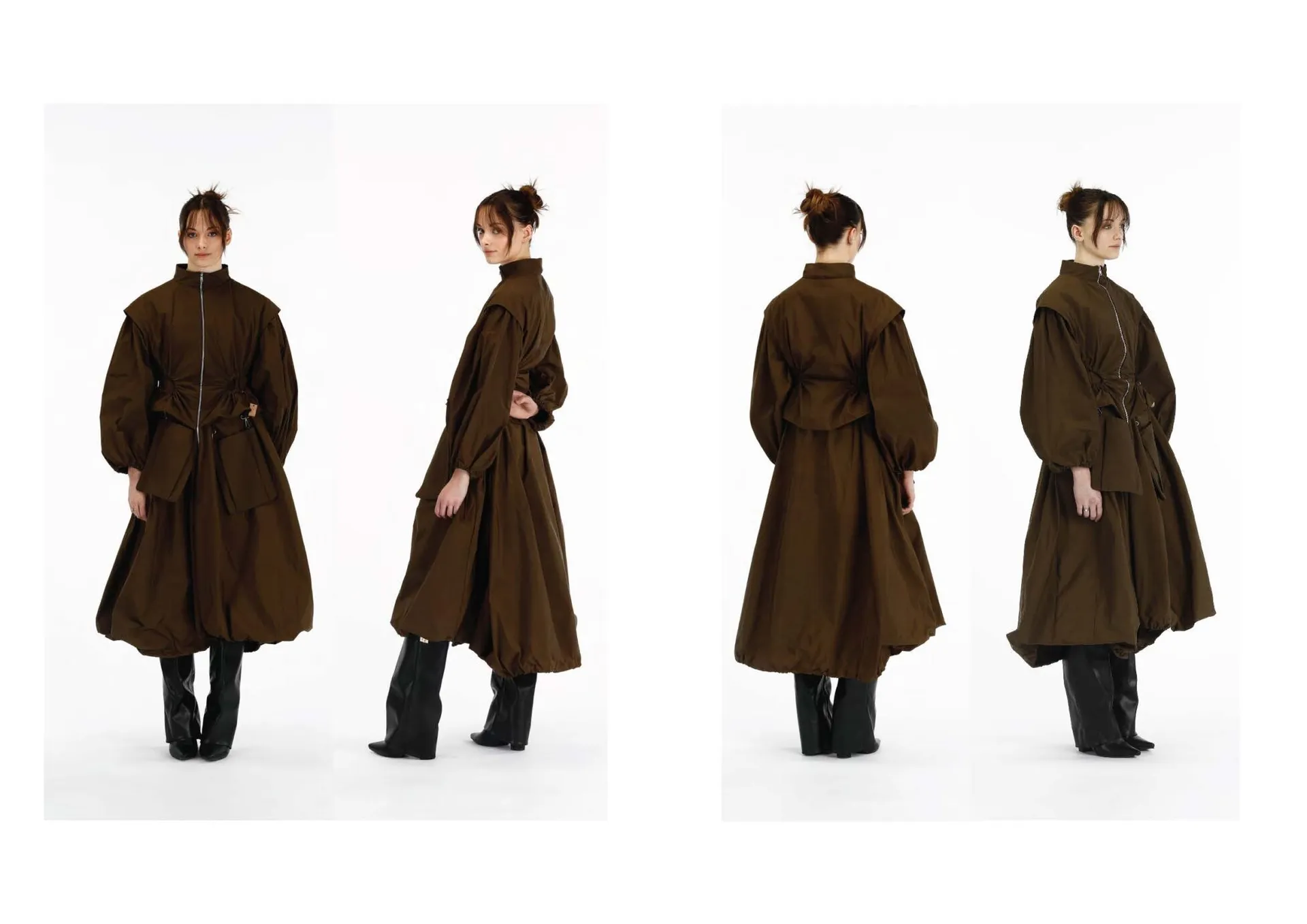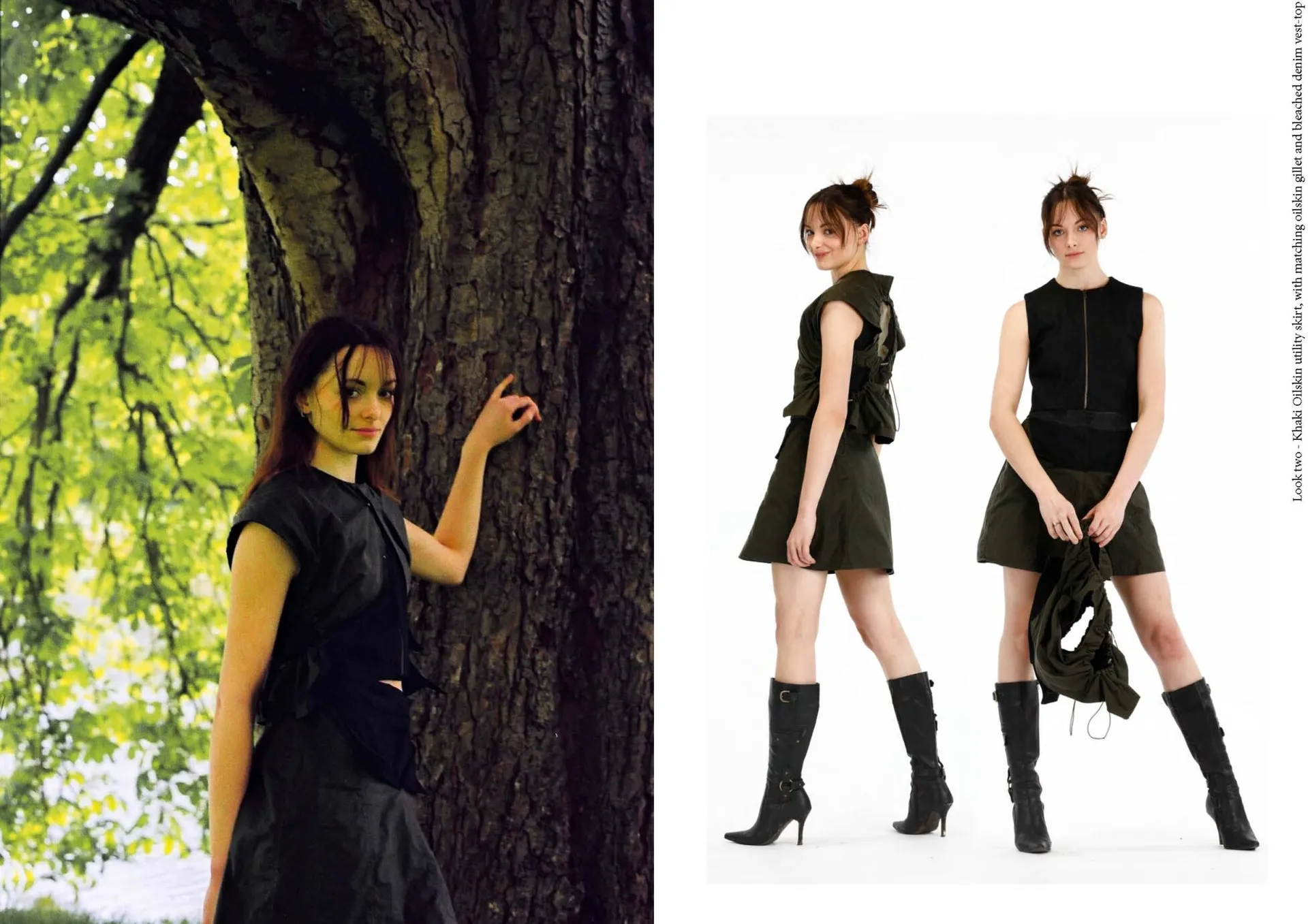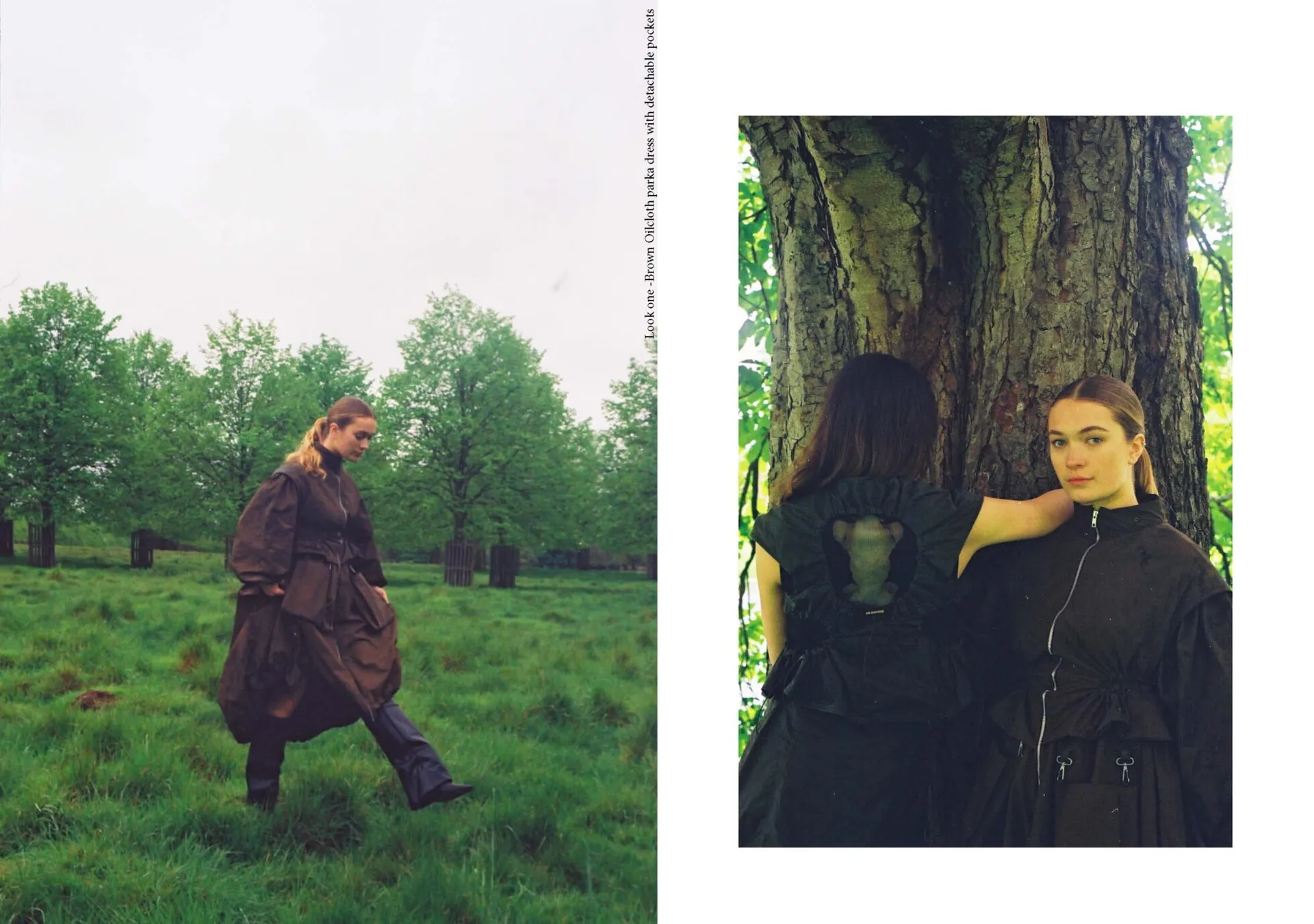 ‘Nature vs nurture’ was another concept that inspired my collection- identical twins share genetic makeup, which provides an opportunity to explore how individual traits and behaviours are influenced by both innate factors and external influences. This concept inspired my fabric choices, such as cotton oilskin, a fabric that builds texture and print the more it is manipulated. This also inspired my decision to paint some of my prints directly onto the garments.