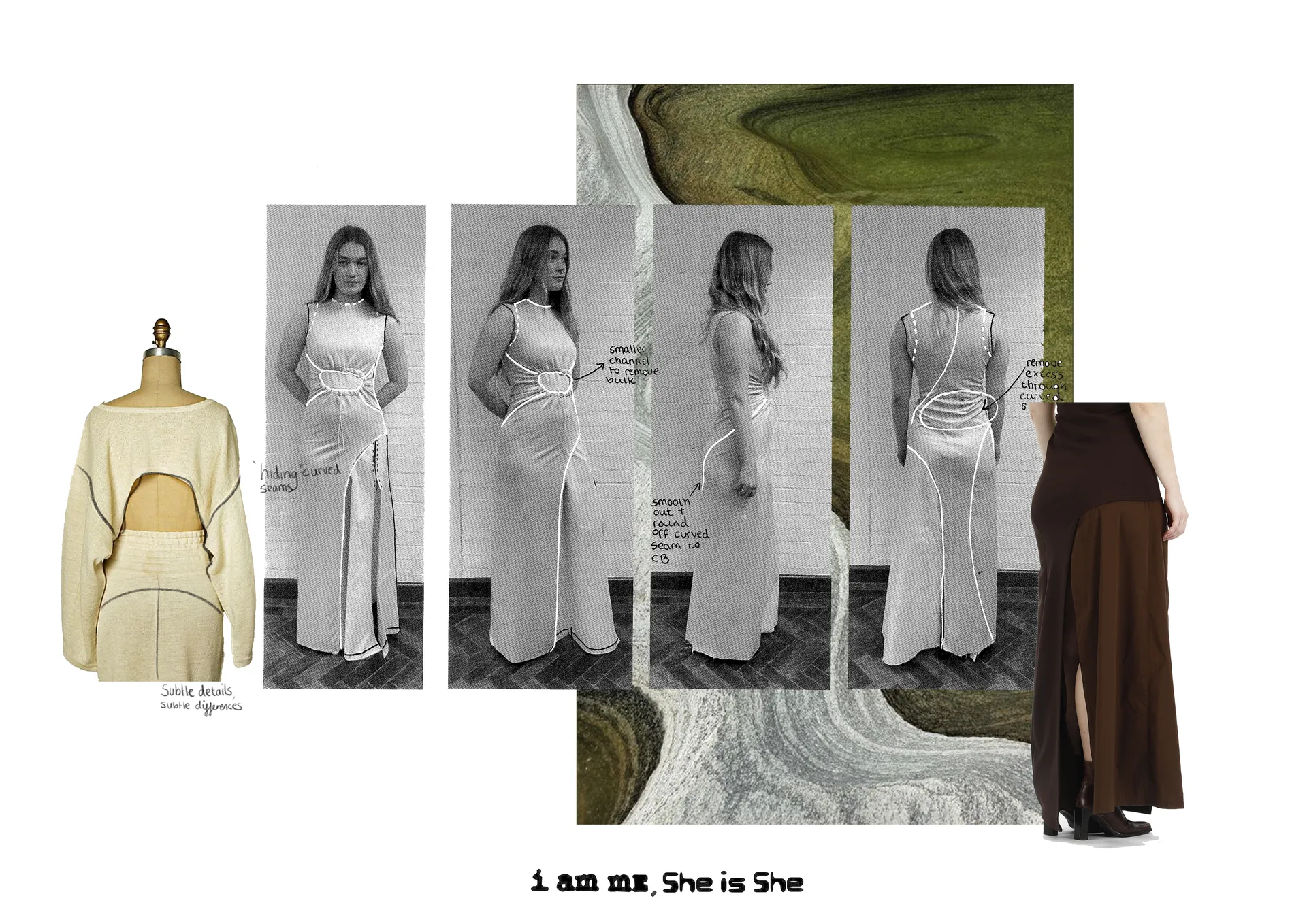 In conclusion, my graduate fashion collection is an artistic exploration of my identity as an identical twin- embracing the ambiguity and complexity inherent in both twinhood and the inkblots, my designs aim to capture the multiplicity of interpretations, perceptions, and connections that define my unique journey and identity as a twin.