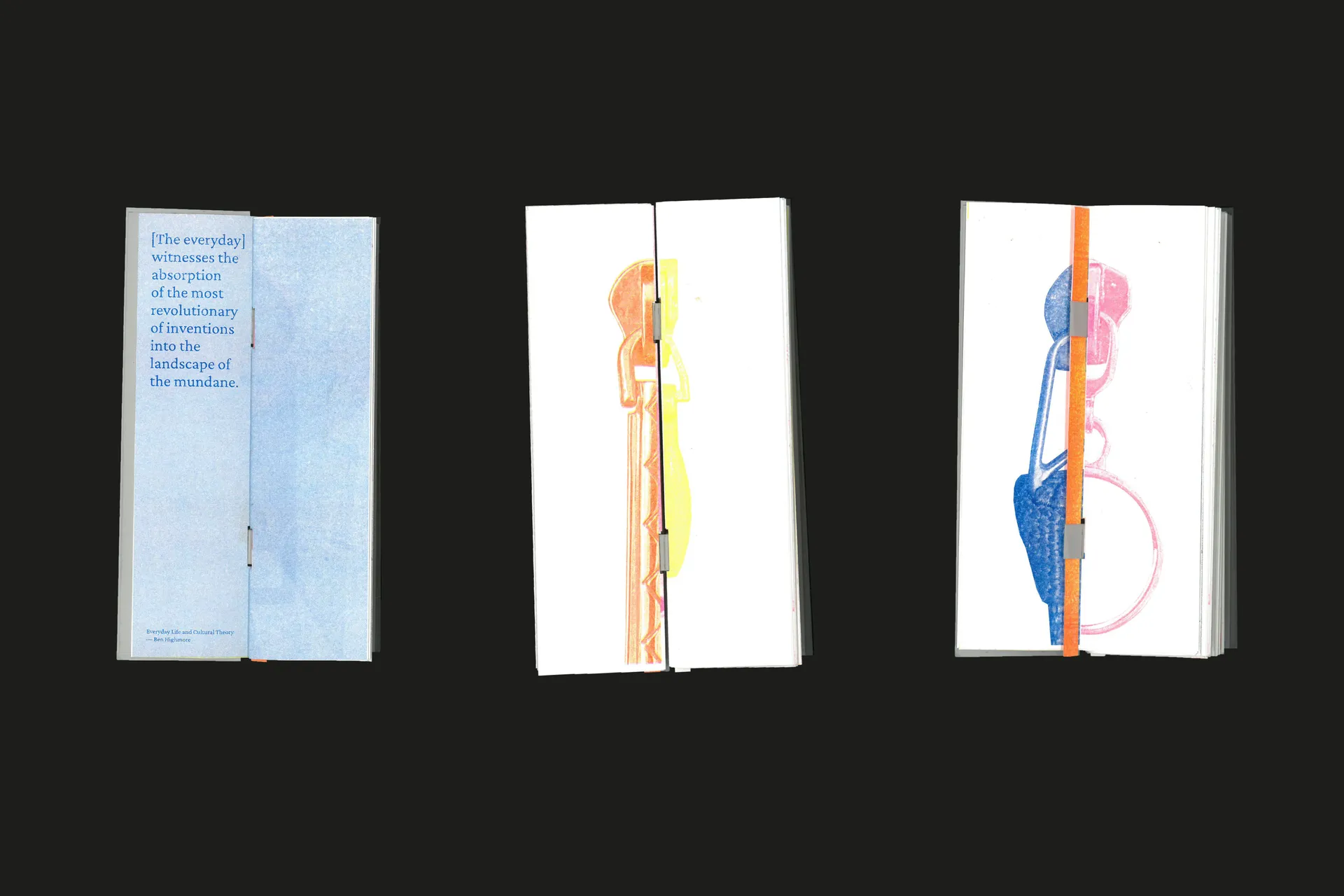 Hookless No.2 is a publication that is a celebration of the Zip, an unseen, functional item that we use everyday, but never notice. Named after the first ever iteration of the modern Zip, this publication aims to draw attention to this once brand-new remarkable invention. Bound entirely with paper and printed using soy-based inks this publication aims to promote a sustainable design practice.