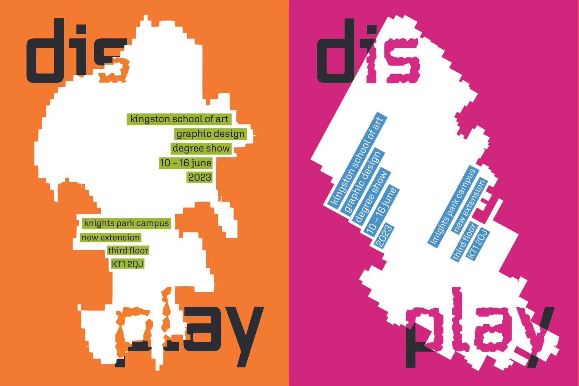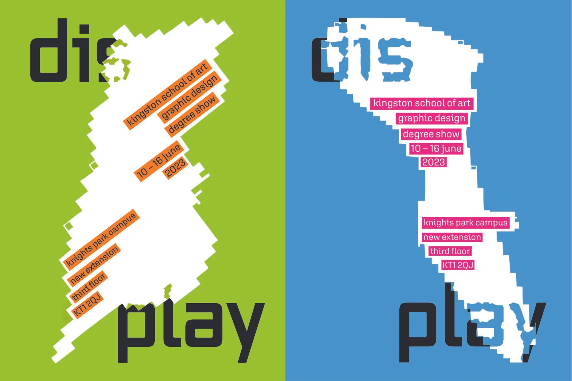 Display is a proposal visual identity for the BA Graphic Design Degree Show. It celebrates the progression of people, places and things over time through a display type that when in contact with a graphic element begins to evolve. Signifying how as students we entered the course as rigid learners and through time we have evolved into creative beings. The identity is celebratory and playful, representative of the course as well as us as designers with diverse practices and interests. Inspired by morphing, glitches and the digital the identity celebrates how a mistake, like a glitch, can be used as a visual tool to construct a unique way of thinking.