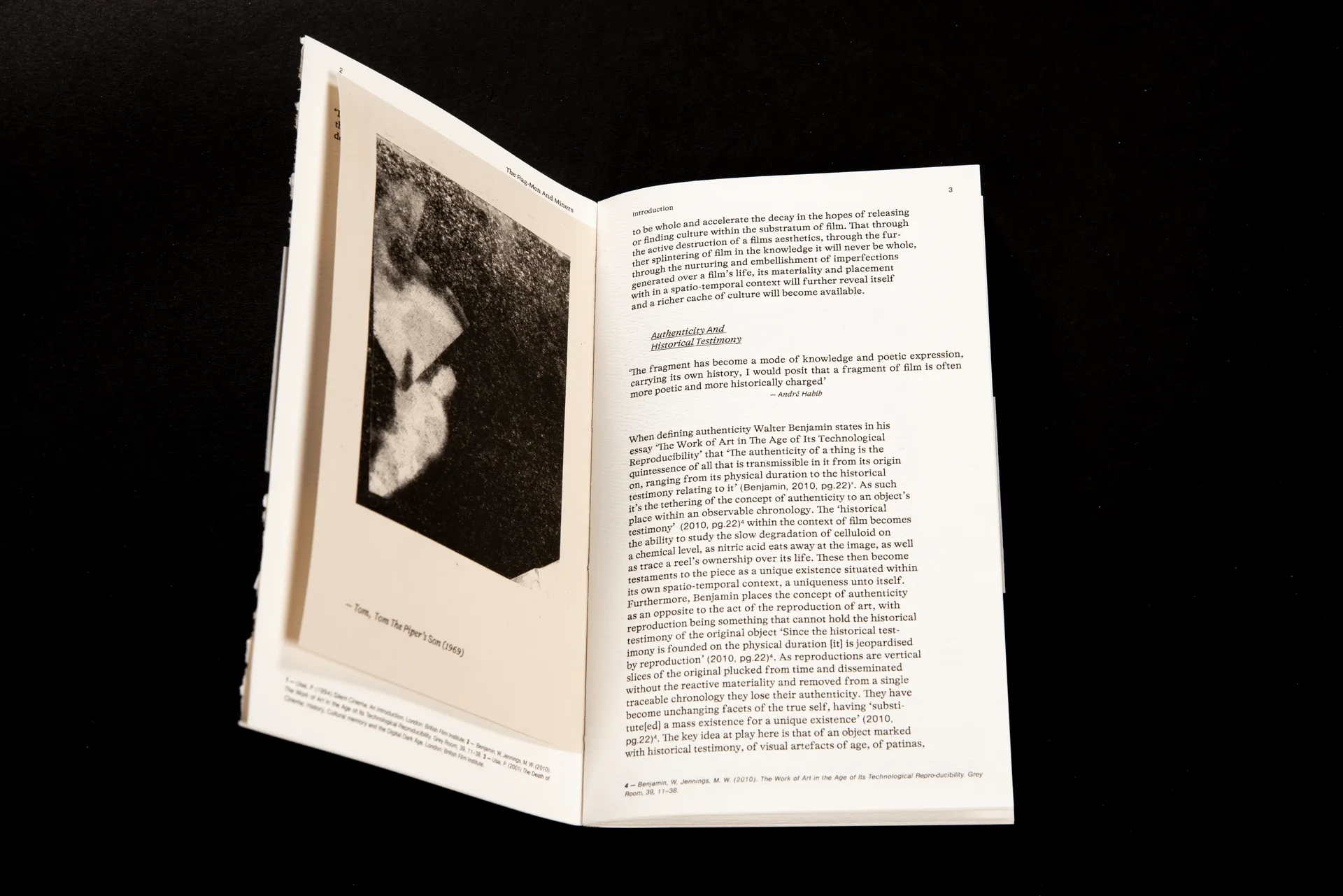 An essay on the modernist avant-garde in relation to film archiving. How do we find life in a ruinous film eaten by acid? With riso-ed images and cyanotype prints this essay both remarks upon and engages in the destructive remediation of film as an act of cultural excavation.