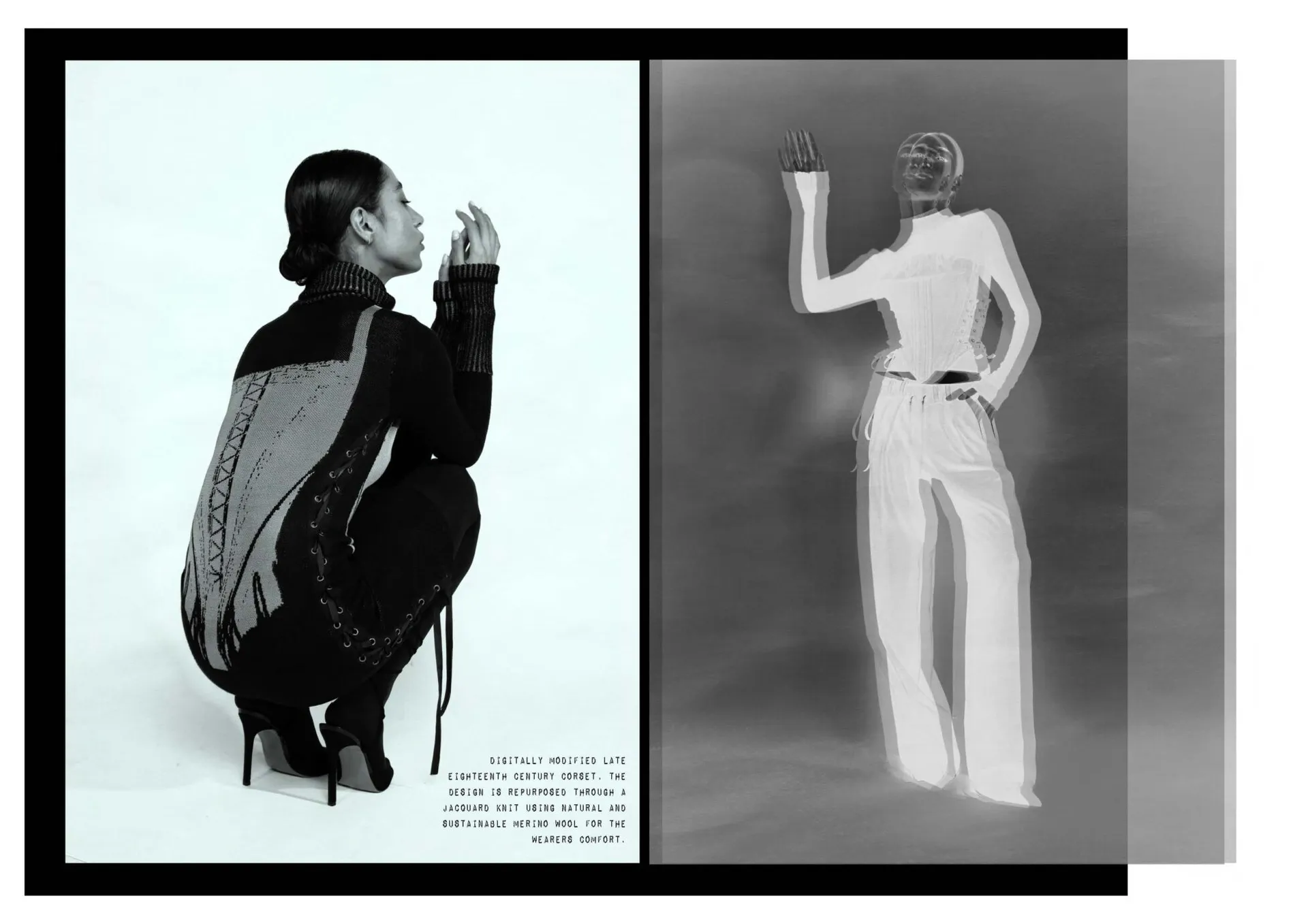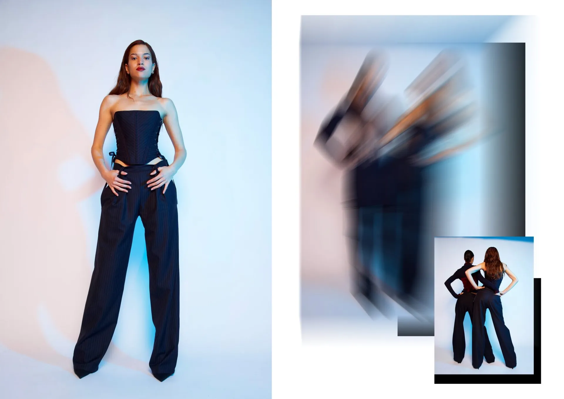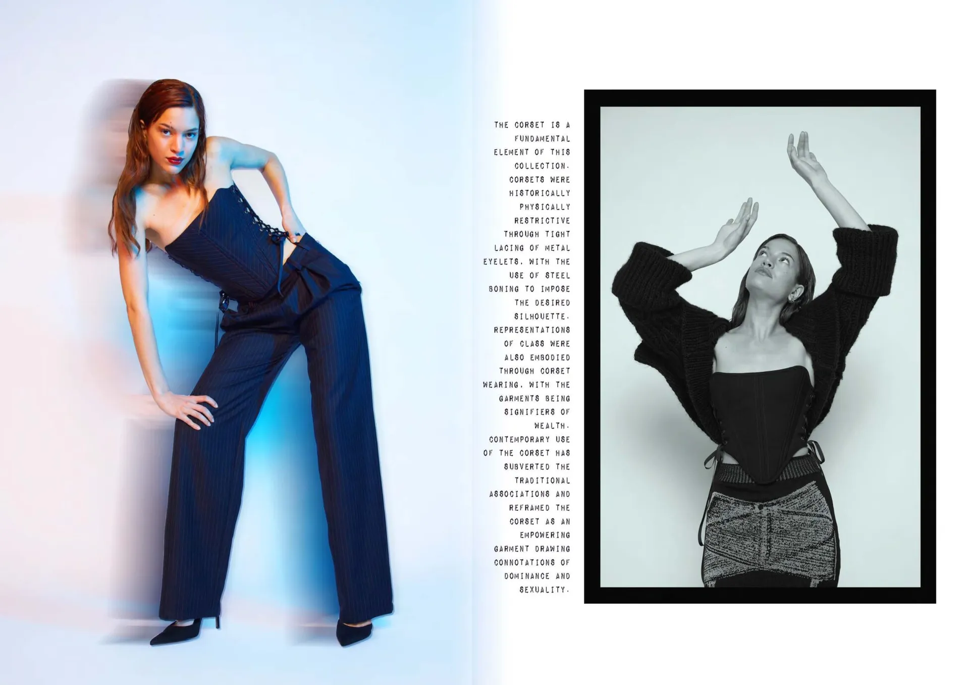 The collection titled “Not For Your Viewing Pleasure” examines societies historical use of clothing as a means to restrict women, the evolution of power dressing, and dress as a visual language.