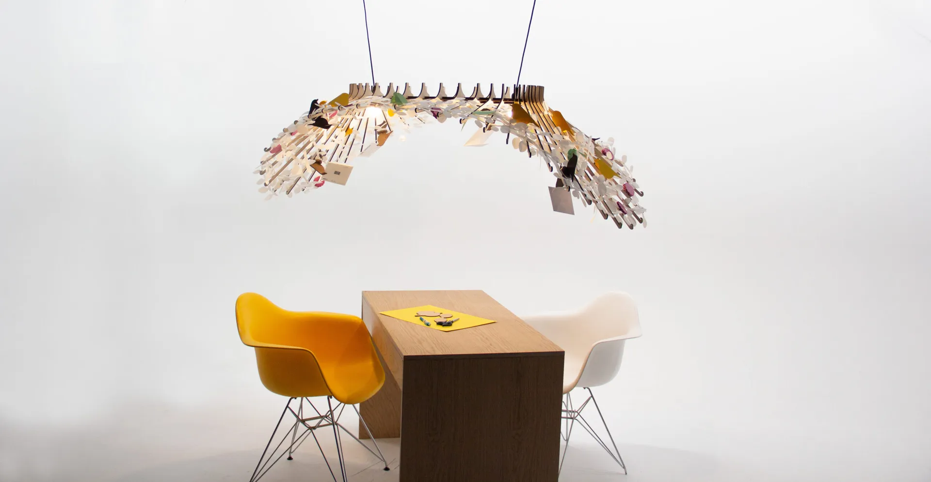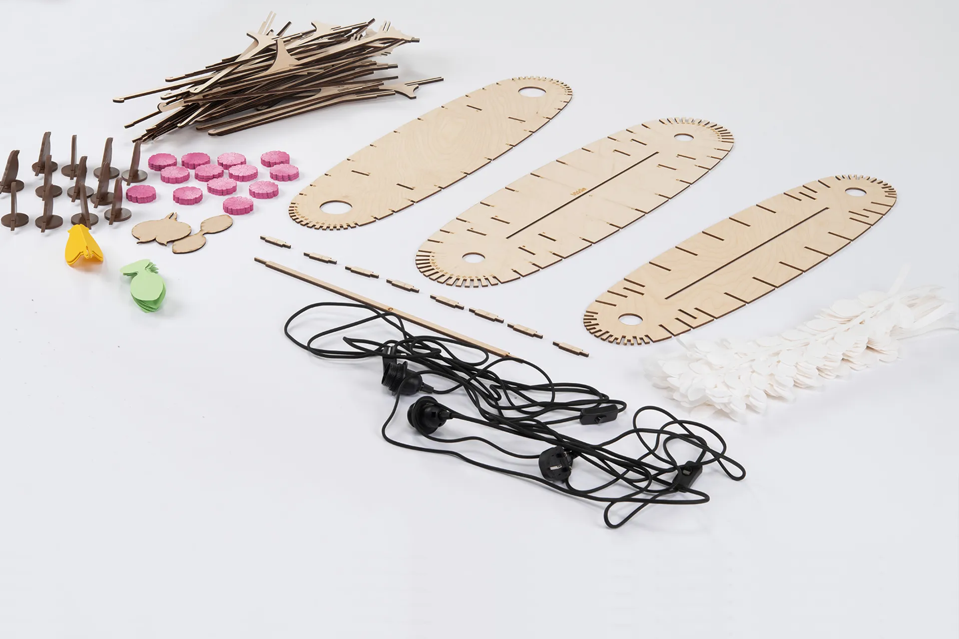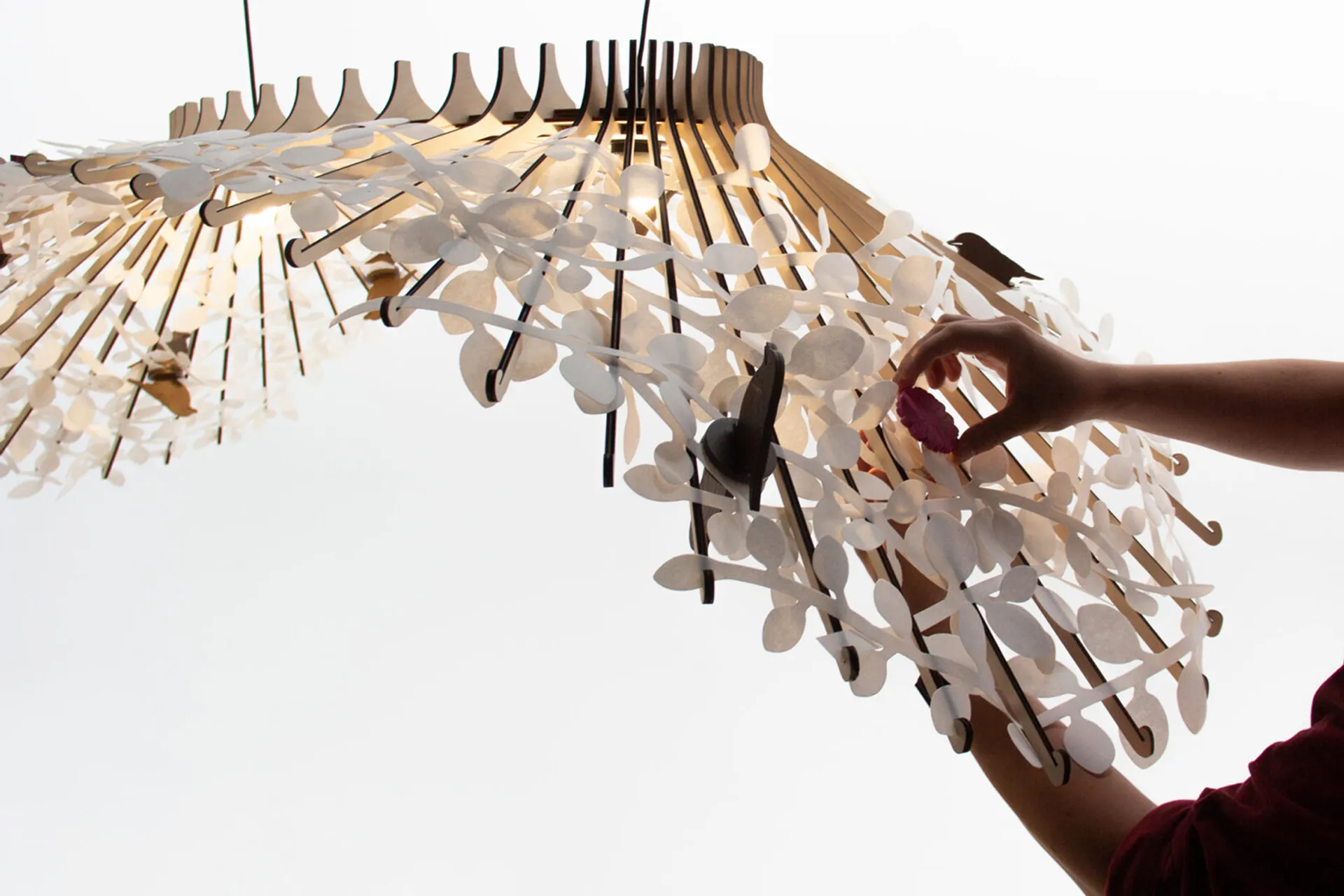 The DIY design creates new opportunities to interact, develop, and enhance intimacy. Paper flowers, birds and cards – for sharing memories and appreciation can be arranged on the glue-less wooden structure.