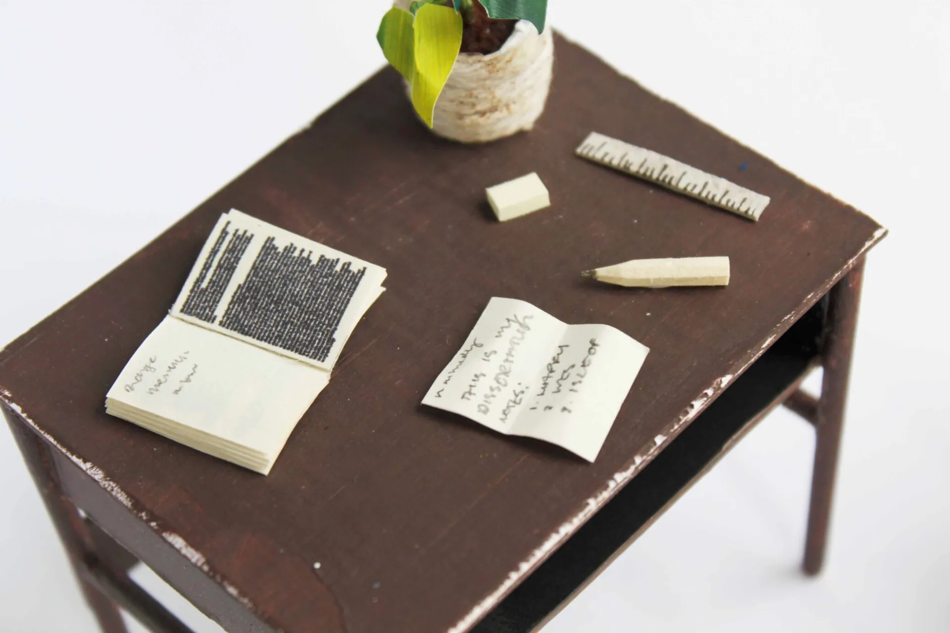 ‘Dissertation Diorama’ works as an informant to a person’s workspace whilst on their journey to finishing their degree. The scene is created entirely by hand.