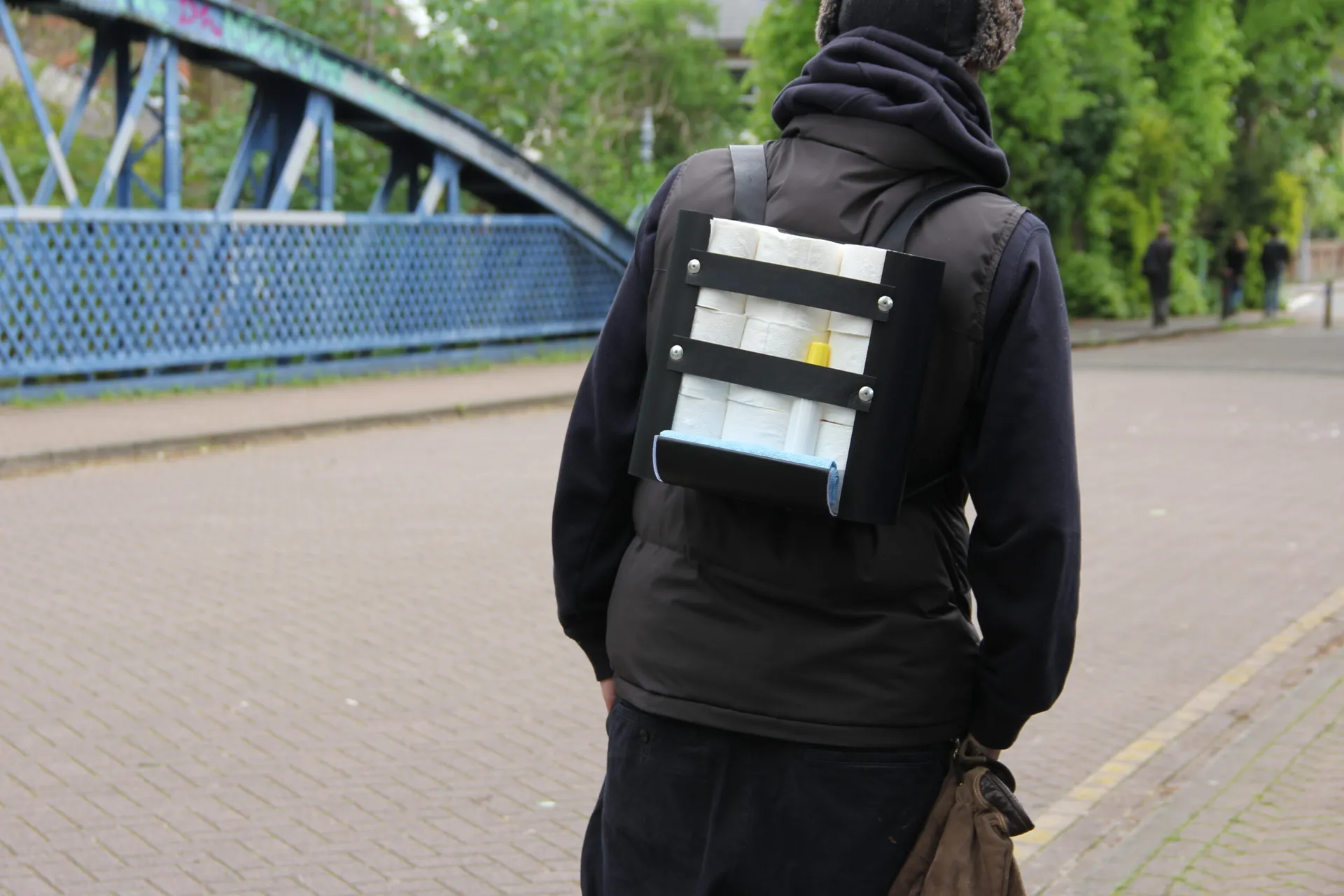 My Final Major Project is called “UN-LOCAL: SPACE, SEA AND SLEEPING-BAGS”. Looking at Mankind’s obsession with the unknown and undiscovered World through 3D design. For my final product I have created a backpack for loo-roll, hankies and spray storage, nicknamed “the portapooper001”. This creation is designed to encourage adventure and exploration in a 2023 world by taking a homely and comforting item such as loo-roll and making it a useful ‘tool’ that can be carried with the person on their everyday trips. By doing this it might make the wearer more confident to travel further due to the possession of their own loo-roll. Embarrassing, awkward, and unwanted situations such as blowing their nose or drying their hands suddenly become less stressful. This idea promotes exploration in someone’s life by adding something new to their everyday routine. These could be as follows: