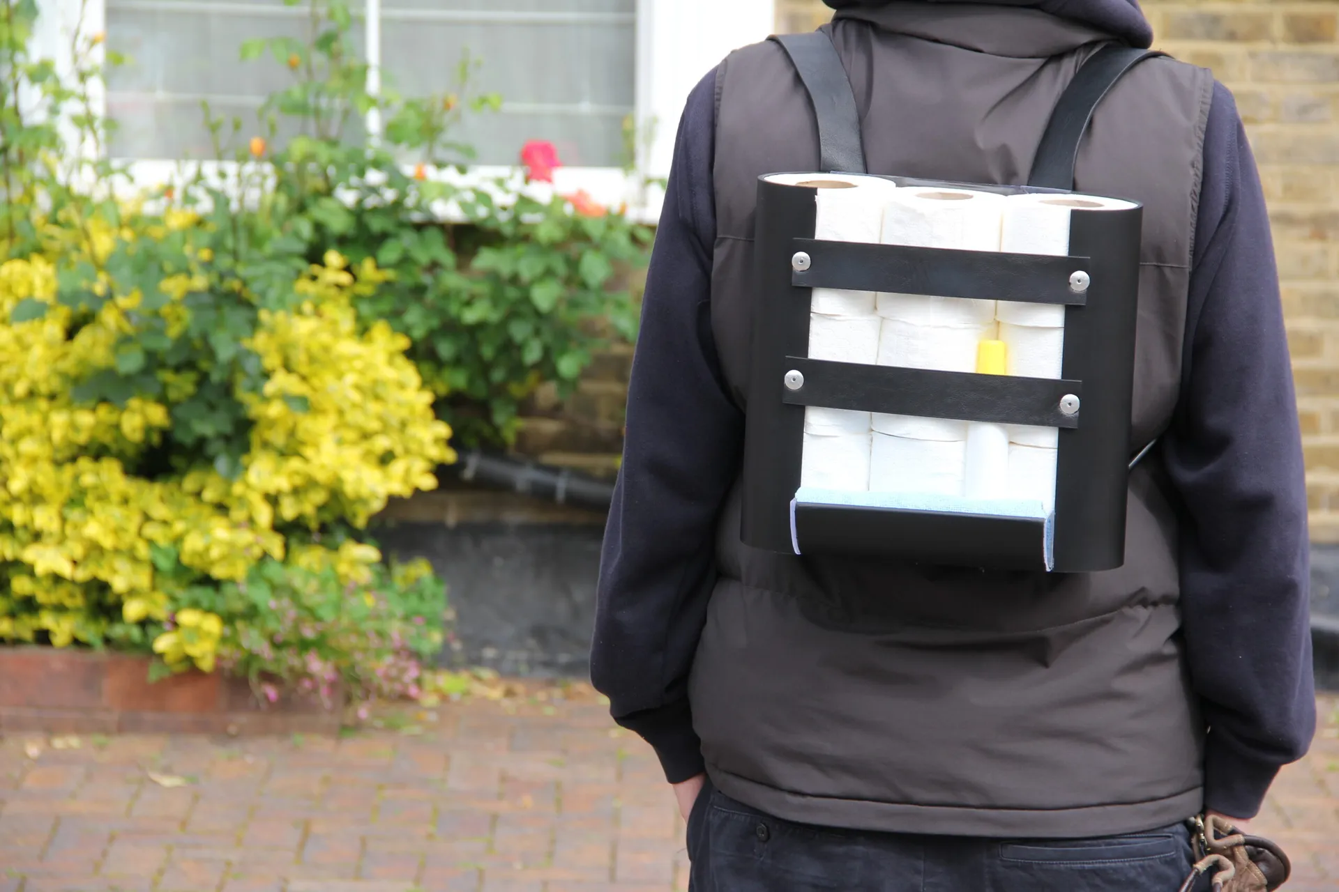 - Loading up a 9-pack of toilet roll into their bag
