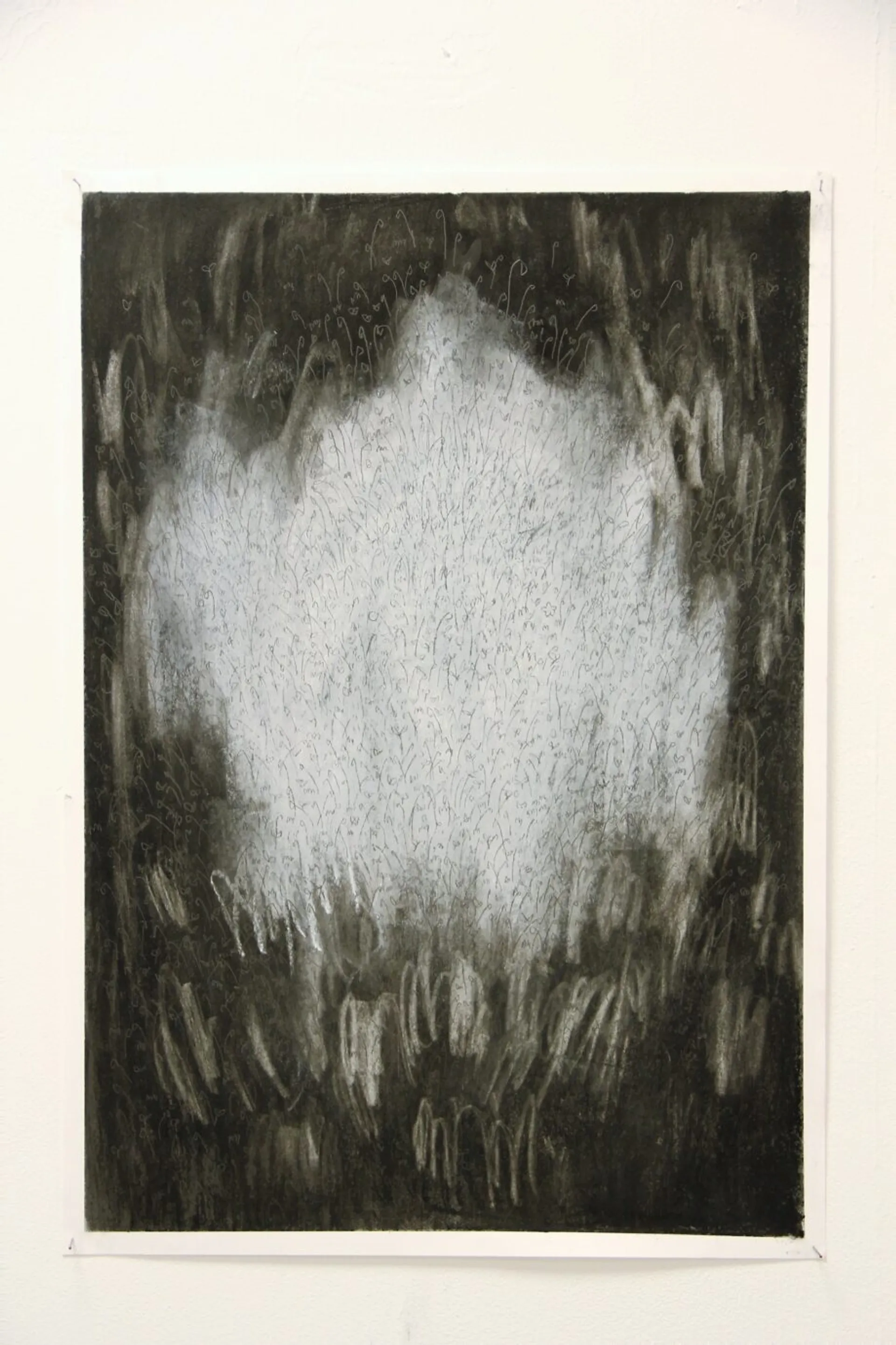 Primarily focussing on mark making and textural enquiry, my practice centres around the crossing of boundaries, using cute imagery to convey my relationship to nature and the paranormal. Whether pencil or brush, I consider my practice an extension from drawing, exploding, erupting, scrabbling, unwinding from the hand. I aim to create an experience for the viewer that provokes both warm feelings and the chilling nature of the unknown and solitude, provoking an uncanny ethereality that I find fascinating. By using cuteness, the boundaries between attraction and repulsion are further overlapped due to the contrary nature of the adorable, having deep links to unsettling themes despite what meets the eye. Using pearls as if they are growing out of the very paintings themselves, I strive to convey that the beauty of nature, cuteness, and anything that may be classed as ‘paranormal’ all share a sublimity, both awe and disgust, to both push and pull my audience.
