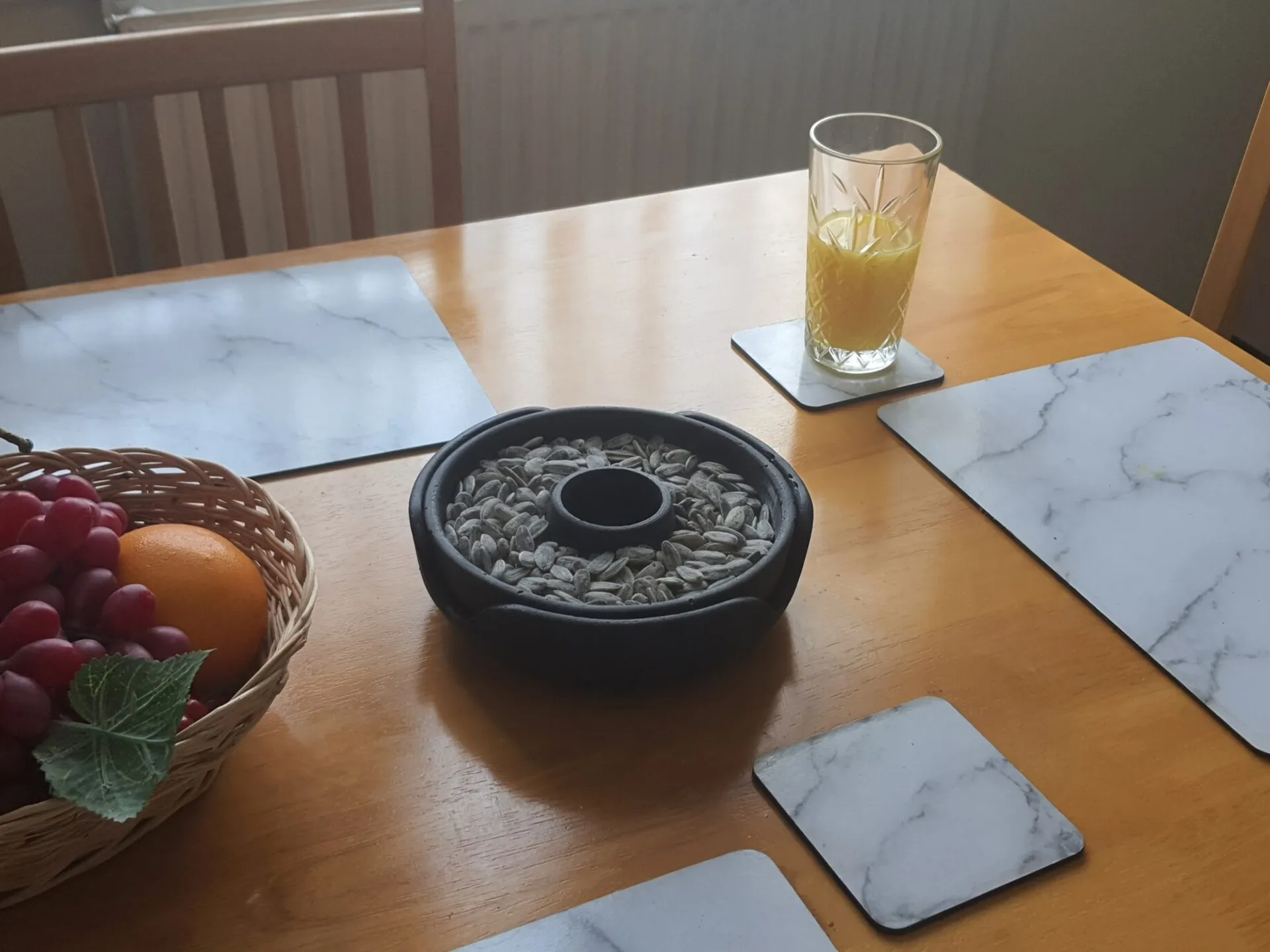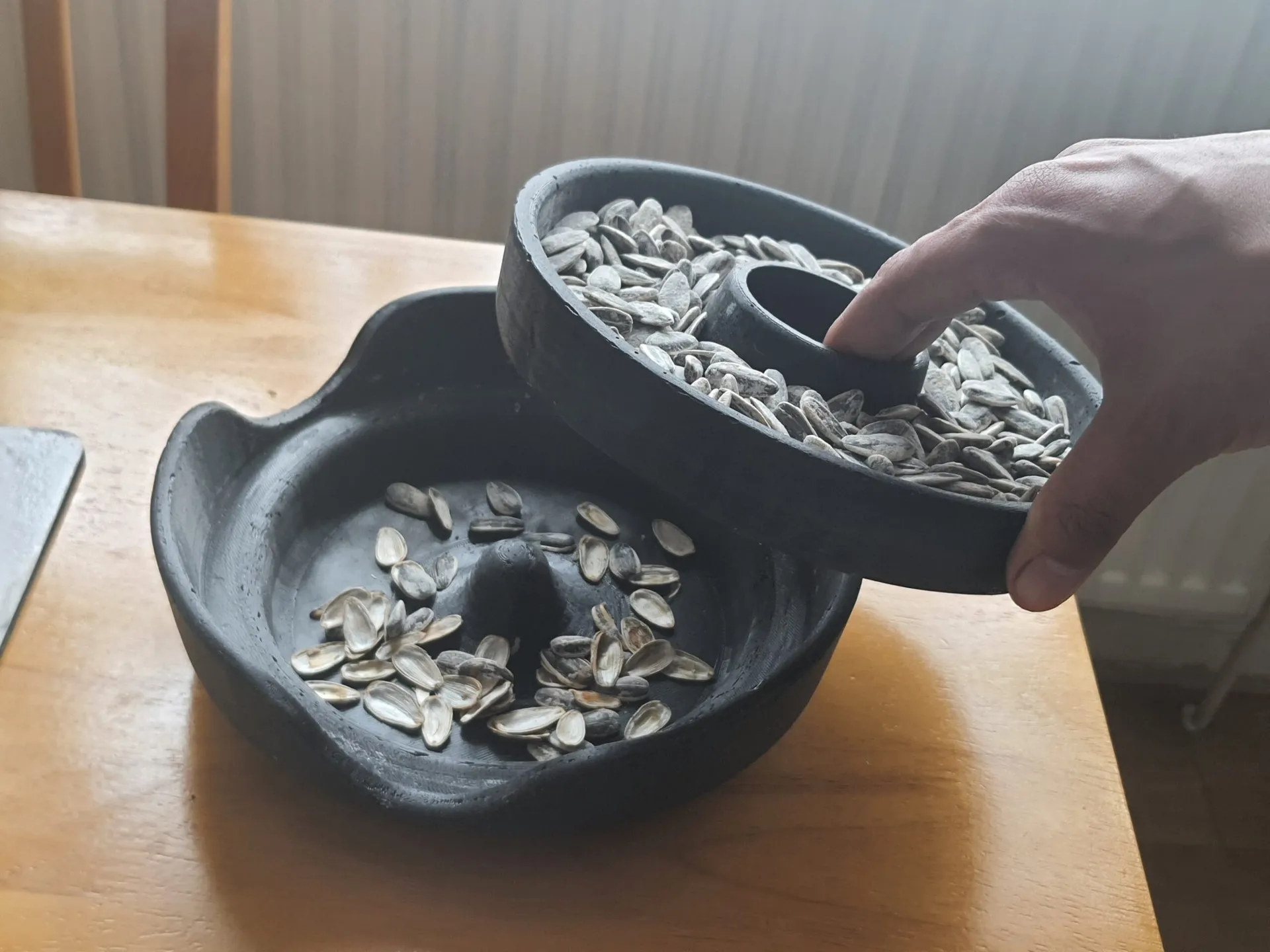 The ‘sun-bowl’ project was a research experiment into bio materials and the various ways in which natural waste in particular citrus fruit skins can be used as an alternative to plastic to be more environmentally conscious in the manufacturing processes and materials we use to produce dish/kitchen ware. I found blackened lime skins (sun dried) sourced from pubs to be the best choice. These skins if not used would have simply been thrown away in which over 15 million tons of limes are produced every year with the skins being wasted until now. Using this material, I went through the process of designing a piece of dishware to hold a common Spanish sunflower seed snack known as ‘pipas’ which my family eat to showcase the practicality and versatility of the material in production and use with the goal of alerting people to the potential that plastic alternatives have to make everyday manufacturing more sustainable.
