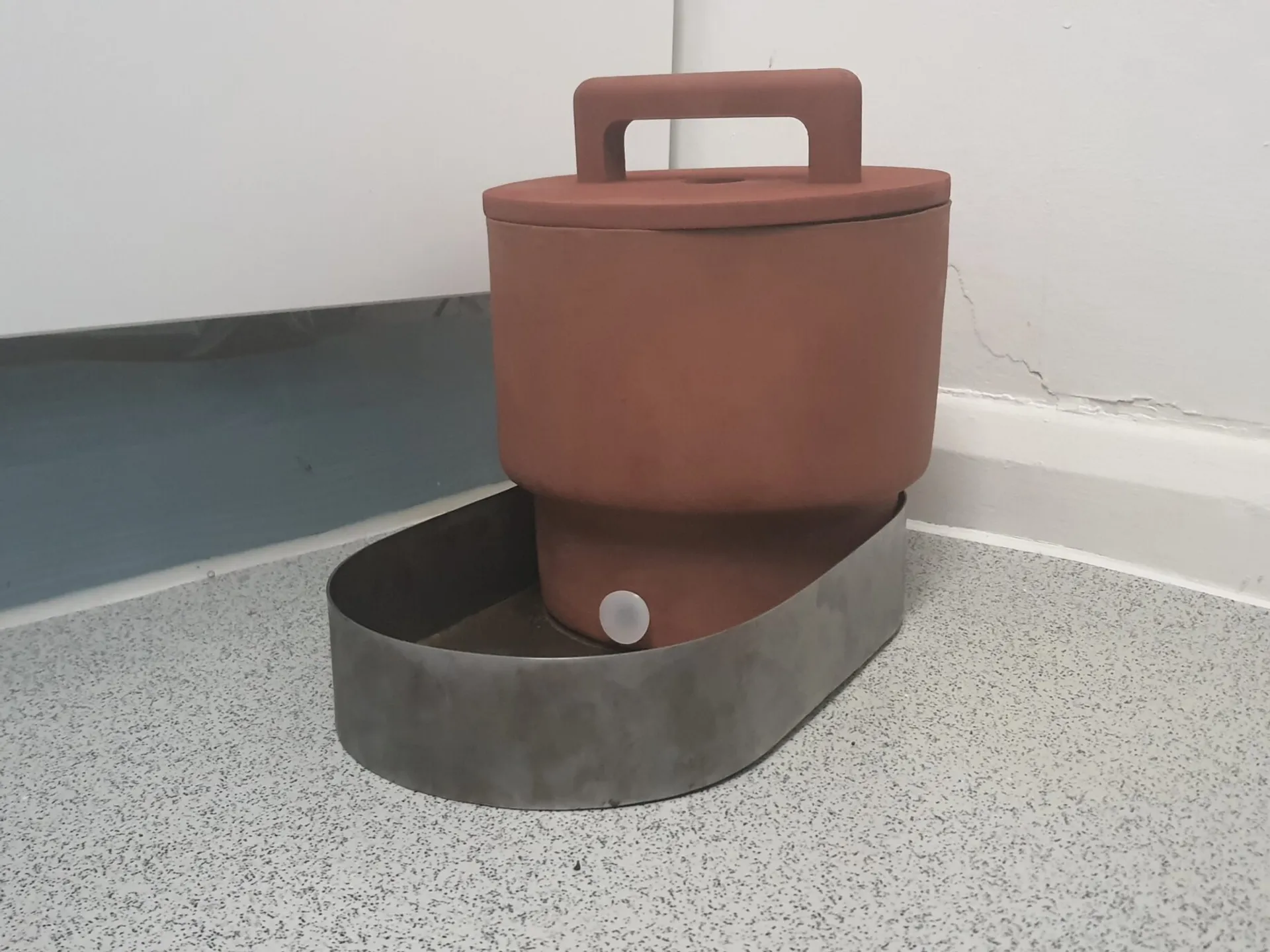 ‘TANK’ is a solution to the problem of pets overheating due to lack of cool clean water in which on average in the UK, pets are left at home alone for up to 6 hours. Using terracotta for its water cooling properties, it will keep your pets water cool indefinitely with cool water being the number solution to keeping your pet cool in the summer. Terracotta also has alkaline properties which helps with digestion for your pet. The product itself isn’t light, especially when full of water, which prevents your pet from throwing it around. The water tray is made of stainless steel due to its easy to clean, anti-bacterial and durable properties and minimizes splashing due to its height and the depth the water is released. Water flow is self managed so once you fill it up you can leave on its own as it will give your pet a steady water supply until it runs out. All these features without the use of electricity to make it run, making it an energy efficient and environmentally friendly alternative to other water feeders for pets without sacrificing quality.