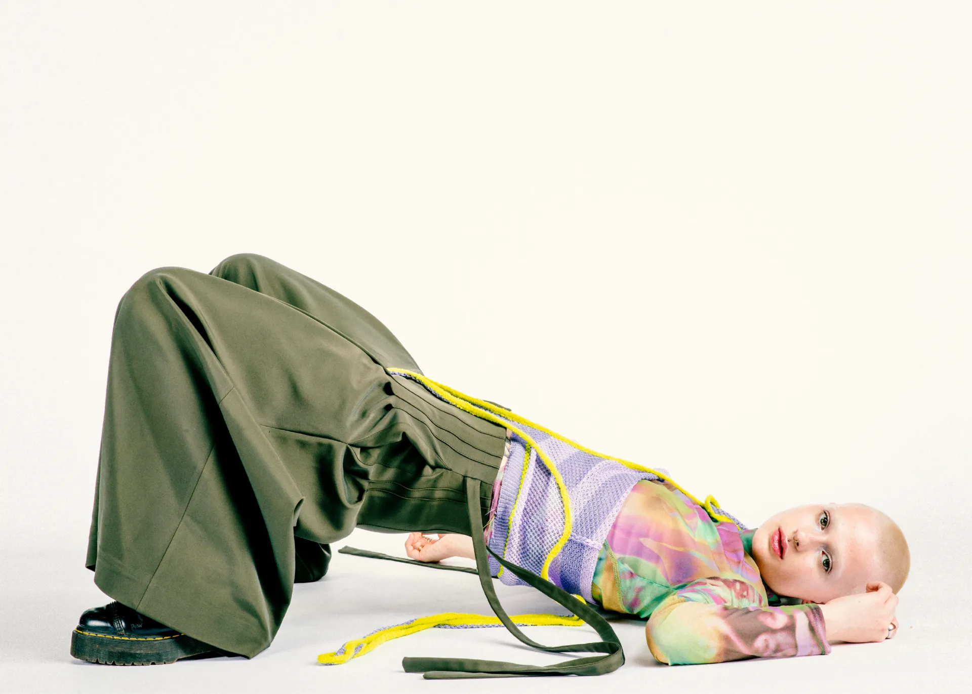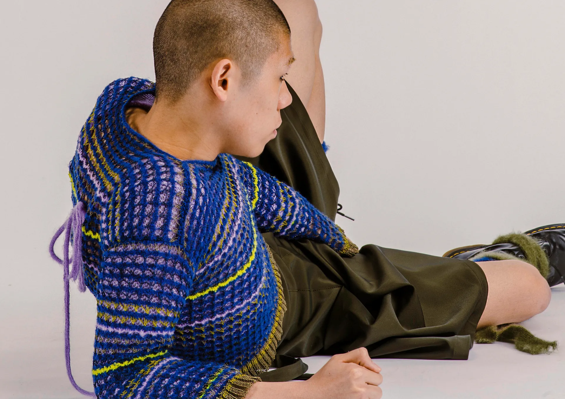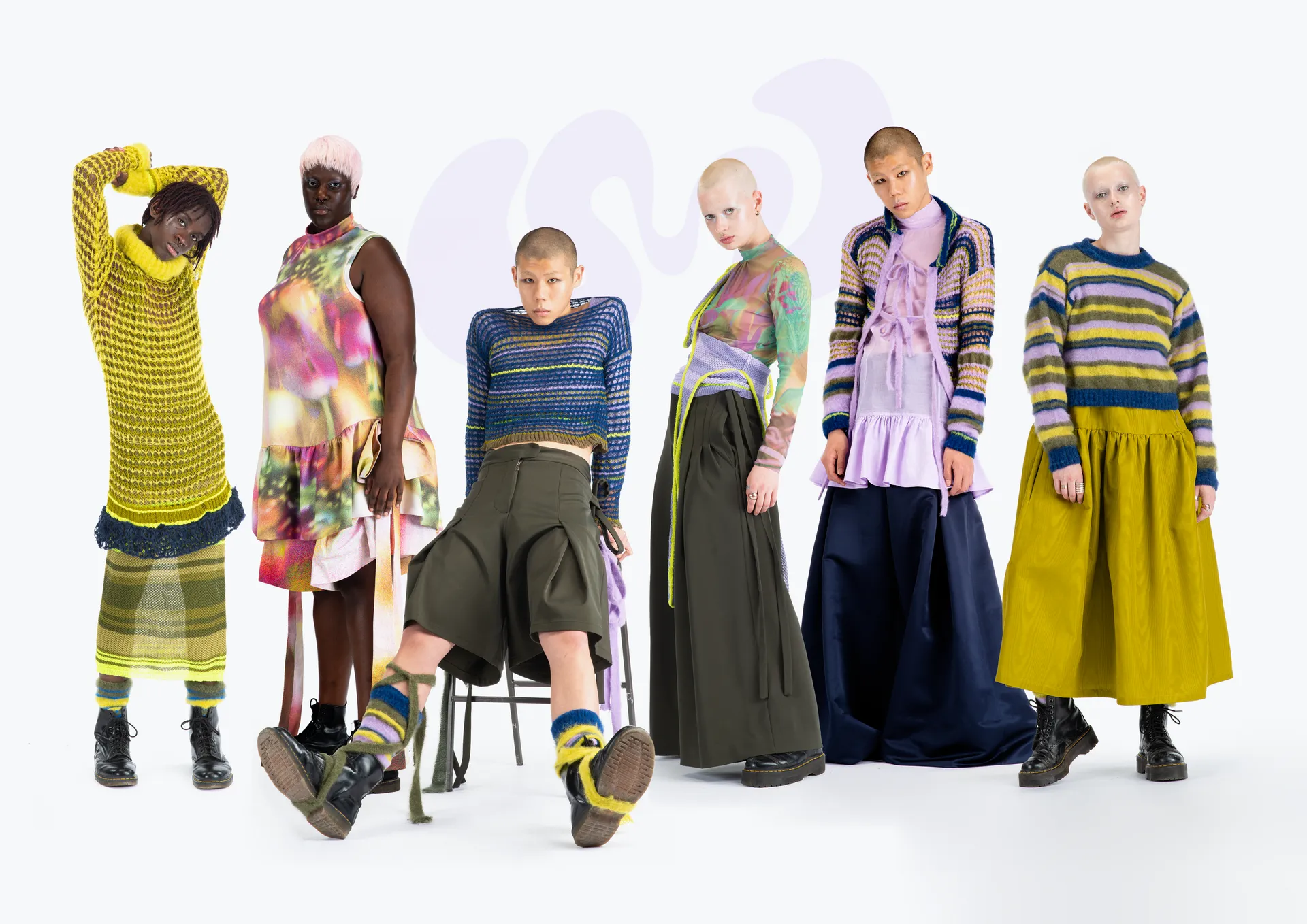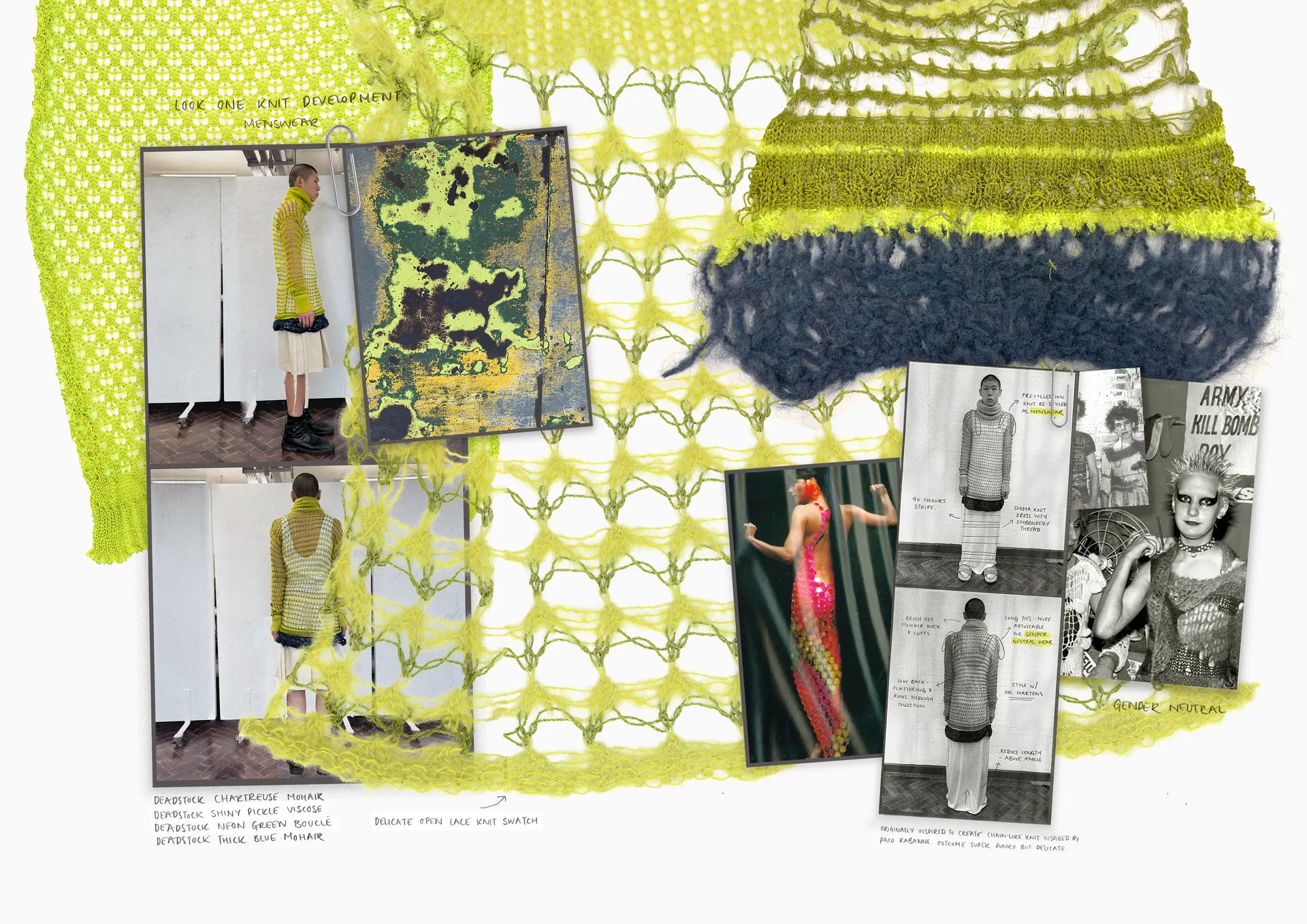 using mostly deadstock yarns and fabrics, i created a collection of delicate and intricate knitted textiles, alongside whimsical prints and bright colours, portraying the tenderness of punk, whilst maintaining its grungy edge. ‘in reverie’ is a collision of masculinity and femininity- inclusive of both gender and sizing, which is very important to my own ideology and reflective of my own understanding of ‘punk’.