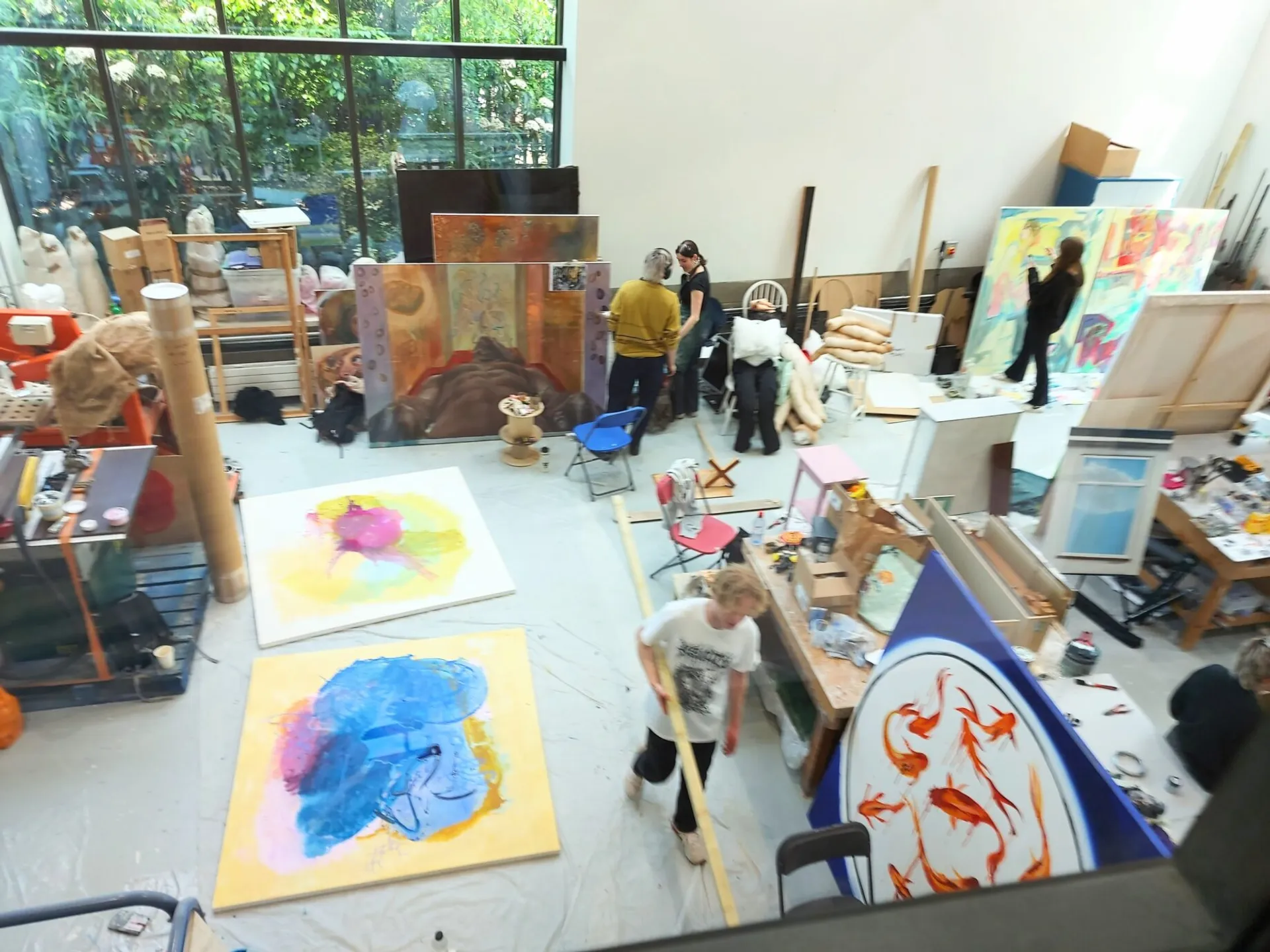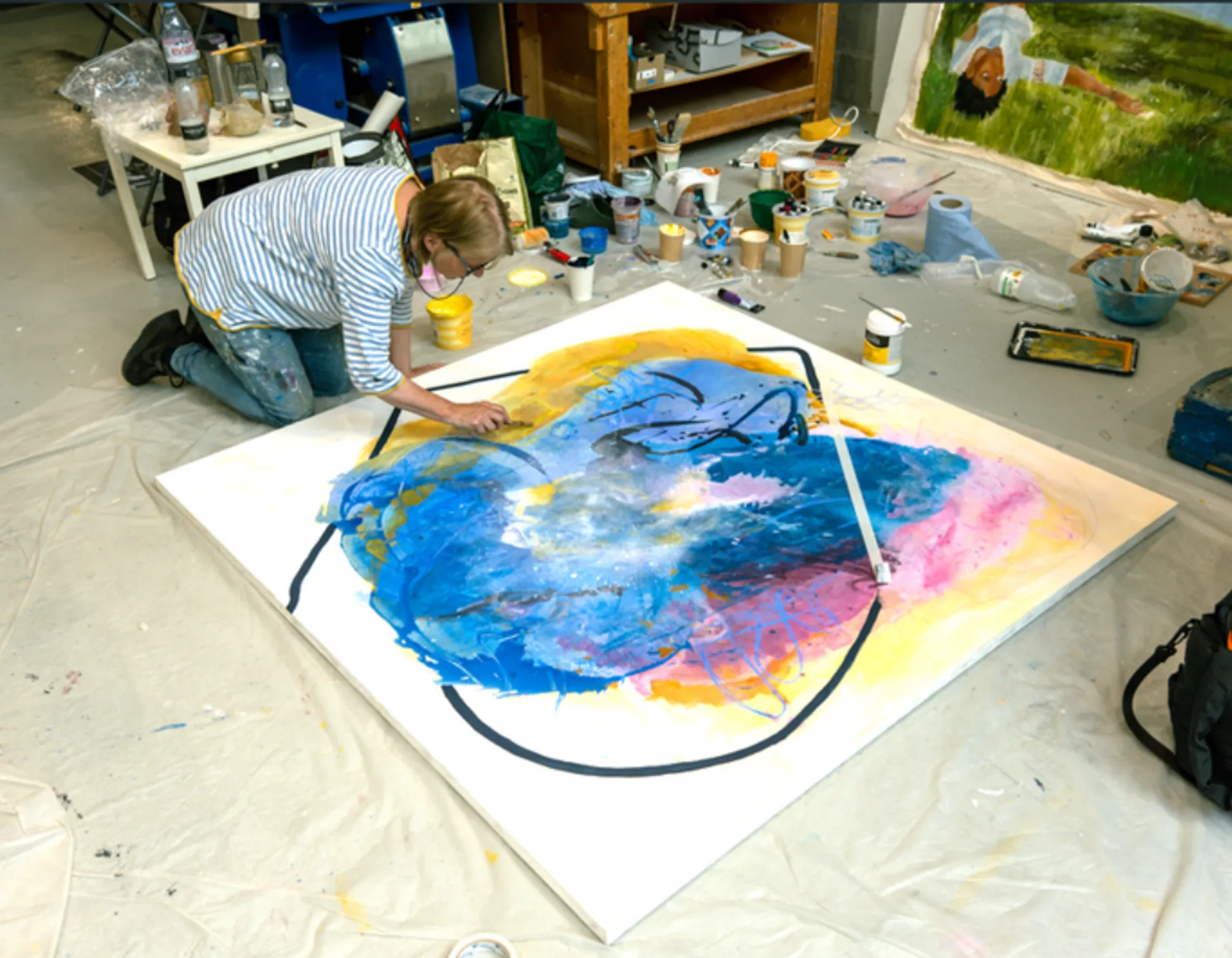 Contemporary artist Maggie Thompson is based on the South Coast of England, where she creates abstract paintings comprised of coloured pigments pushed, pulled, scraped and layered across her canvases.