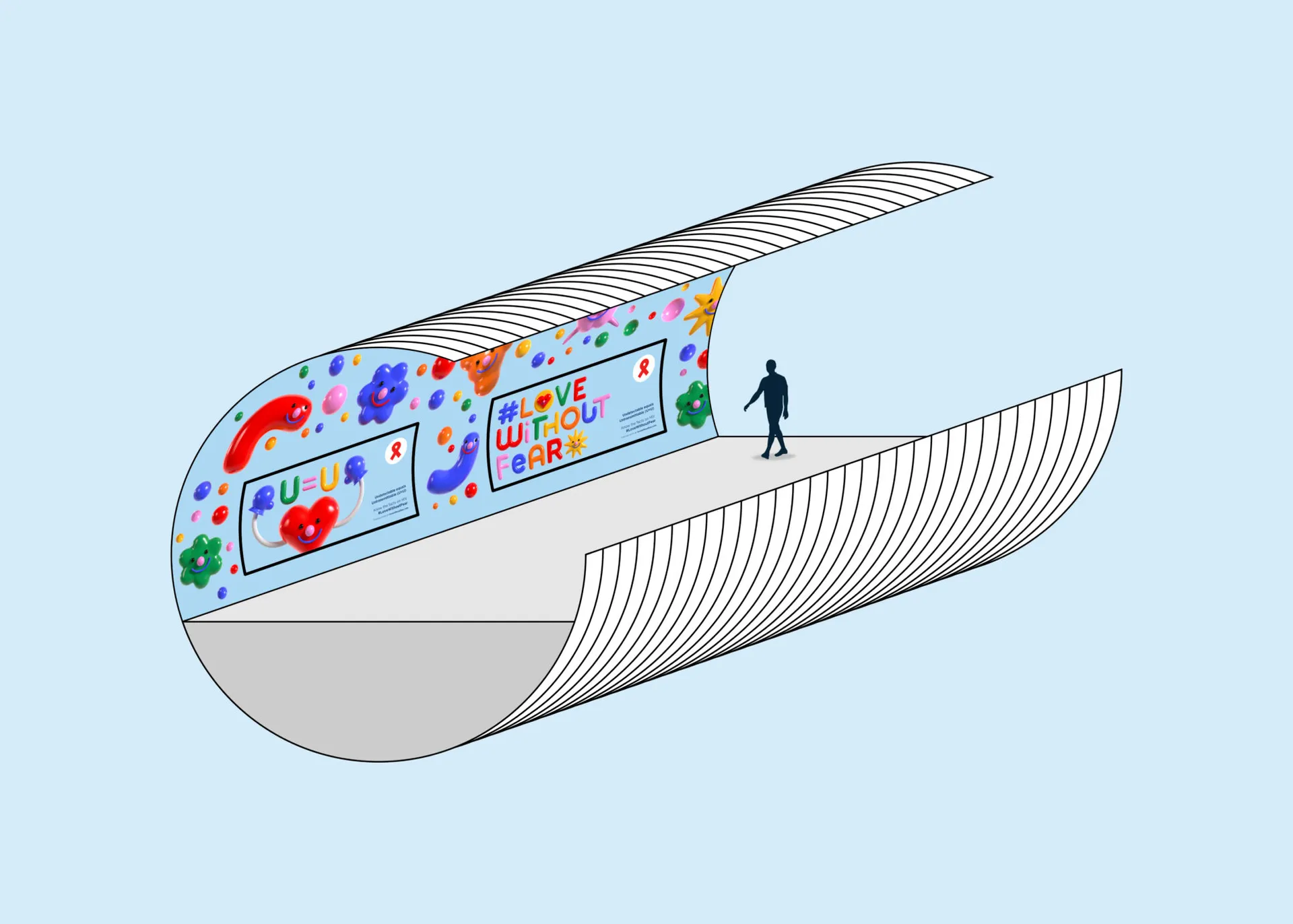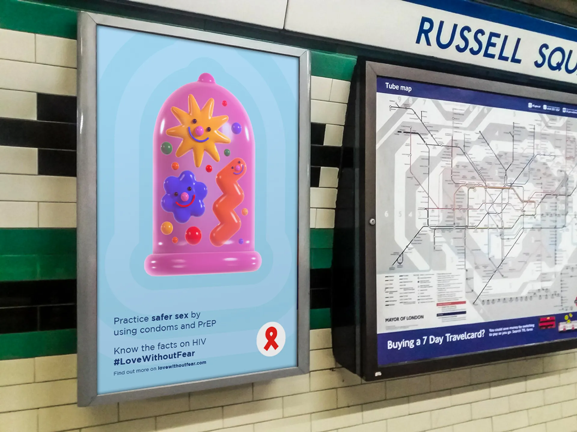 #LoveWithoutFear is a campaign aimed at countering the stigma surrounding sexual health and misconceptions about HIV in society. By using cheerful imagery, the campaign aims to creatively inform about the sensitive topic of STIs and the experience of living with HIV. Crafted with the fast-paced London Underground environment in mind the camping spans across a variety of media outcomes from posters and animated shorts to 3D sculptures and features a colourful cast of characters that are based on Bacteria and Viruses. #LoveWithoutFear has already achieved minor success through its implementation at a local queer venue in the form of pamphlets and stickers.