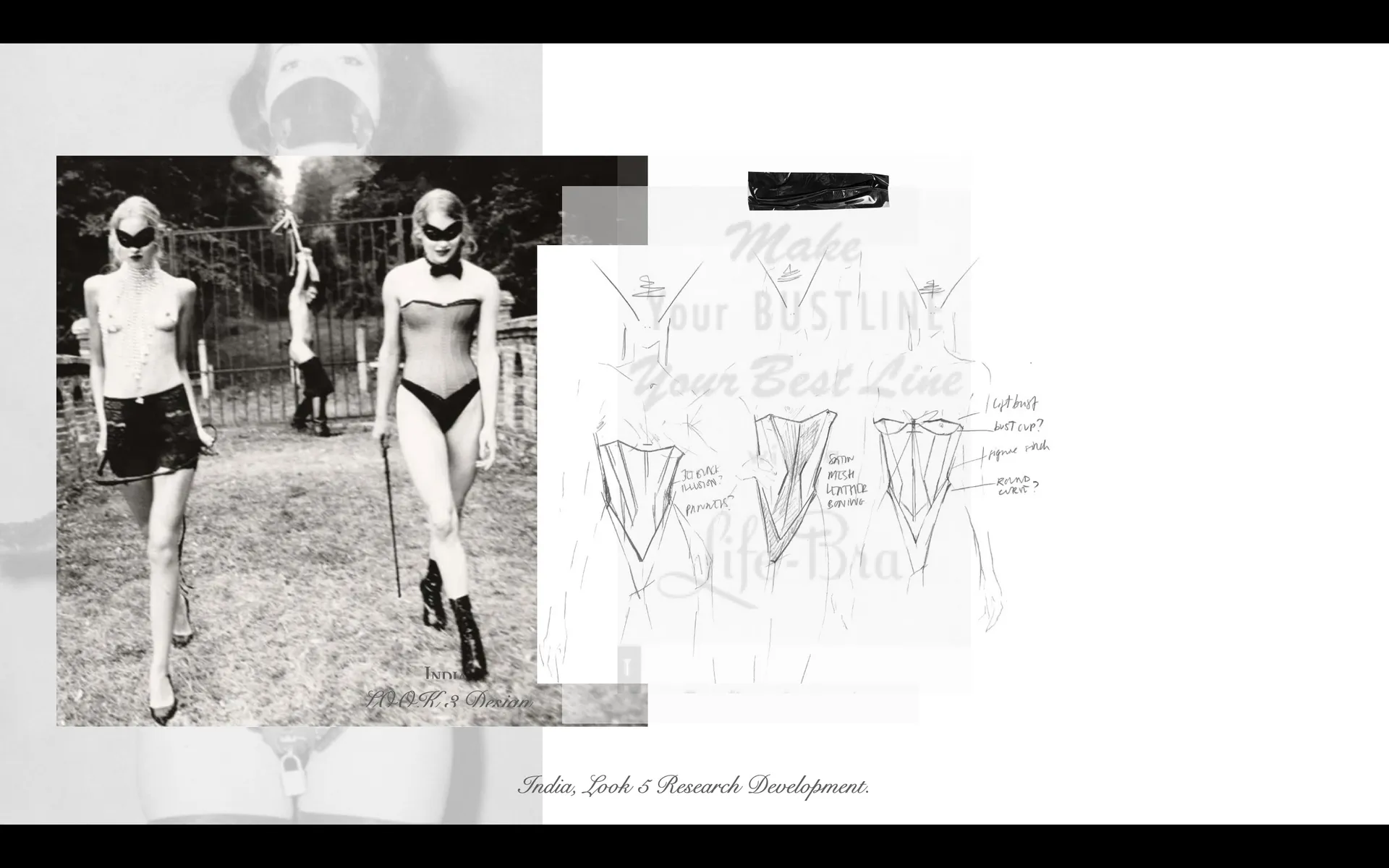 Throughout the past few years, I’ve been inspired by the perfection of skin-on-skin body-fitting clothes, by expressing the body in the best way to give a powerful silhouette and enhance the beauty of individual form. I aim to create garments that make each individual feel confident and comfortable with this extreme form-fitting collection, I would like this journey of fitting to be the start of something new and exciting, enabling all bodies to be expressed in the sexiest way. I have learnt so much through the process of making this collection that I’m excited to expand and work on more exciting projects in the future, continuing to learn and grow in the process. I would like to inspire designers to consider the individual to be able to cater to their specific figure, making them feel as sexy as possible. Taking lots of inspiration from form-fitting garments in the 50s, along with subtle fabrication hints of bondage from Betty Page.
